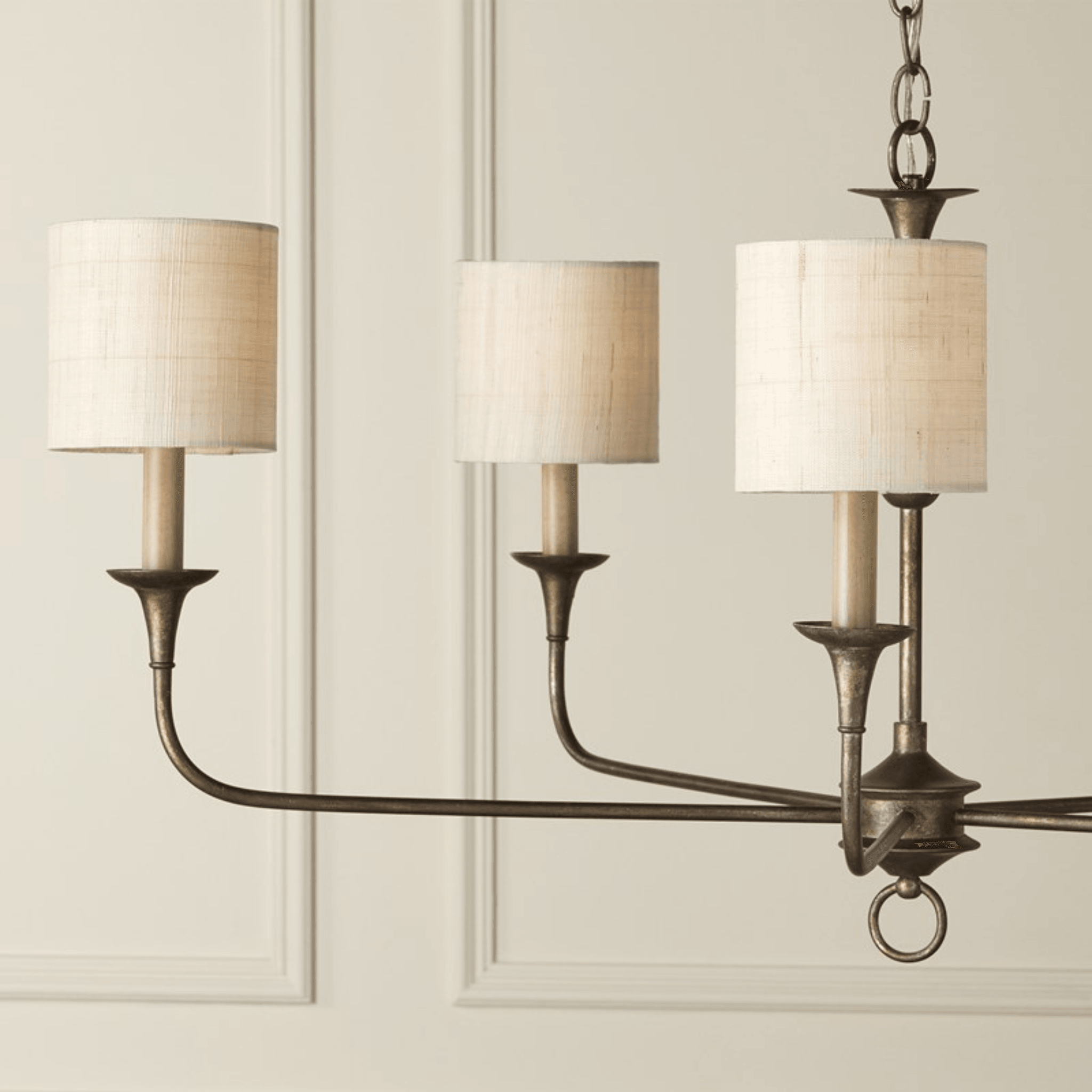 Petite shades made of a finely woven grasscloth bring added warmth to a space. Due to the natural material's inherent texture, there is a knotty richness to their surfaces, though the lighter hues are so delicate they read like linen. In fact, the shades for chandeliers and wall sconces in this collection are of the finest weaves made by hand, evidenced by the tiny telltale knots along the surface that prove they are the ultimate definition of artisanal. Click images for greater detail.