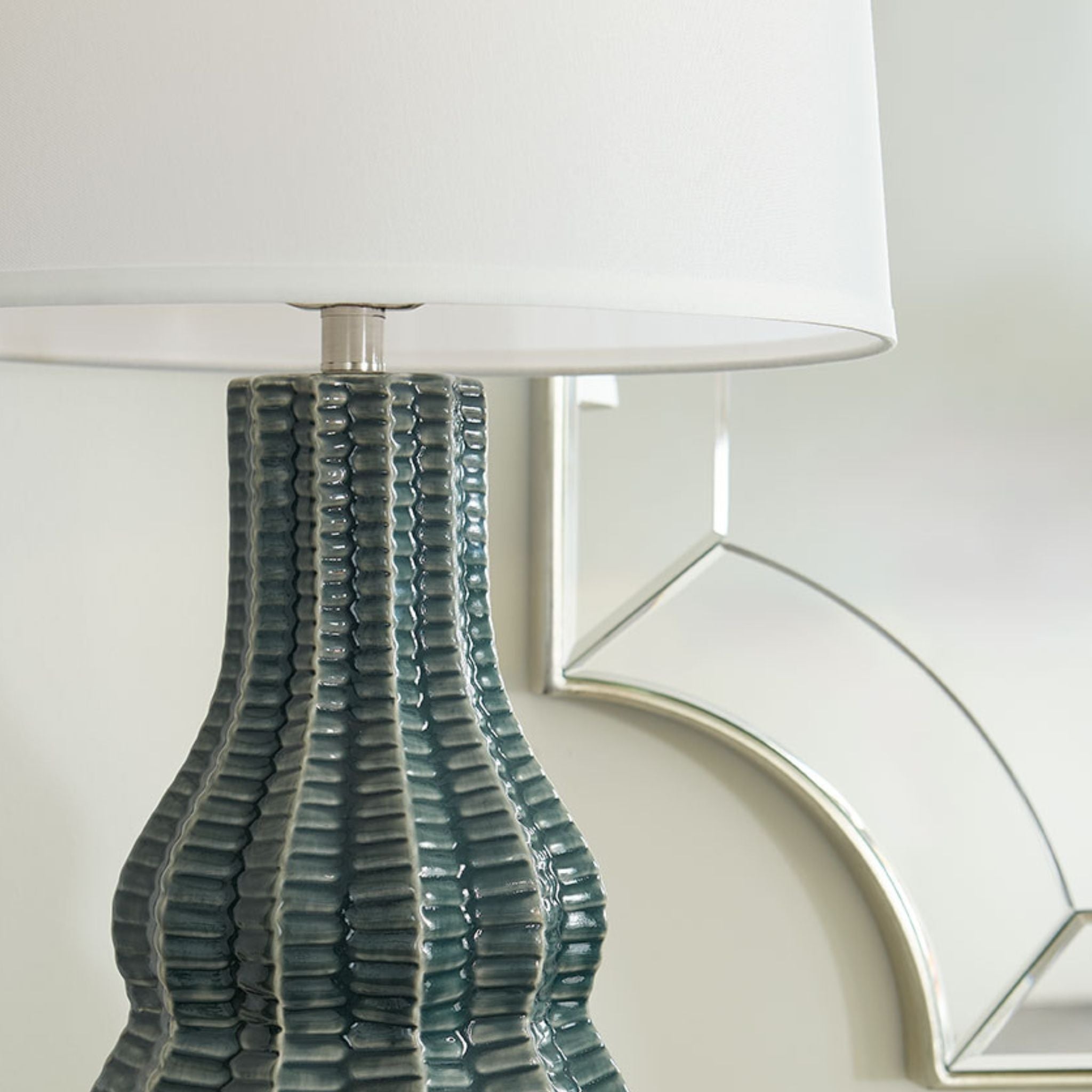 The Quinn Lamp showcases a classic double-gourd silhouette with a woven basketweave ceramic texture and a semi-transparent glaze that adds rich, organic character. Finished with a clear acrylic base and white linen shade, it brings a fresh, modern touch to both casual and curated interiors.
