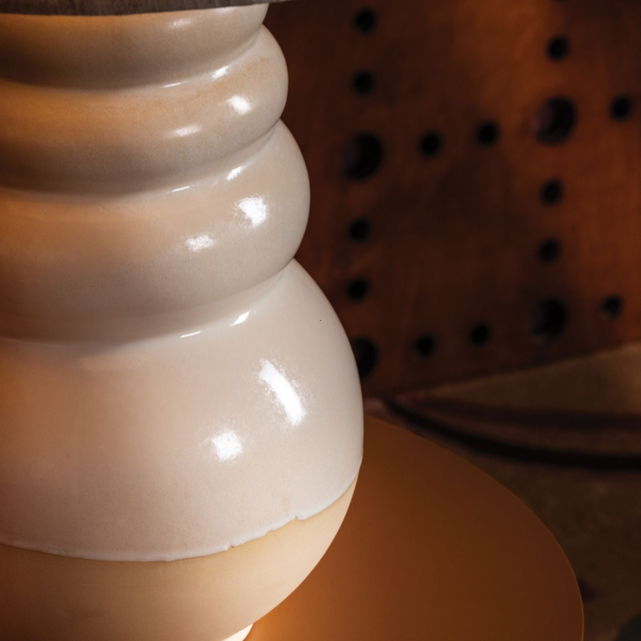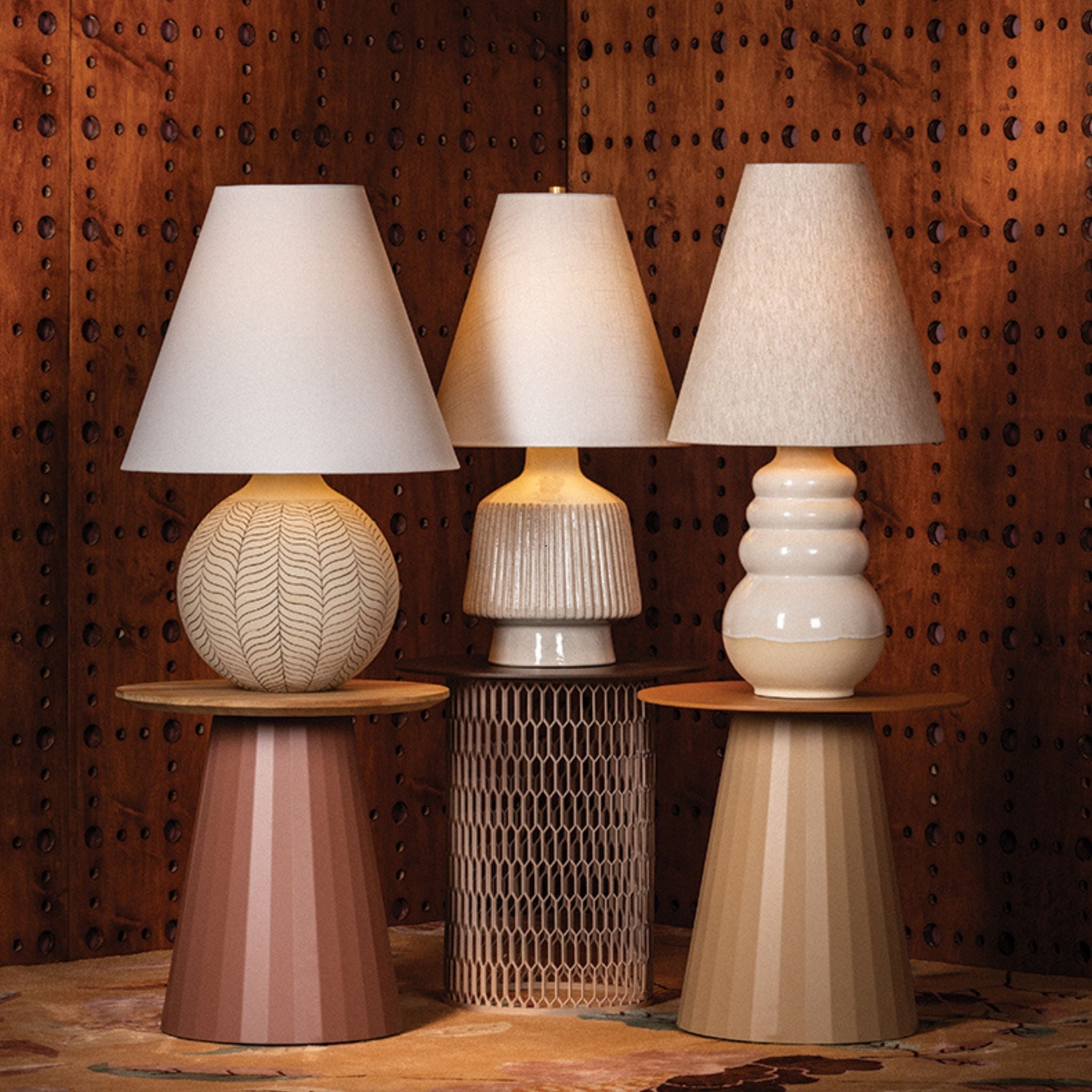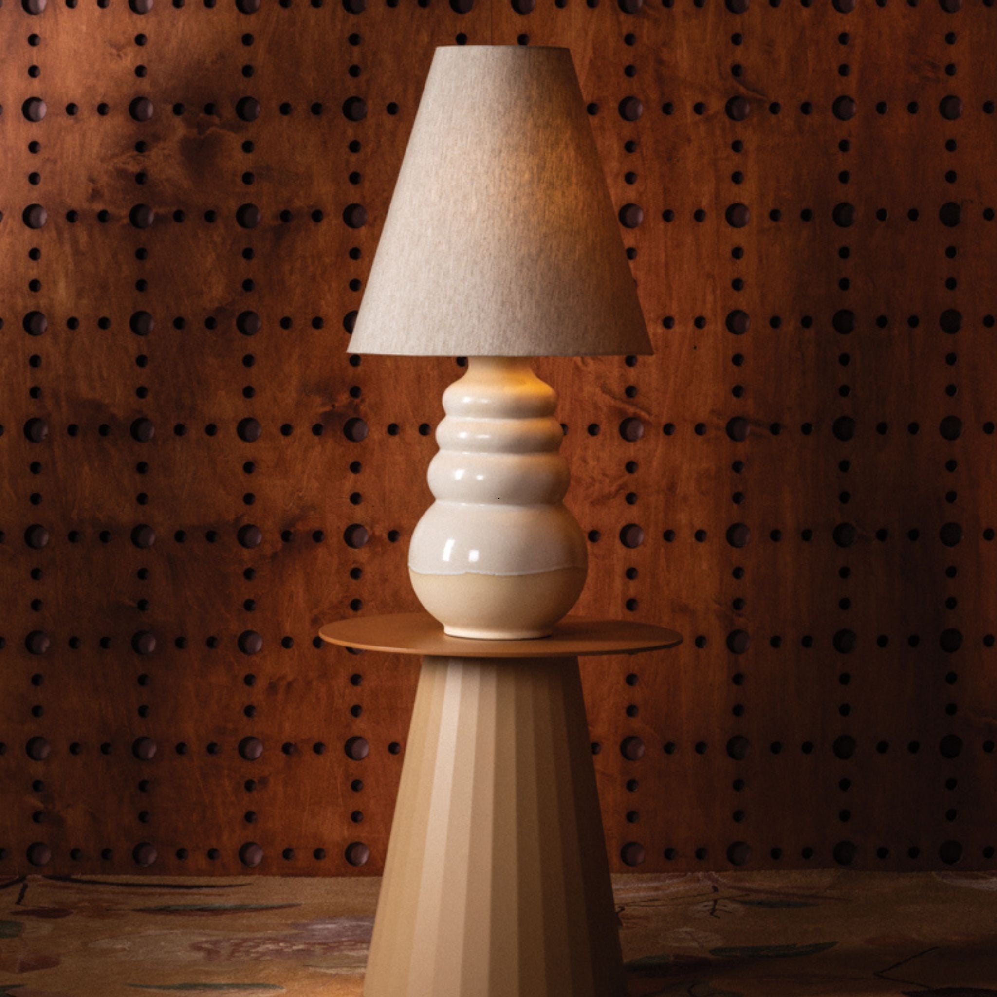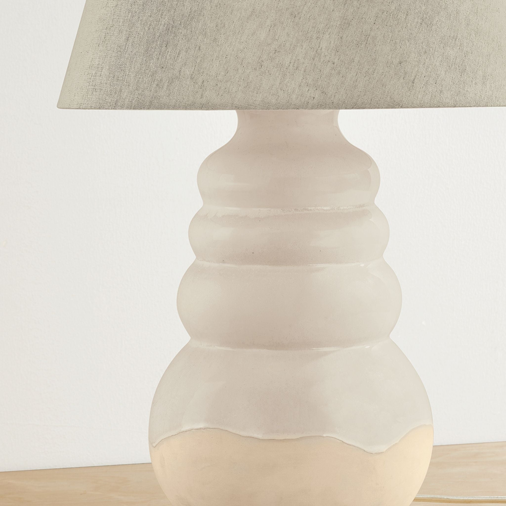 Pairing an oversized natural linen shade with a funky ceramic base, the Tybee table lamp feels peppy and offbeat, though still refined. The unique Elemental White Ceramic glaze has an organic dripping effect that lends an artisanal note to the base. Tybee’s joyful, handcrafted aesthetic dresses up a space as it creates an effortless focal point. Finished with Aged Brass hardware.