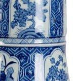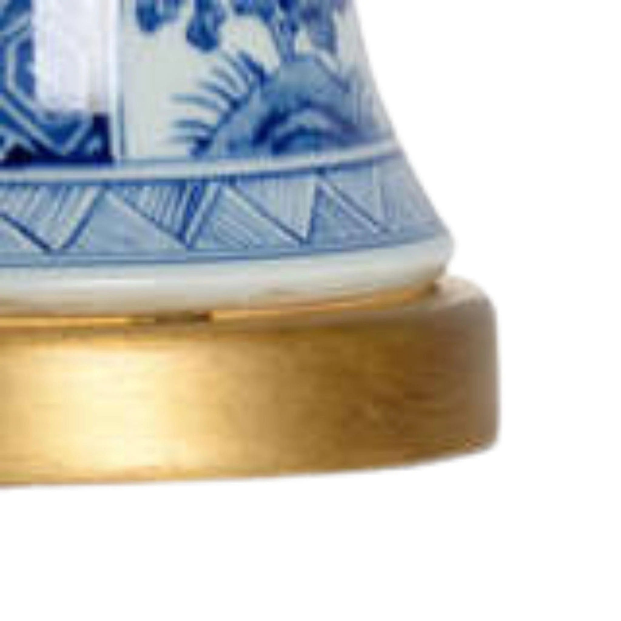 Blue and White Ceramic Floral Table Lamp With Antique Gold Leaf Accents