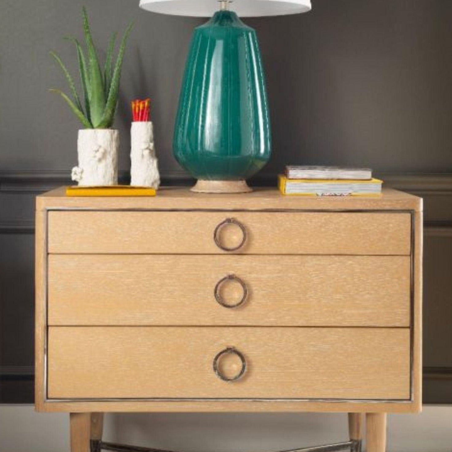 - Glazed Ceramic & Cerused Oak Base