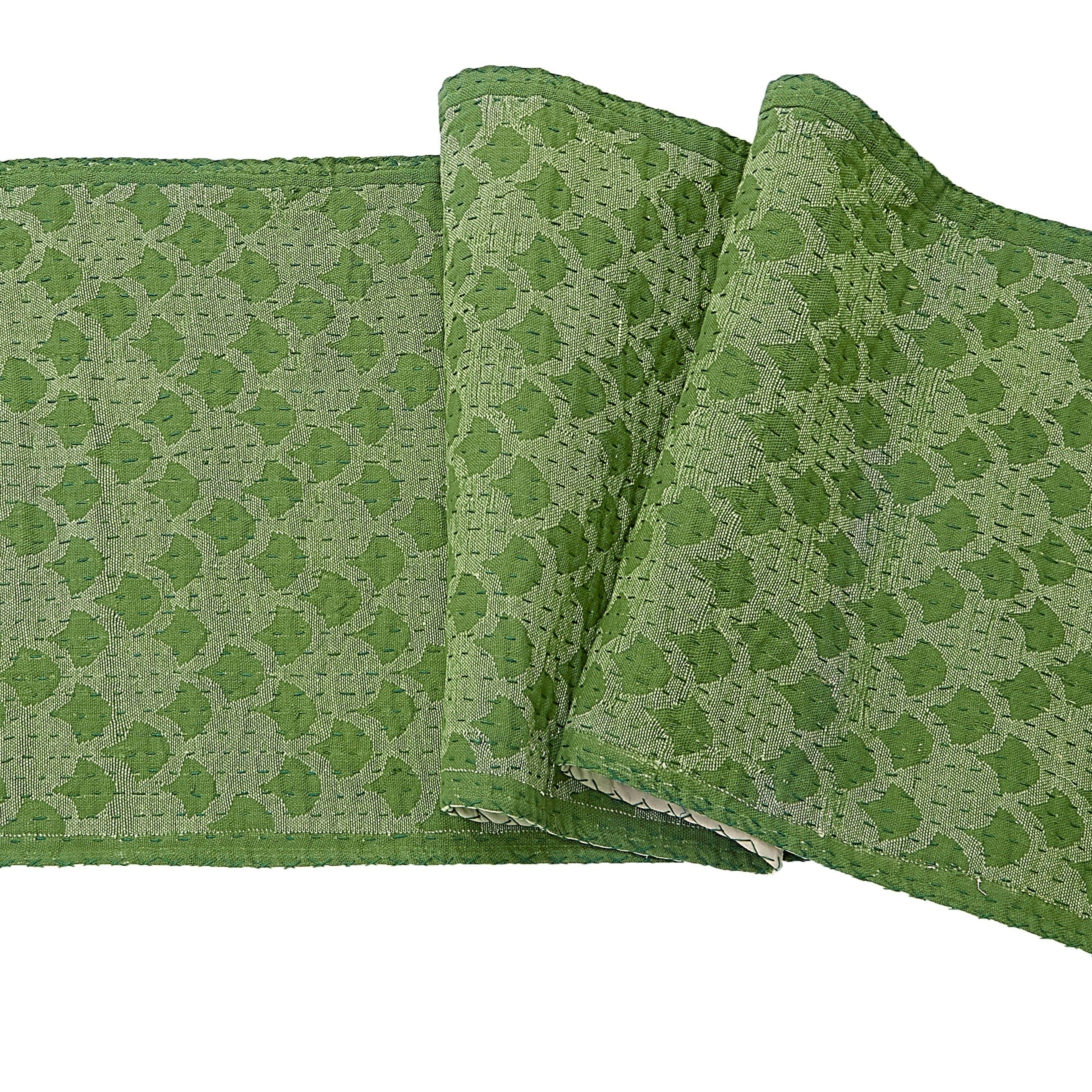 Artisan Hand Loomed Cotton Table Runner - Green Ginkgo - 18"x96"