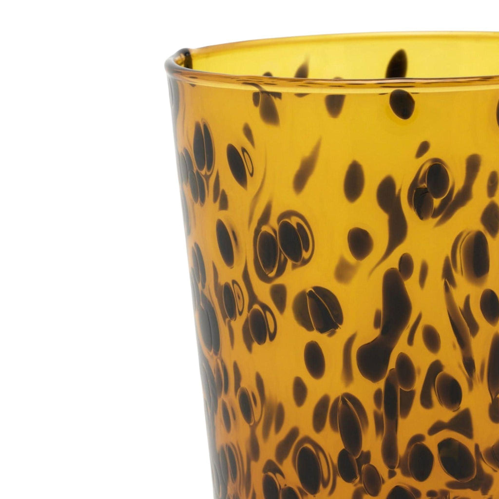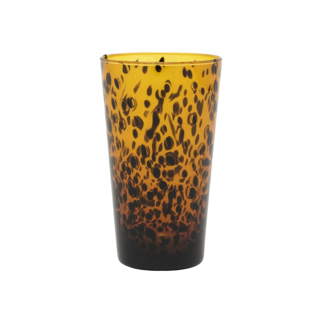 Durable hand-blown glasses in a tortoise shell pattern create a statement that is as celebratory as the drinks they hold.