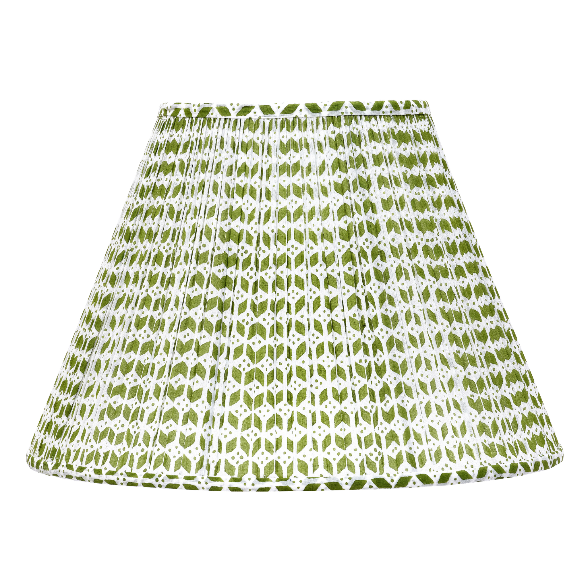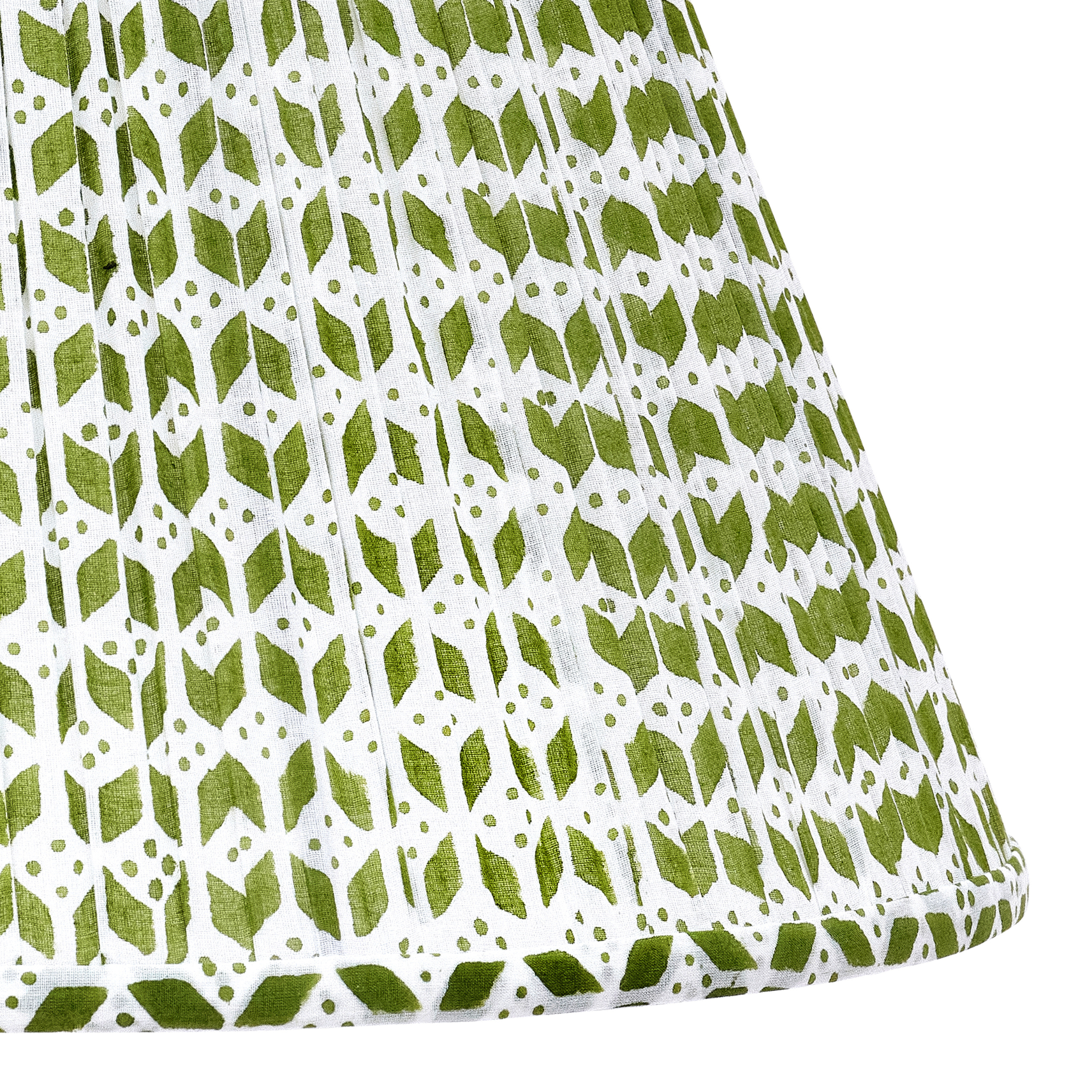 Patterned lampshades have long been a decorator’s secret to add color and texture to a space in a unique way. Our exclusive patterned shades are the perfect tool for this - made of cotton voile fabric that is handblocked in India and shirred and assembled in the USA.