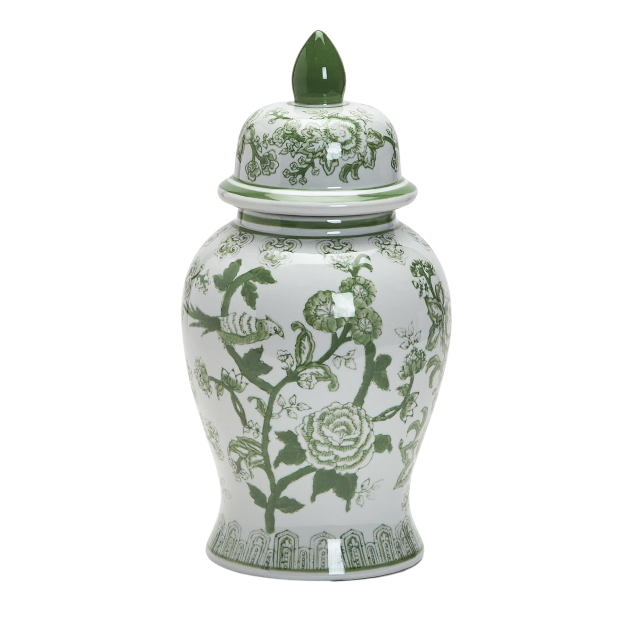 Elevate your home decor with the timeless charm of the temple jar, a beloved utilitarian staple in interior design. Behold our exquisite hand-painted porcelain covered temple jar, now adorned in a chic and captivating chic green color palette. The transformation is nothing short of marvelous. Whether displayed on a tabletop or shelf, this remarkable piece becomes a stunning focal point that effortlessly harmonizes with almost any decor. Prepare to be enchanted by the impeccable artistry and versatility of this temple jar, as it brings a touch of elegance and sophistication to your living space.