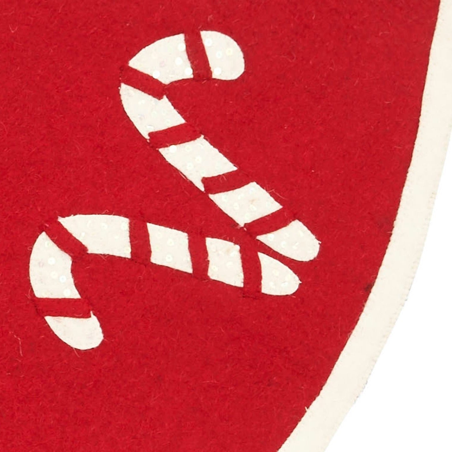 Handmade Christmas Tree Skirt in Felt - Candy Canes on Red - 60"