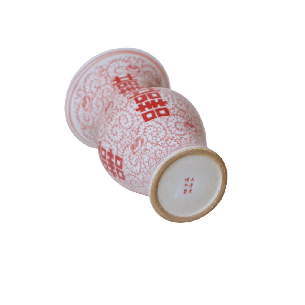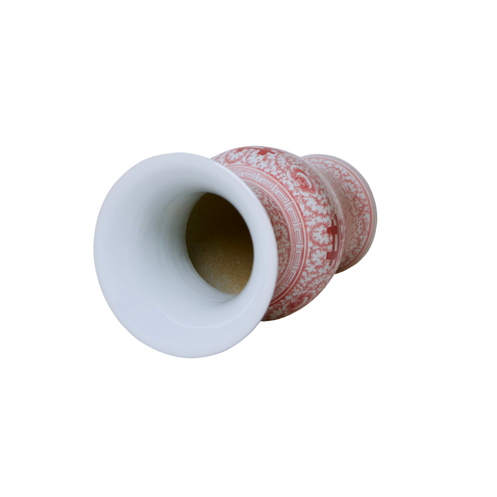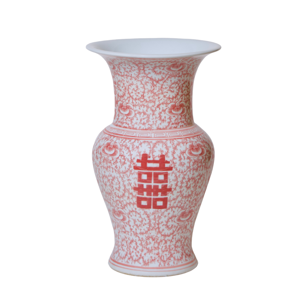 Double Happiness Red & White Porcelain Trumpet Vase