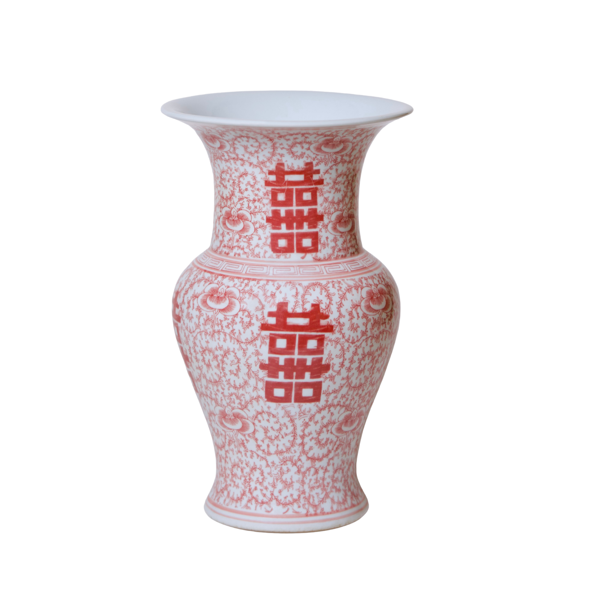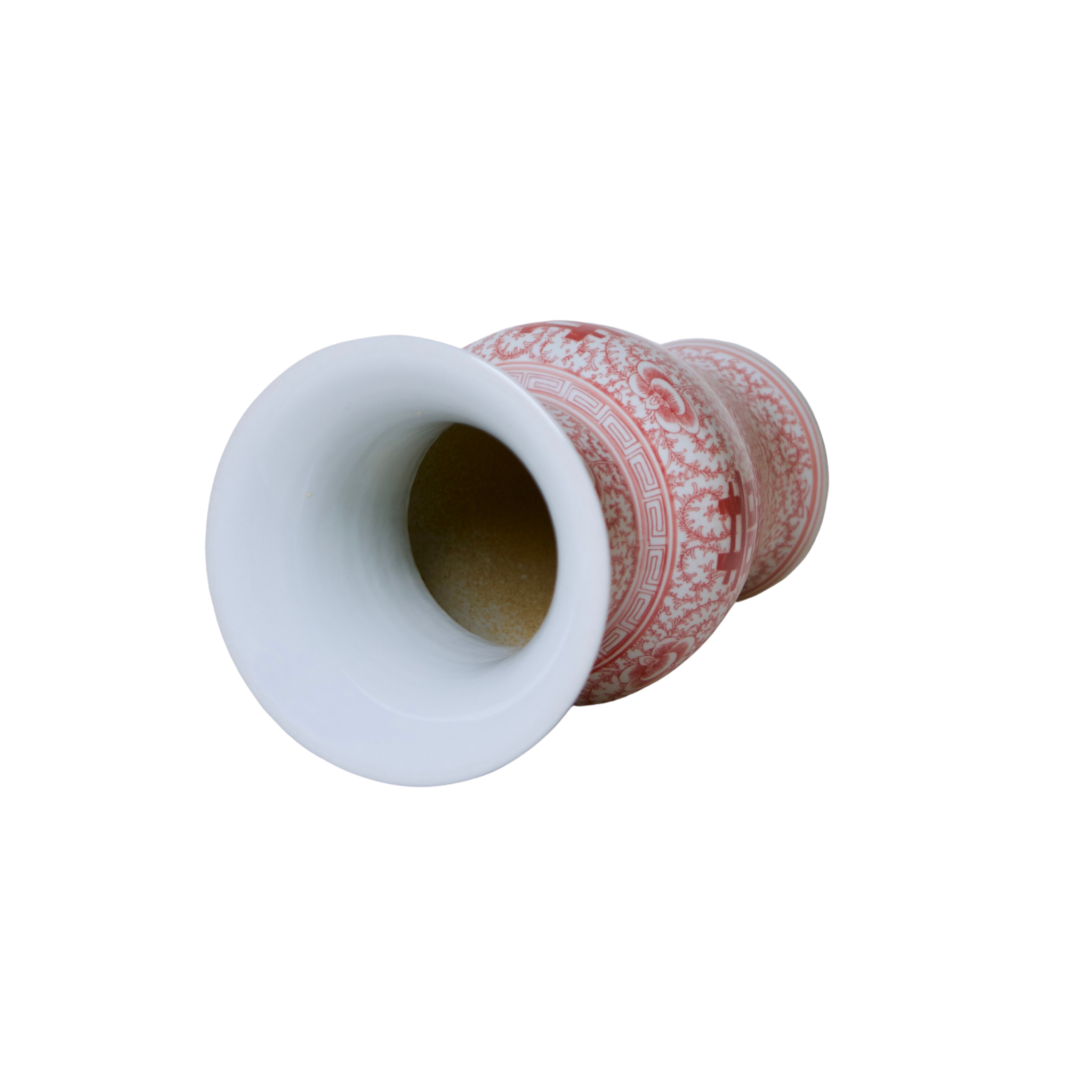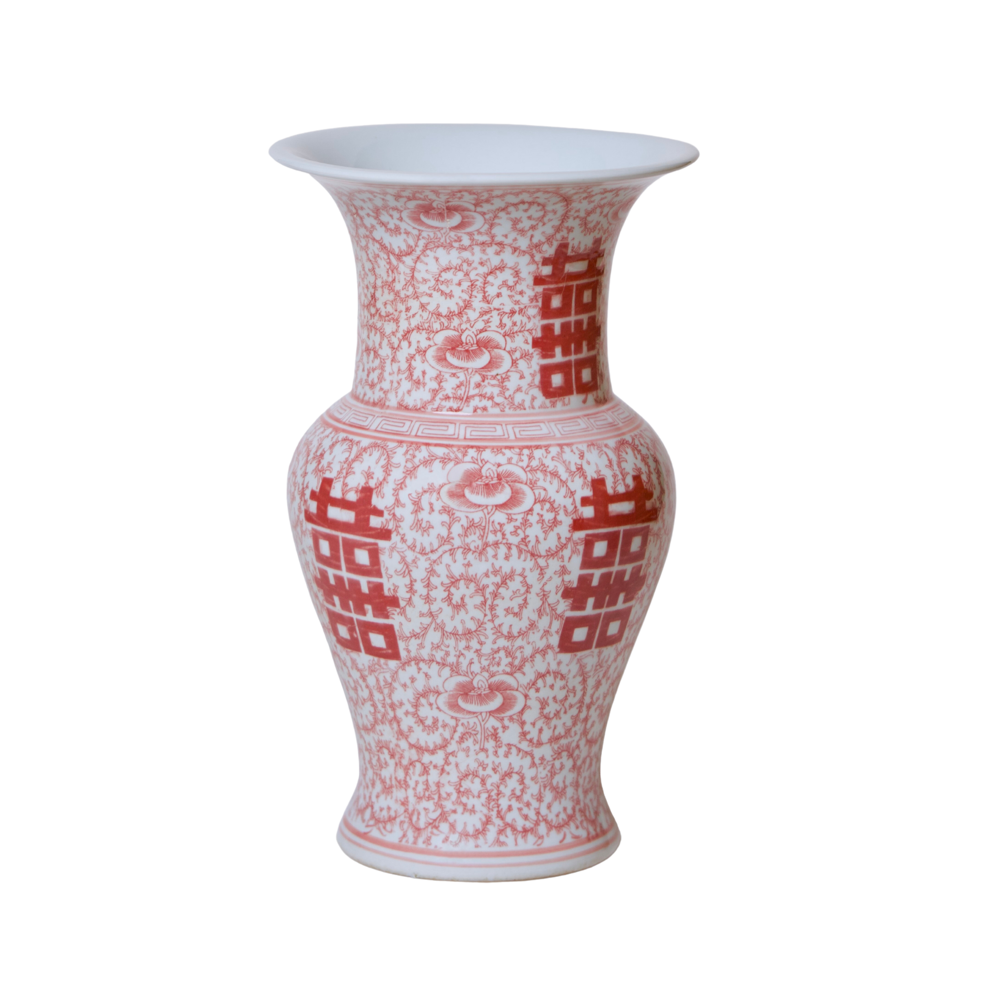 Double Happiness Red & White Porcelain Trumpet Vase
