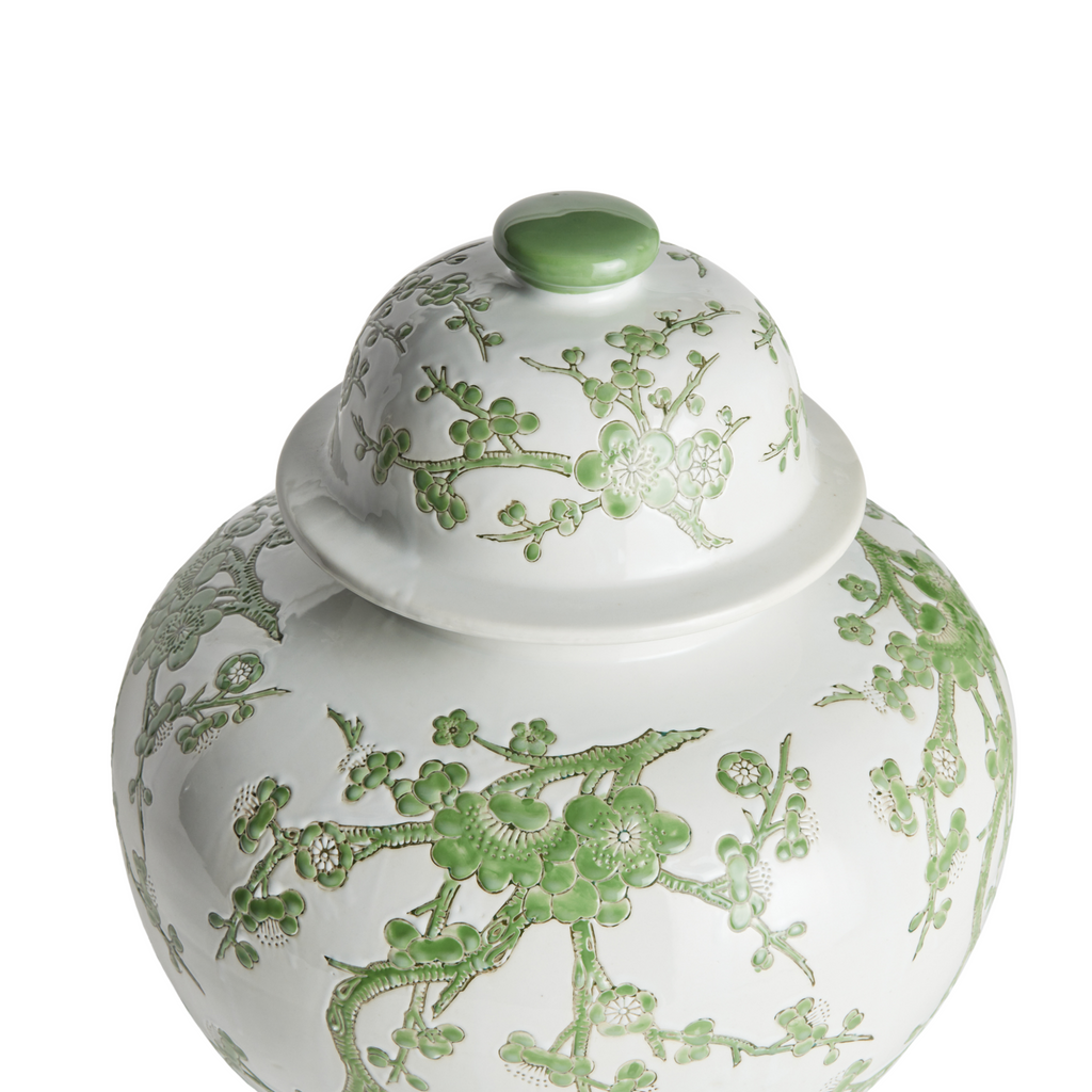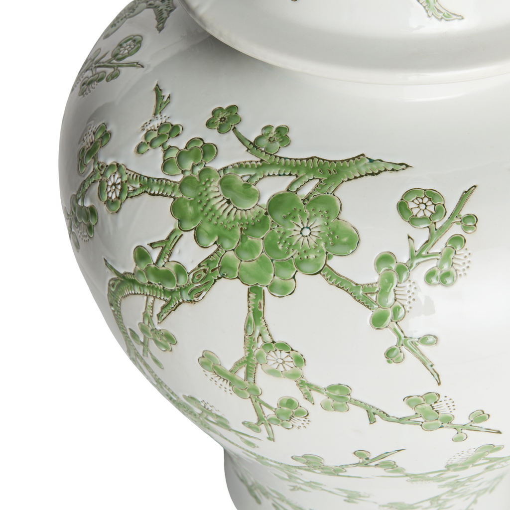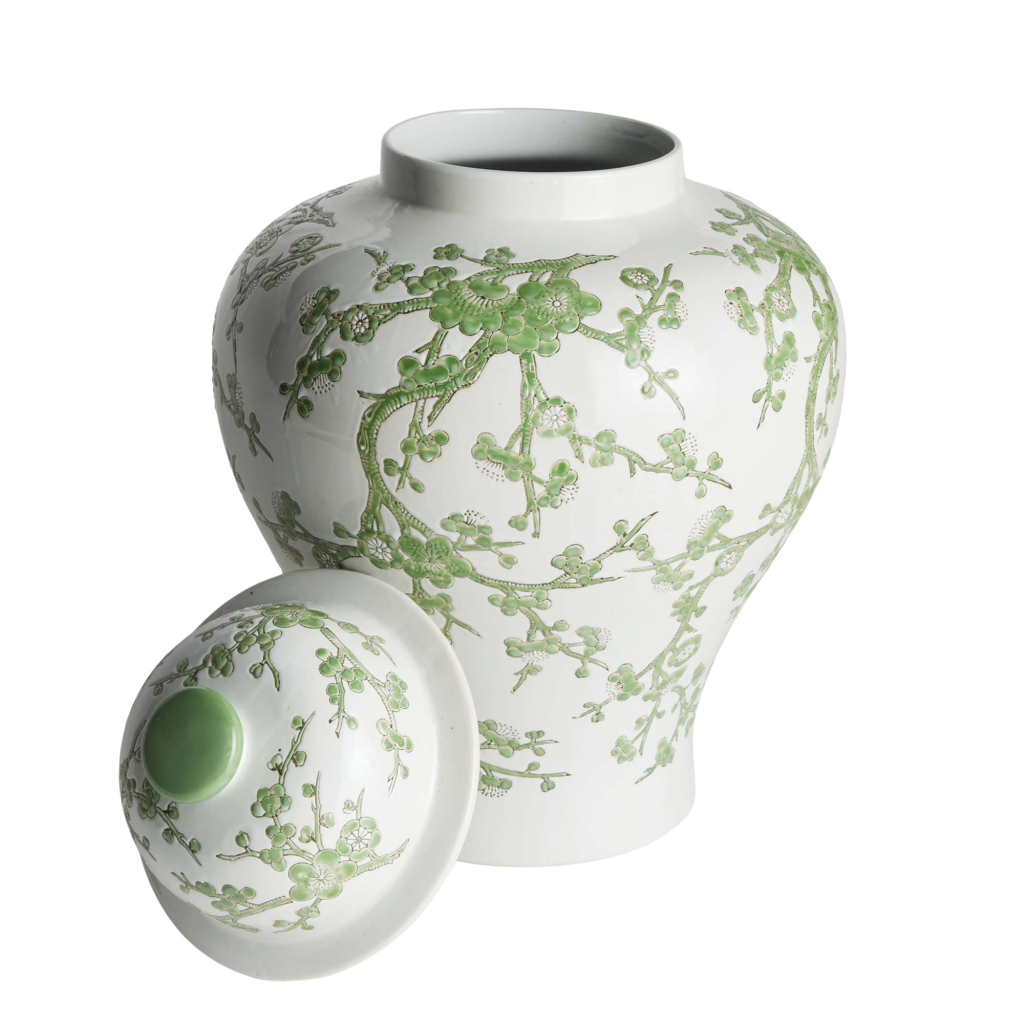 A classic chinoiserie in shades of green & white. How refreshing! The color green is known to have a harmonizing, balancing effect, and is an inspired design choice for the Imperial Lotus Lidded Jar. A welcome addition, adding stability and calm to the well-appointed bookshelf, mantel or entry console. Click images for greater detail.