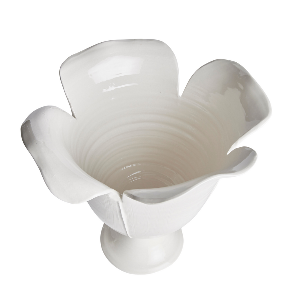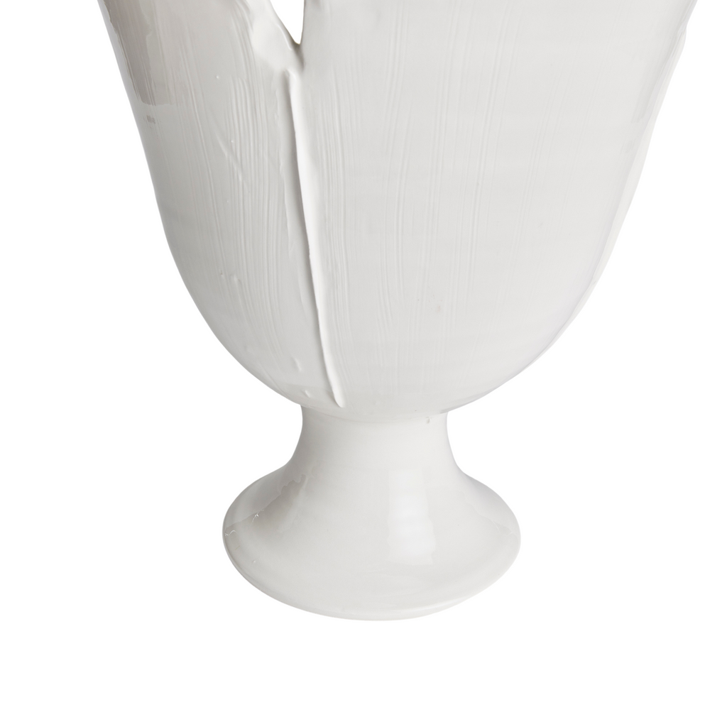 Each and every distinctive petal of the Petalo Vase is handmade, and hand-applied by Italian artisans in Tuscany, Italy. A subtle, open design in a soft white glaze. With a classic Italian craftsmanship passed down through generations, each piece is a true original. In grand scale, a dynamic centerpiece for feature table, kitchen island or mantel. Click images for greater detail.