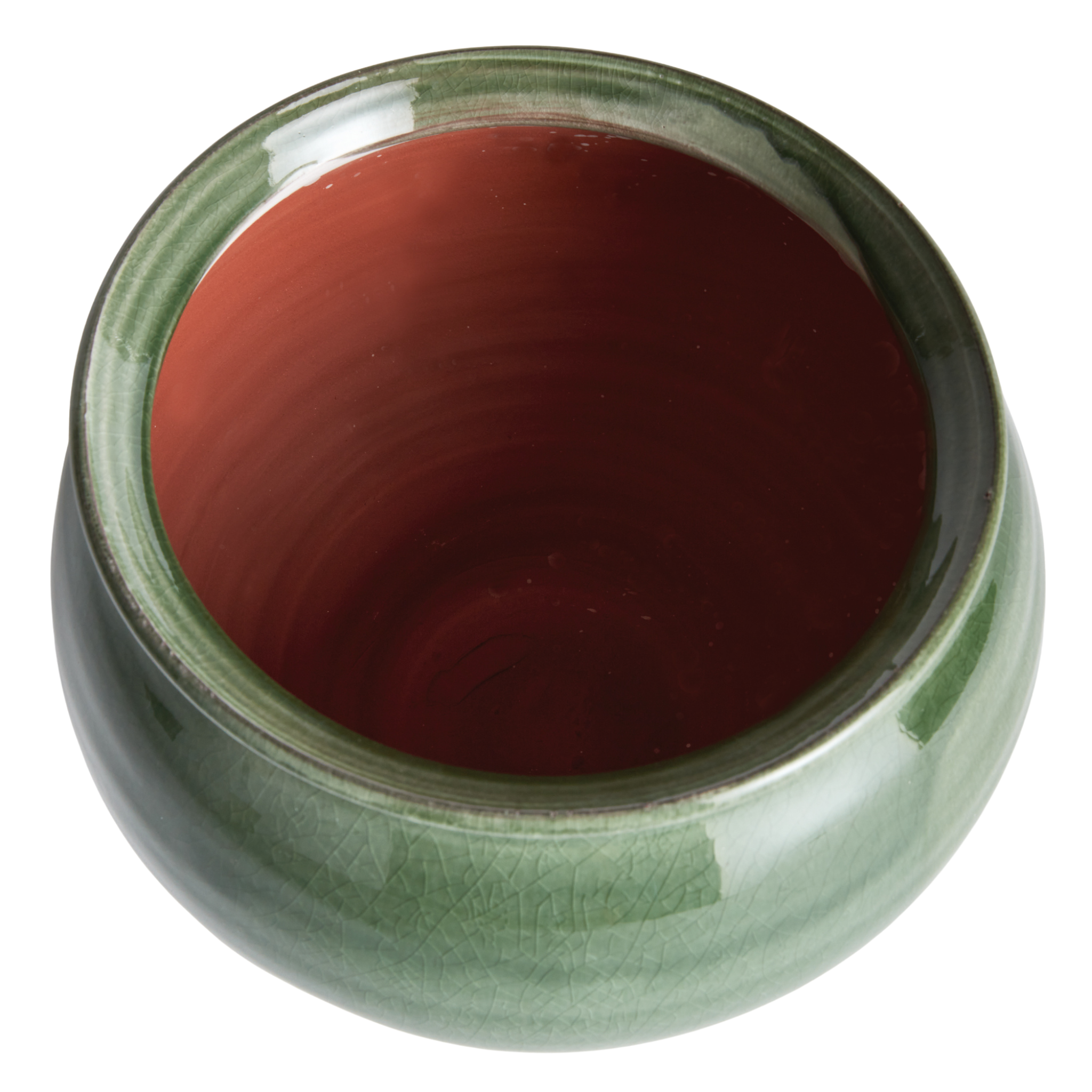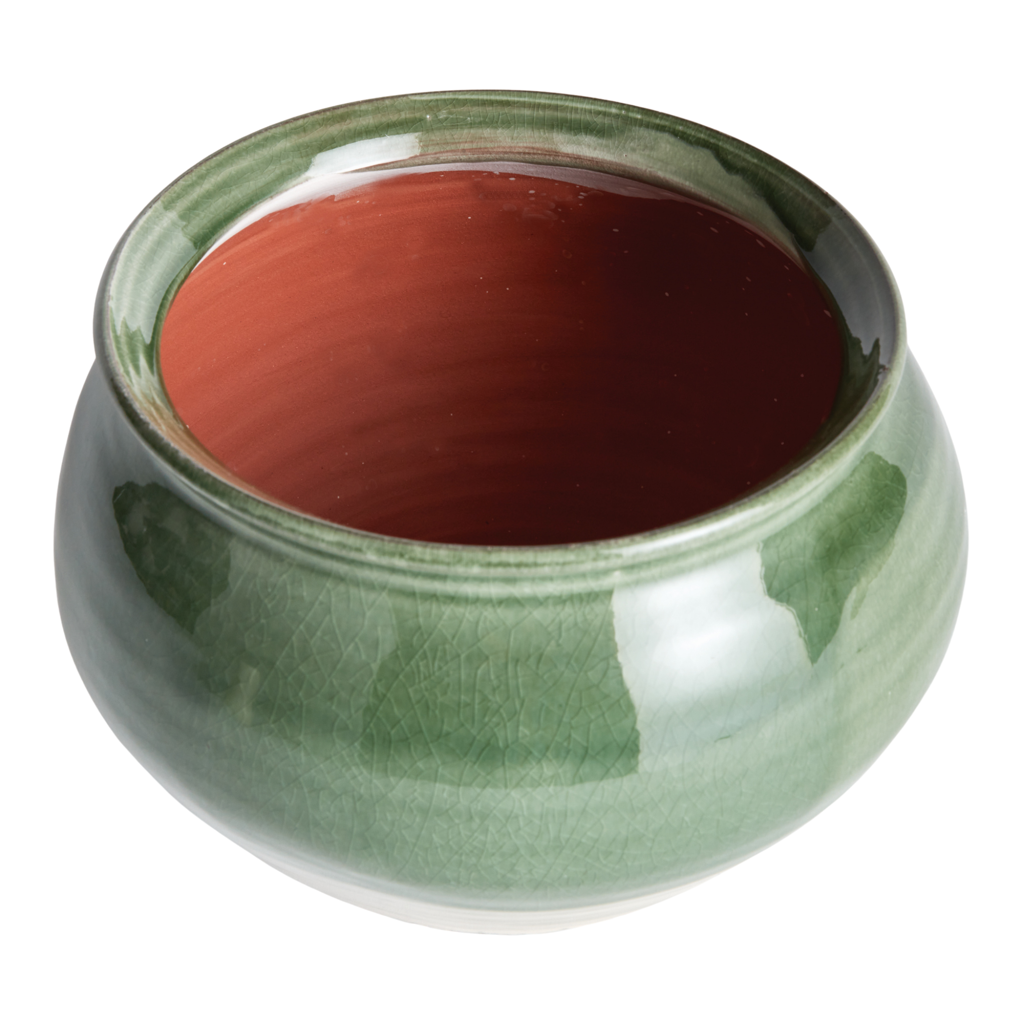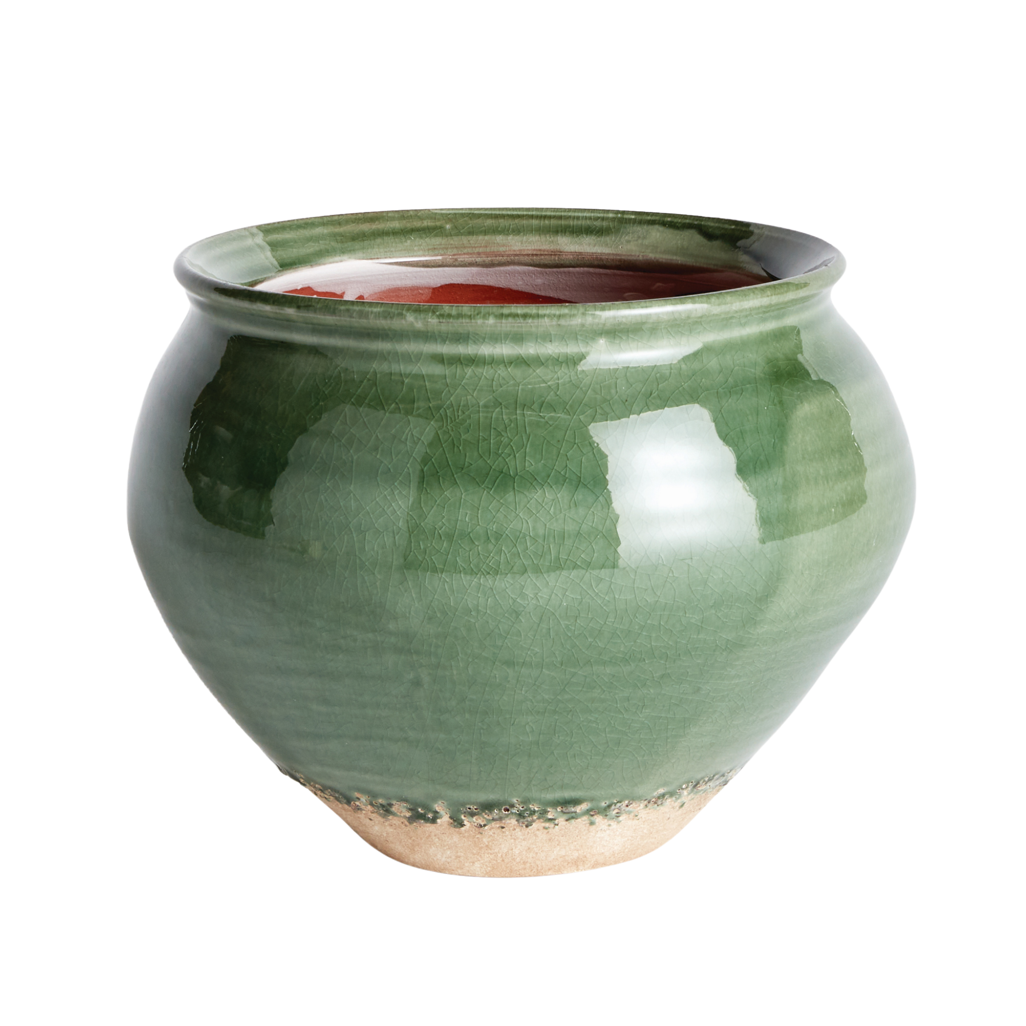 Inspired by traditional ceramics of southern Europe, this decorative drum vase really brings the charm. Hand-thrown with a subtle crackled glaze and raw terracotta base, it adds a rich verdant pop of color to kitchen table, counter or mantel.