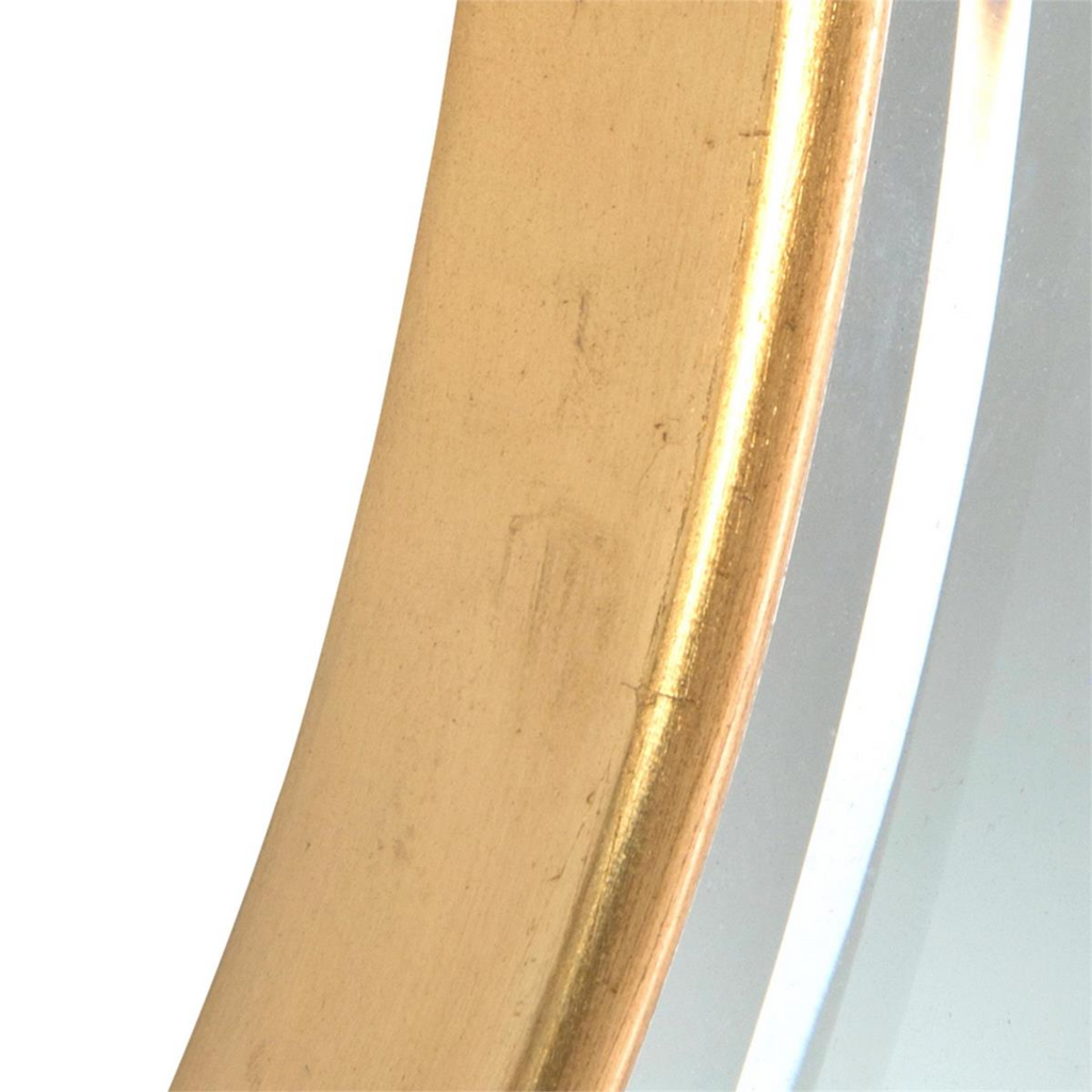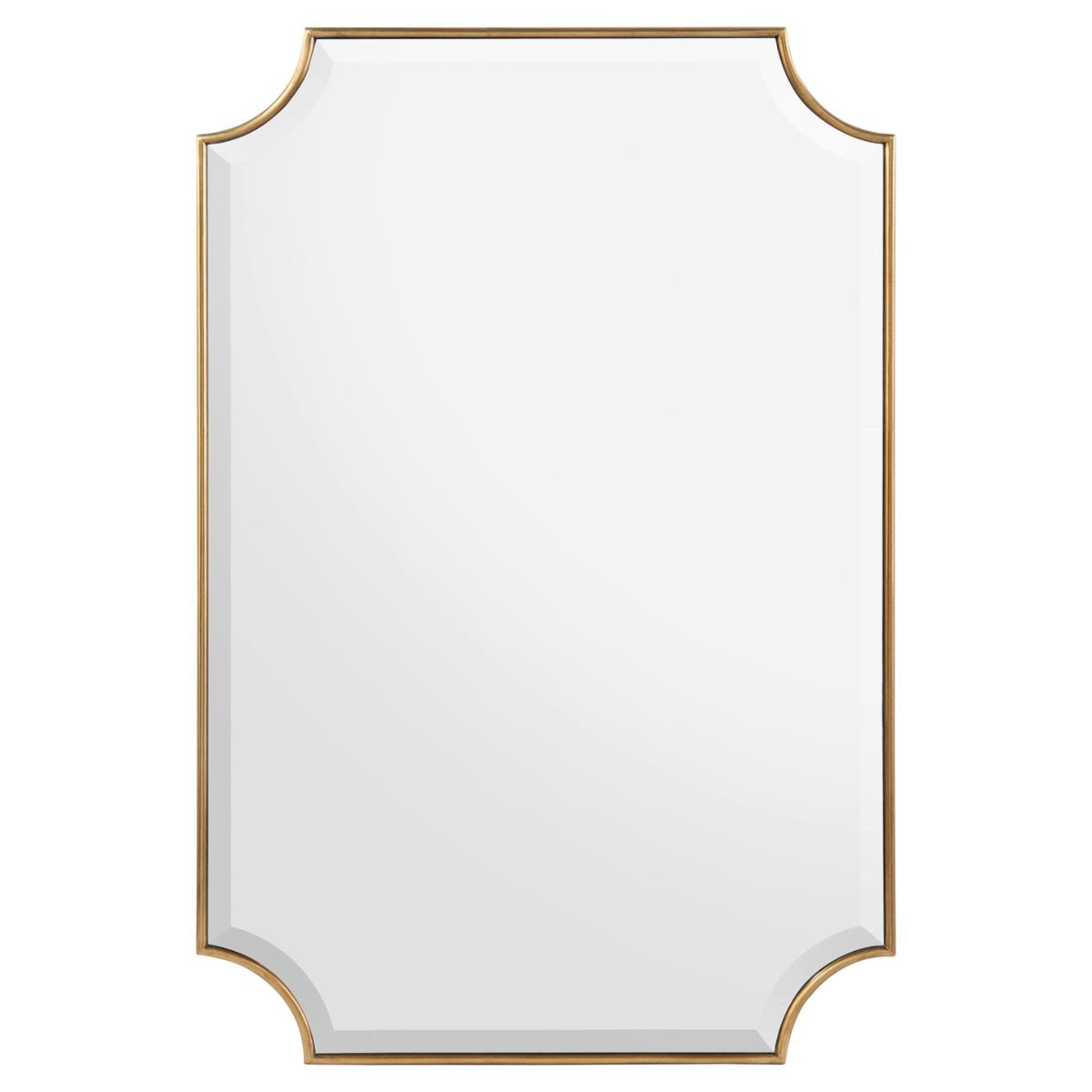 The Priora Mirror is a stunning, modern design that infuses an irresistible sense of elegance to a space. A slender frame with scalloped corners features a Gold Leaf finish and holds a stylish beveled mirror.