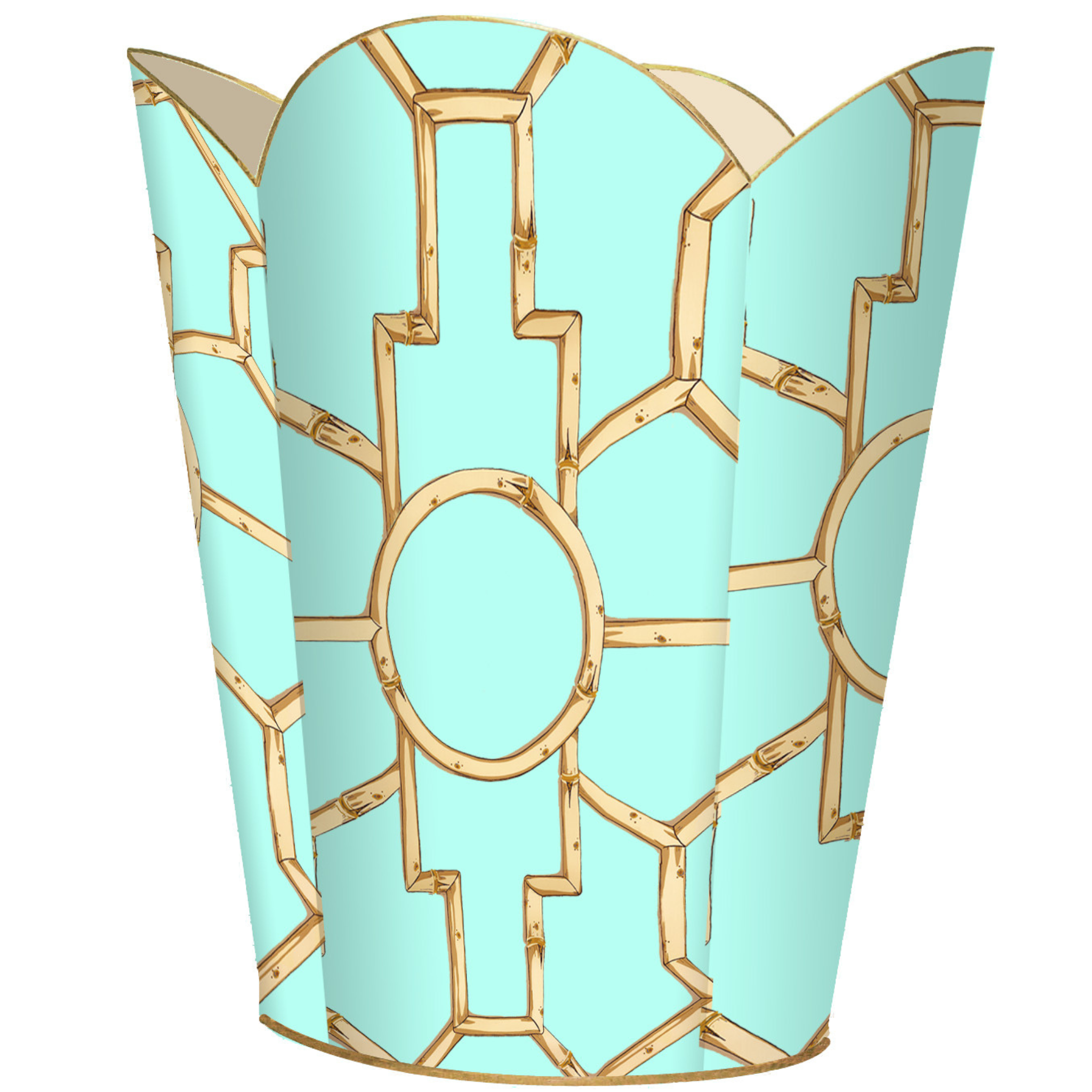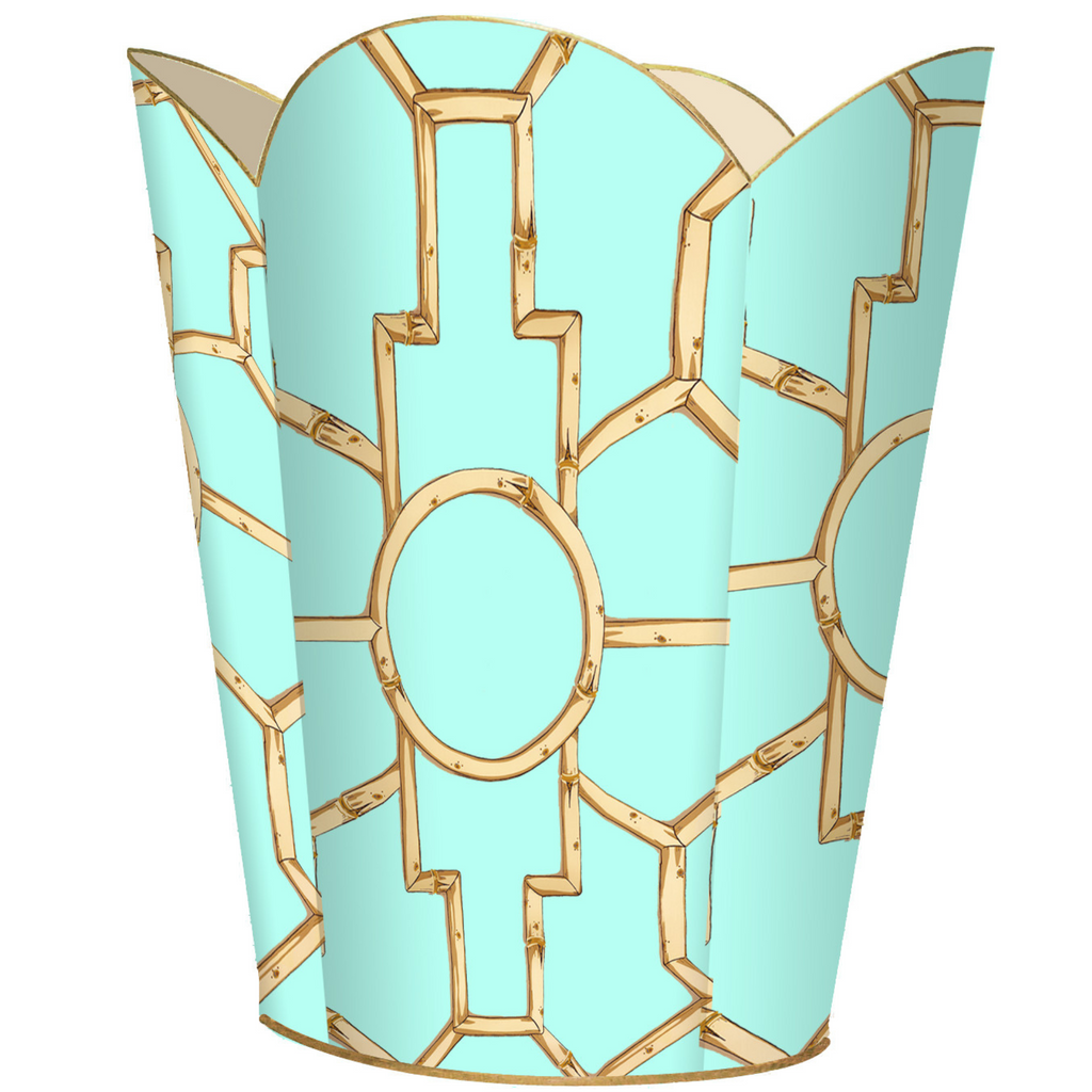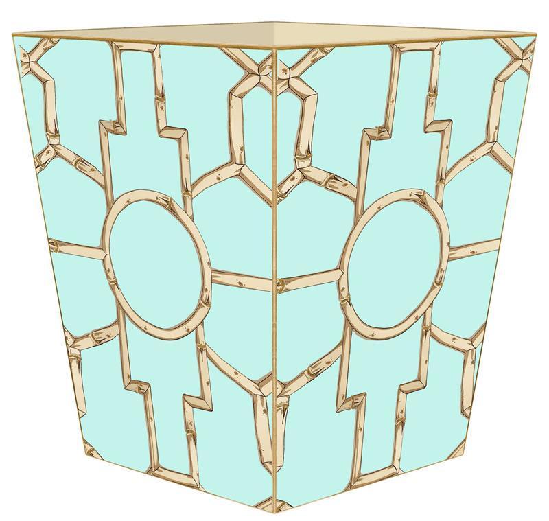 Gold Bamboo on Aqua Decoupage Wastebasket and Optional Tissue Box Cover