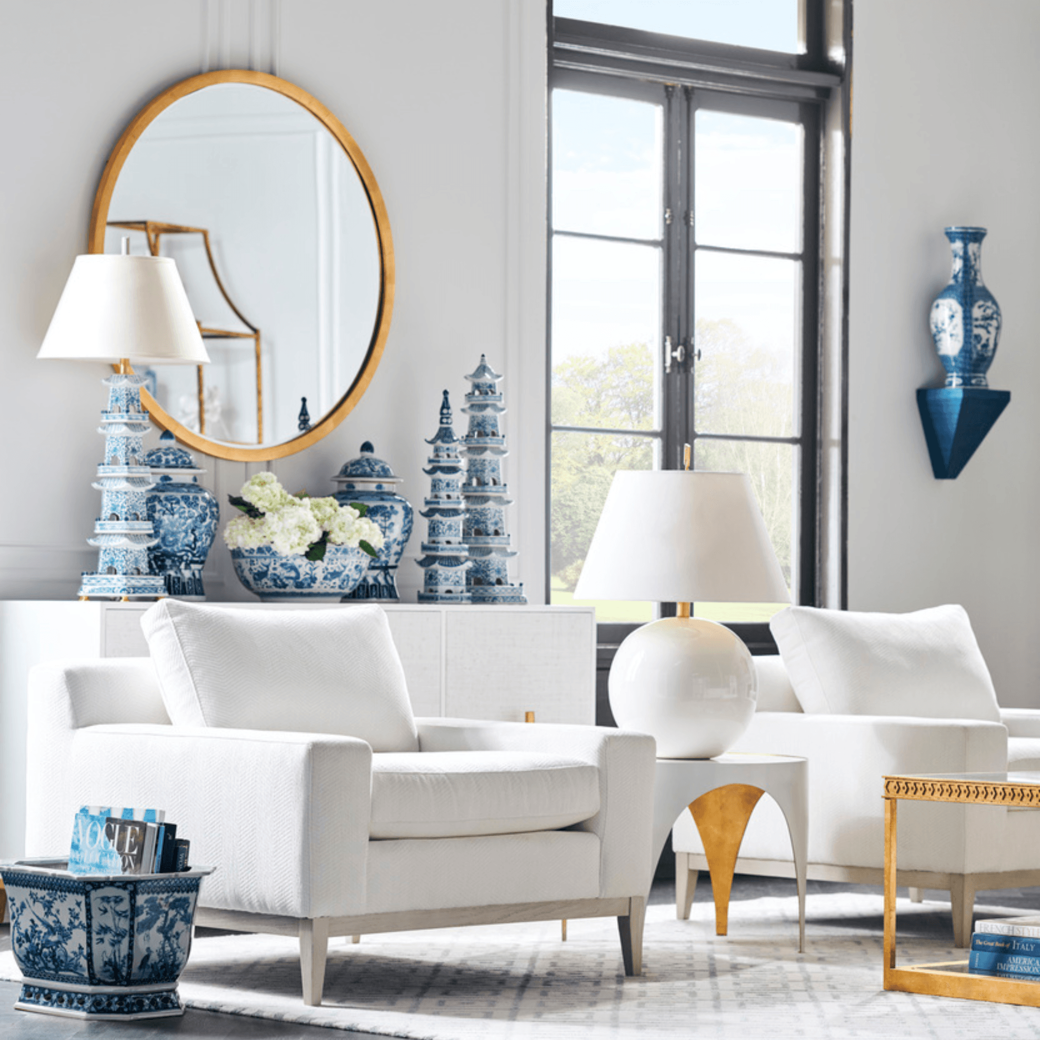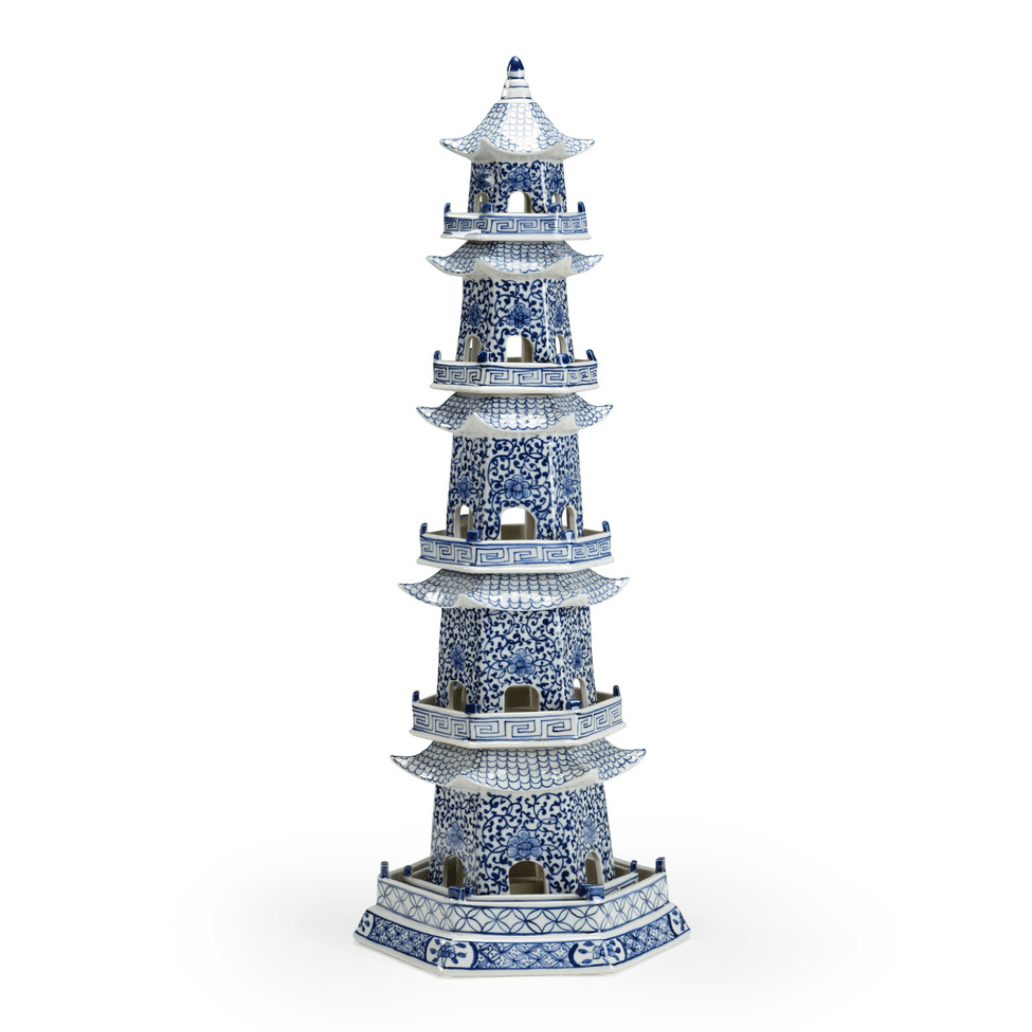 Hand Painted Blue and White Ceramic Canton Pagoda