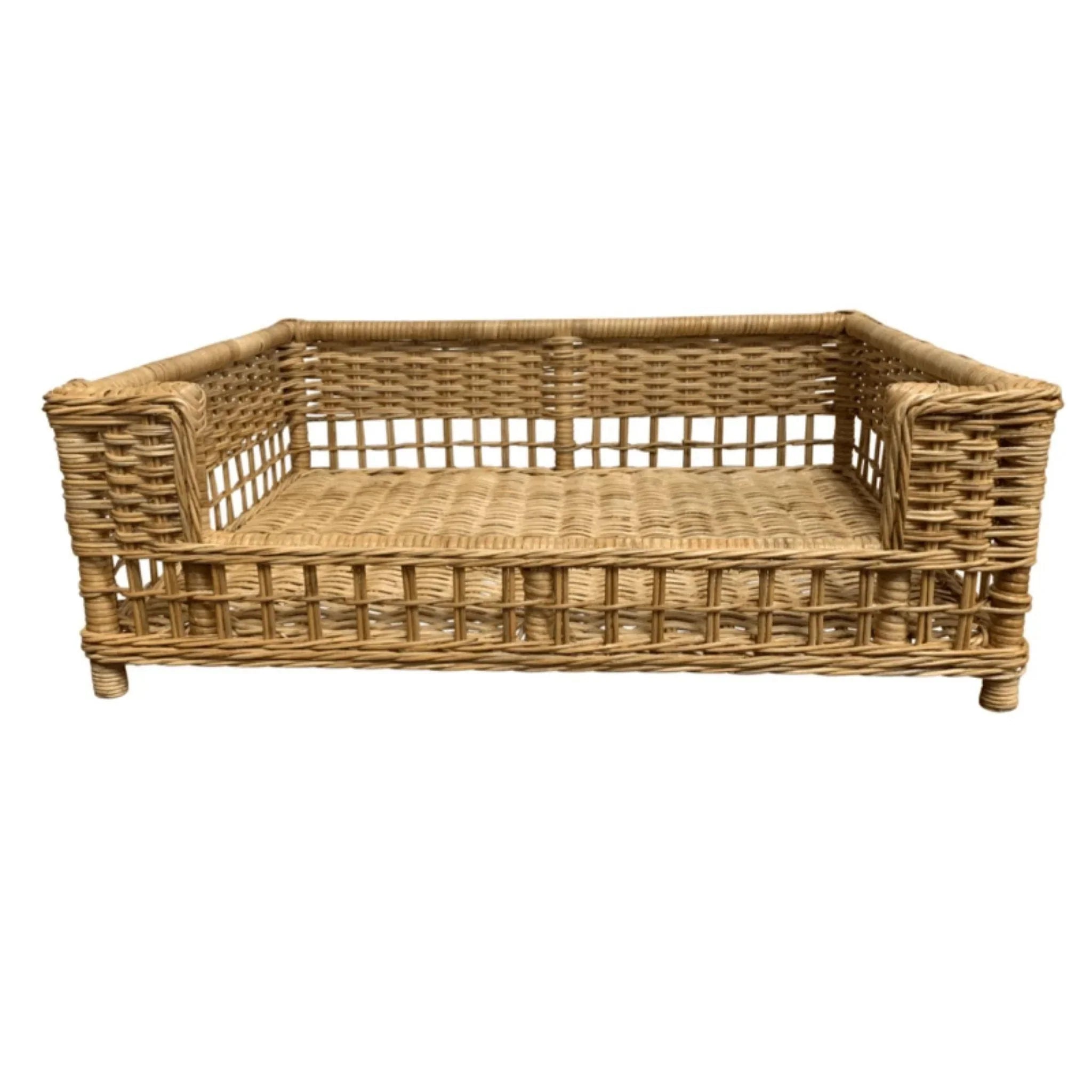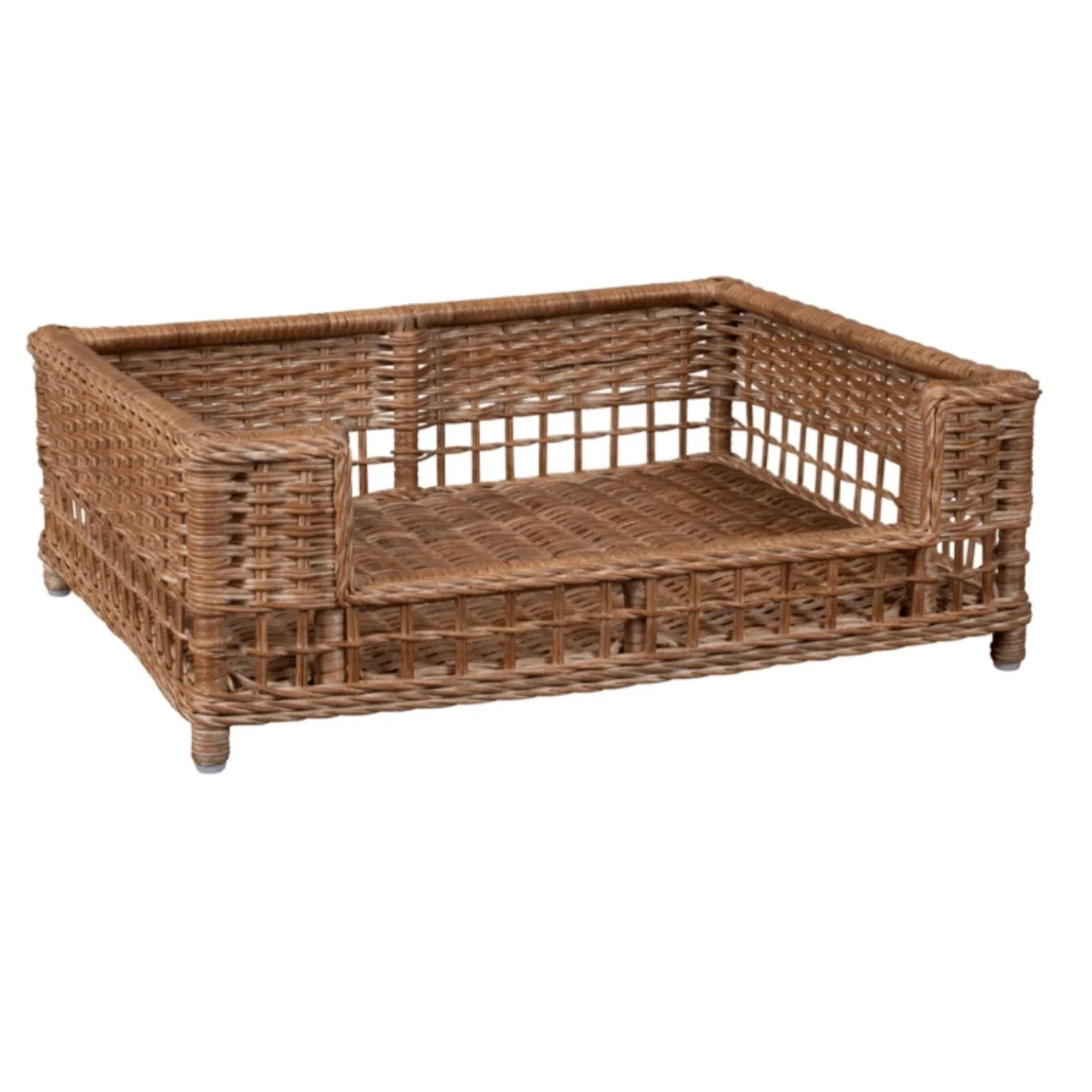 A beautiful all-rattan dog bed that any pup would love to call home! Shown in chestnut and natural.