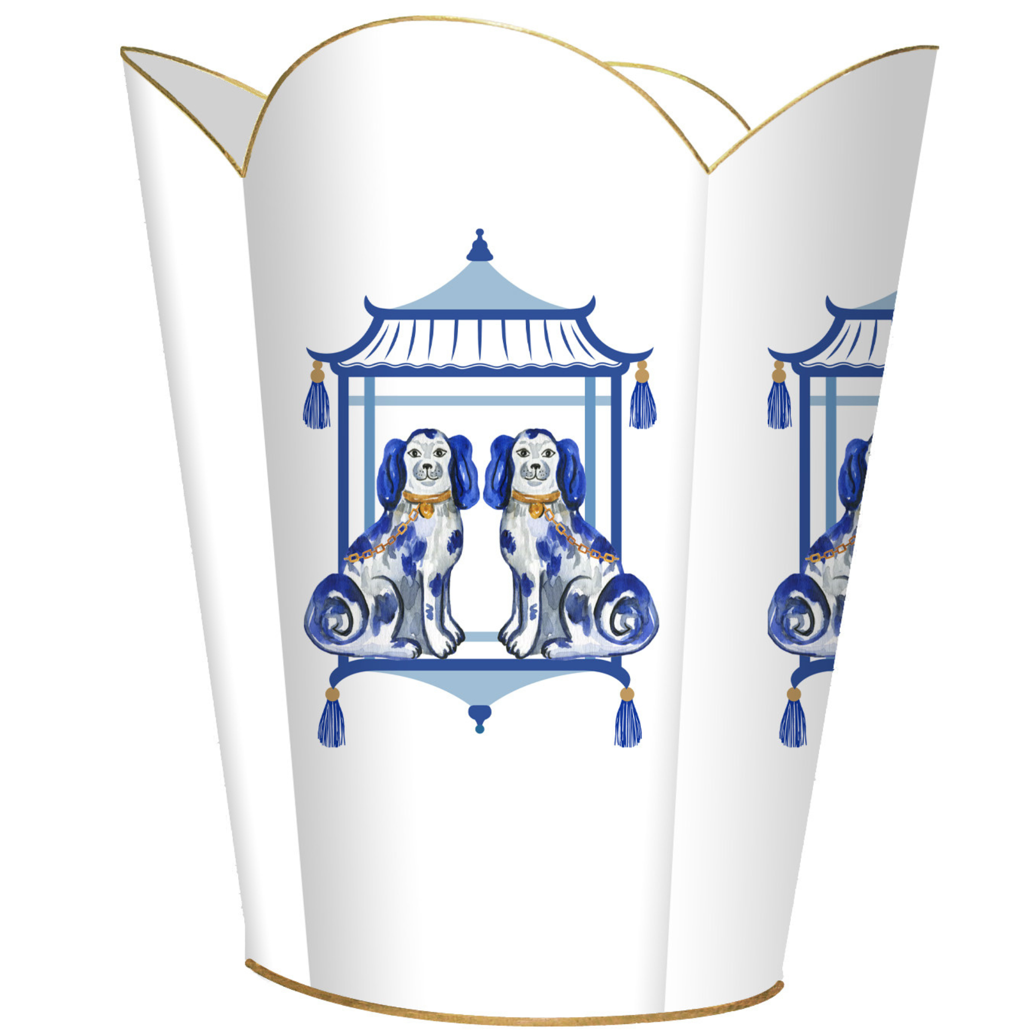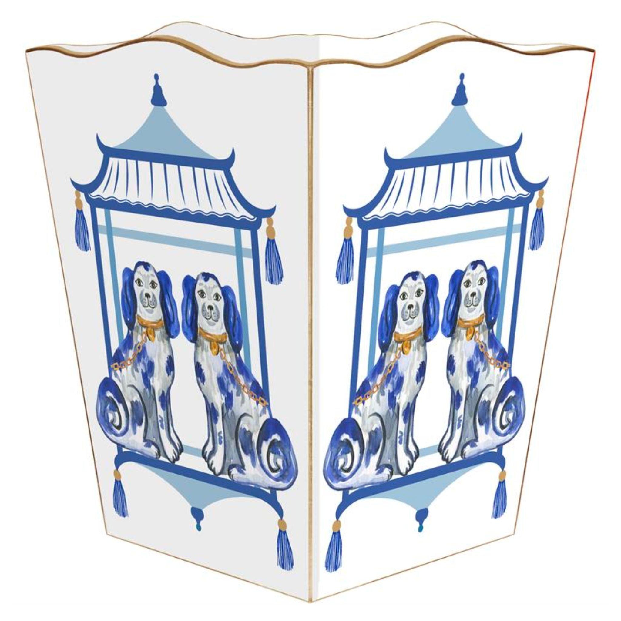 Blue Staffordshire Chic Dogs Wastepaper Basket and Optional Tissue Box Cover