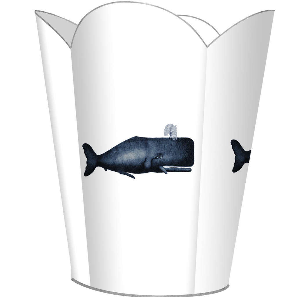 Vintage Navy Whale Decoupage Wastebasket and Optional Tissue Box Cover