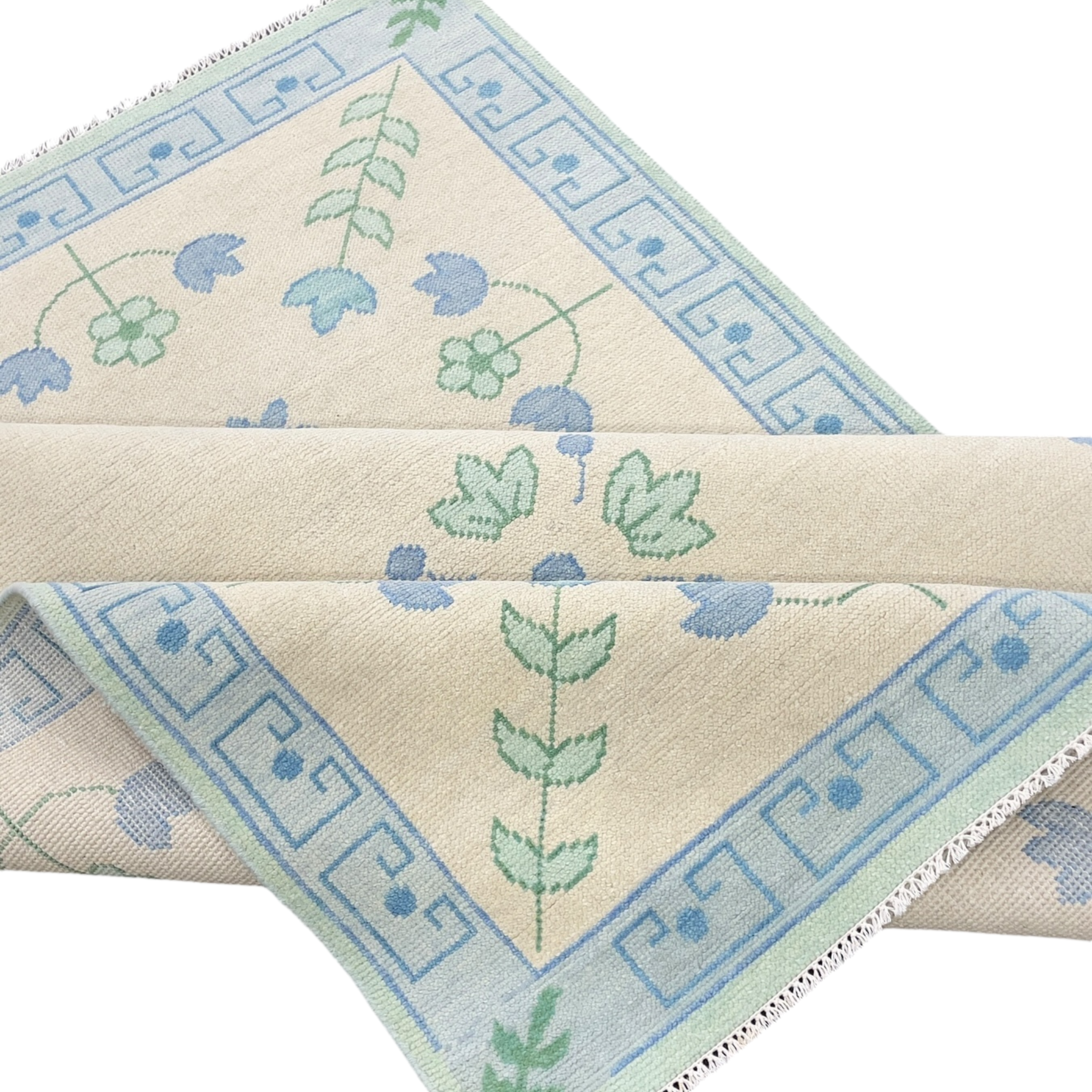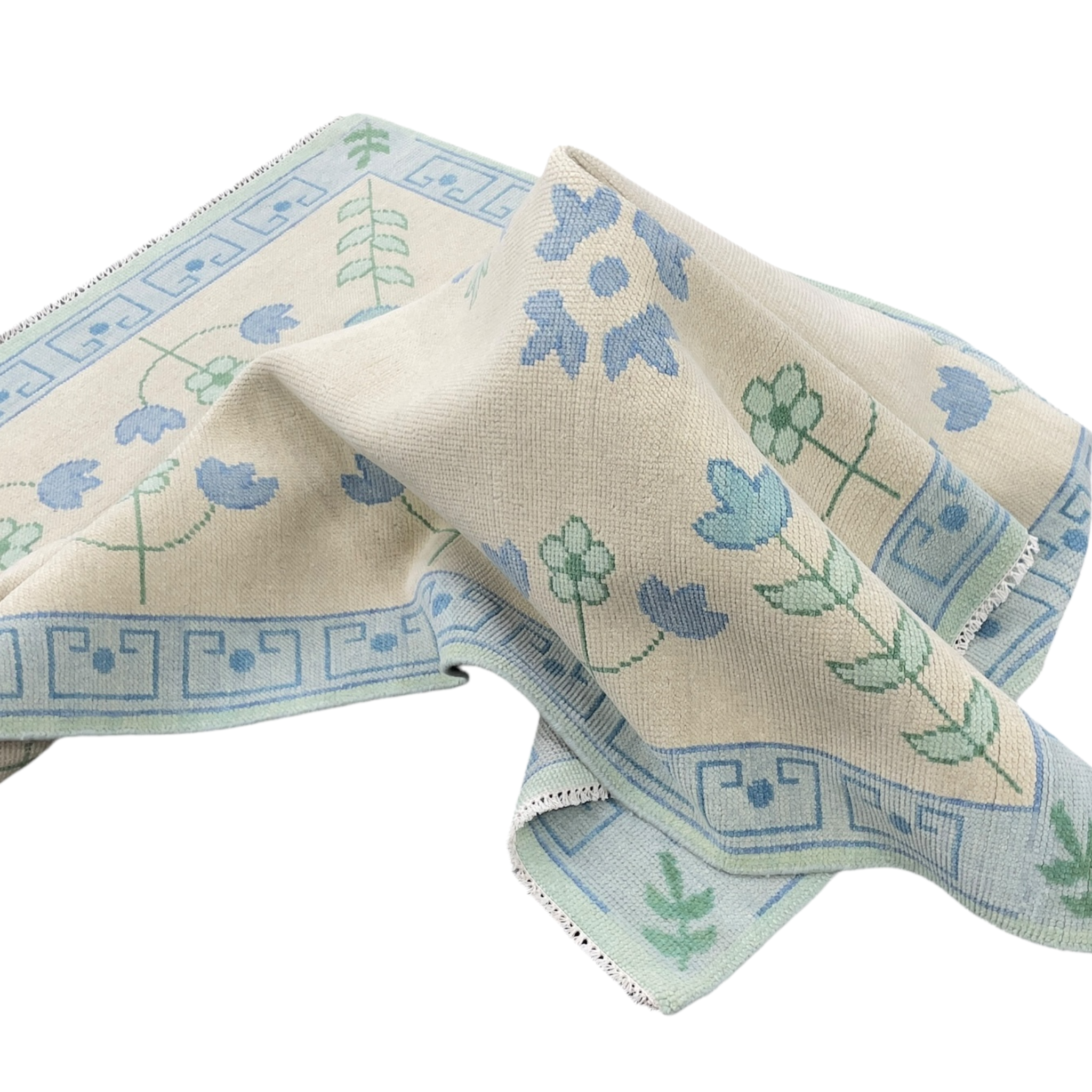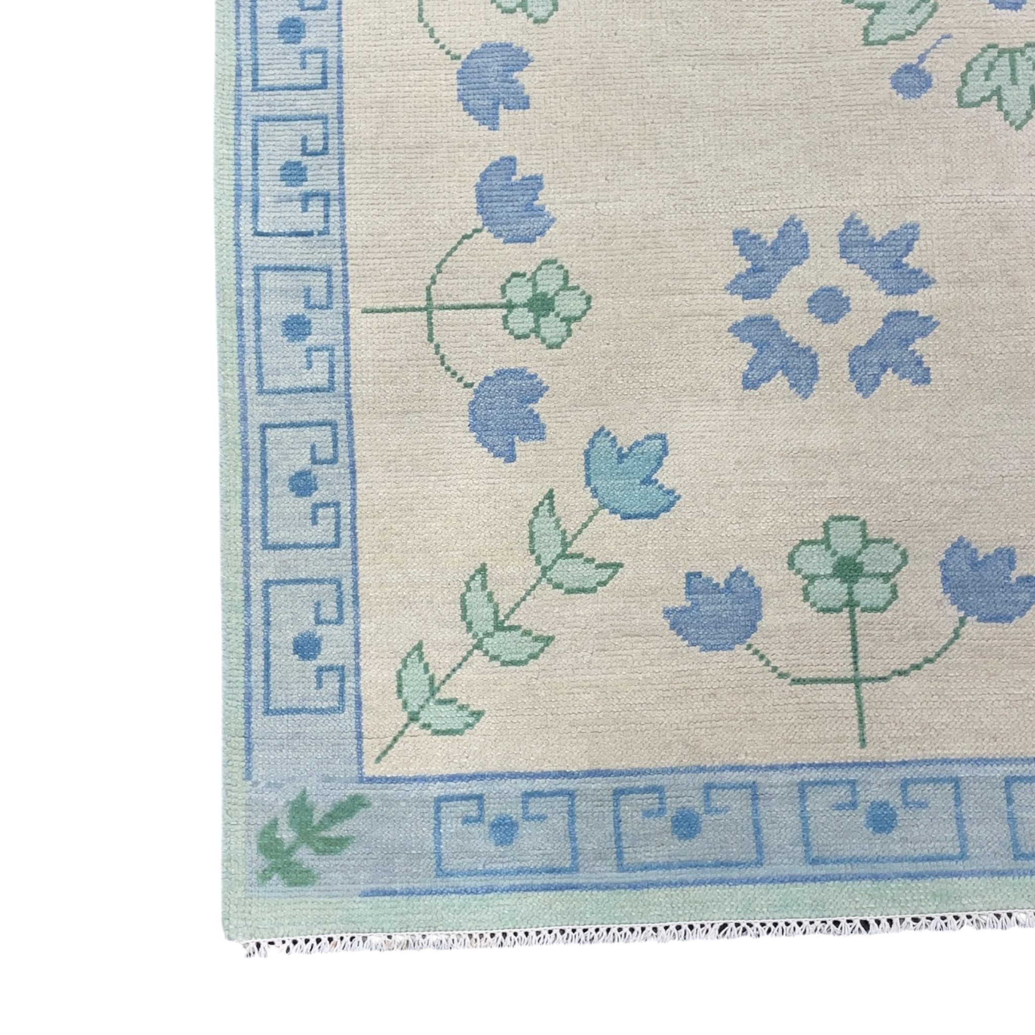 Introducing the Lauren Oushak Rug in Green & Blue, a luxurious addition to any space. Expertly handcrafted with a traditional Turkish knot weave, this one-of-a-kind rug by Melissa Hawks is a true masterpiece. Made to order for you, it boasts exceptional attention to detail and unparalleled durability. Elevate your decor with this exquisite  rug, perfect for any room in your home.