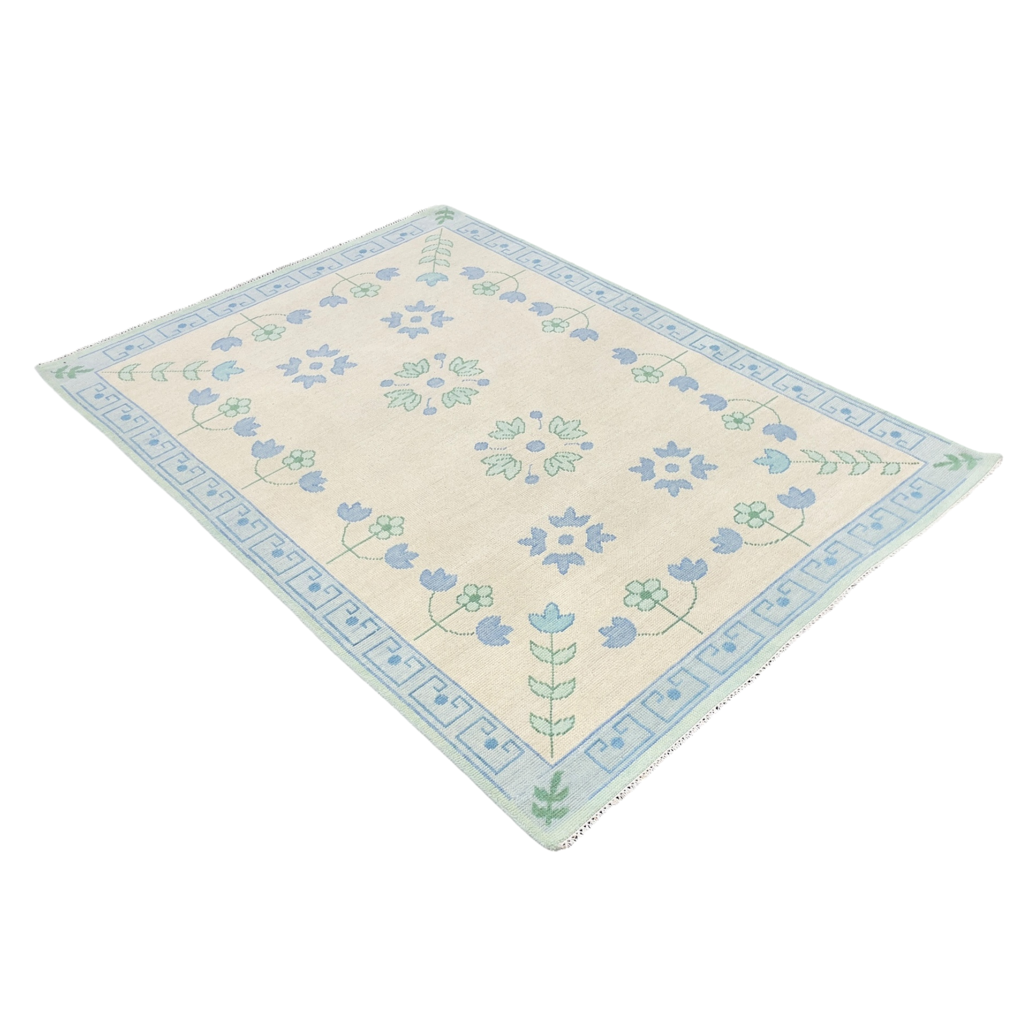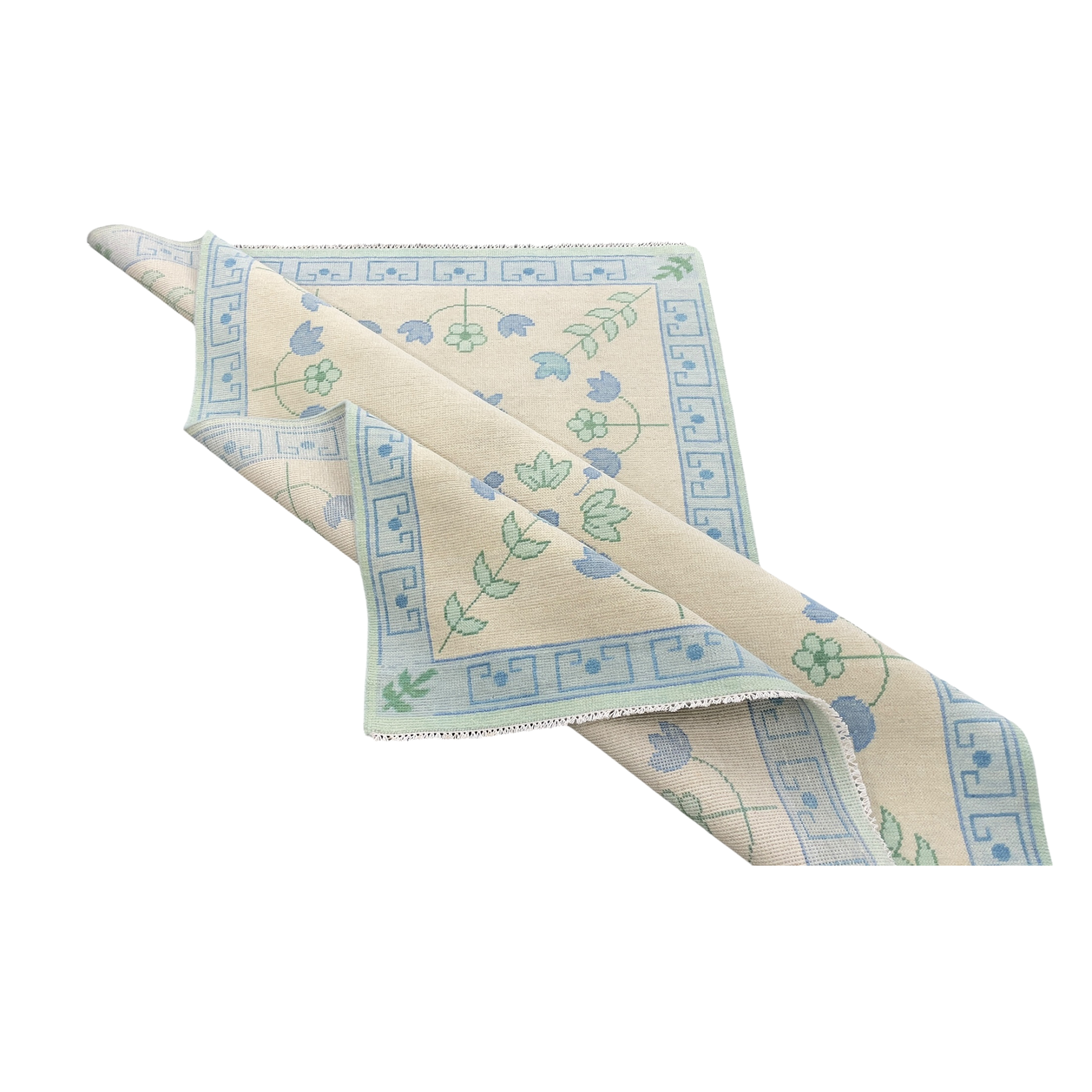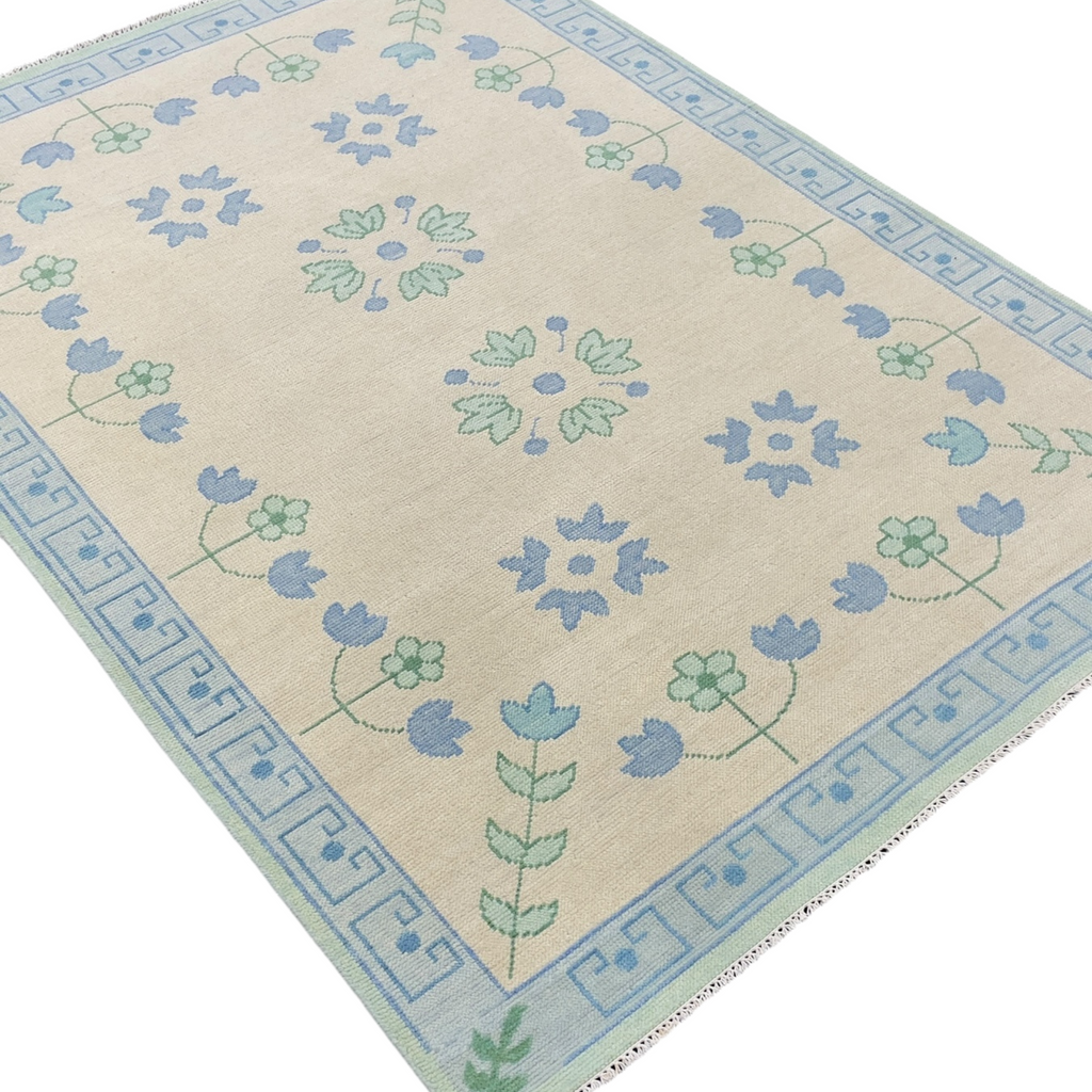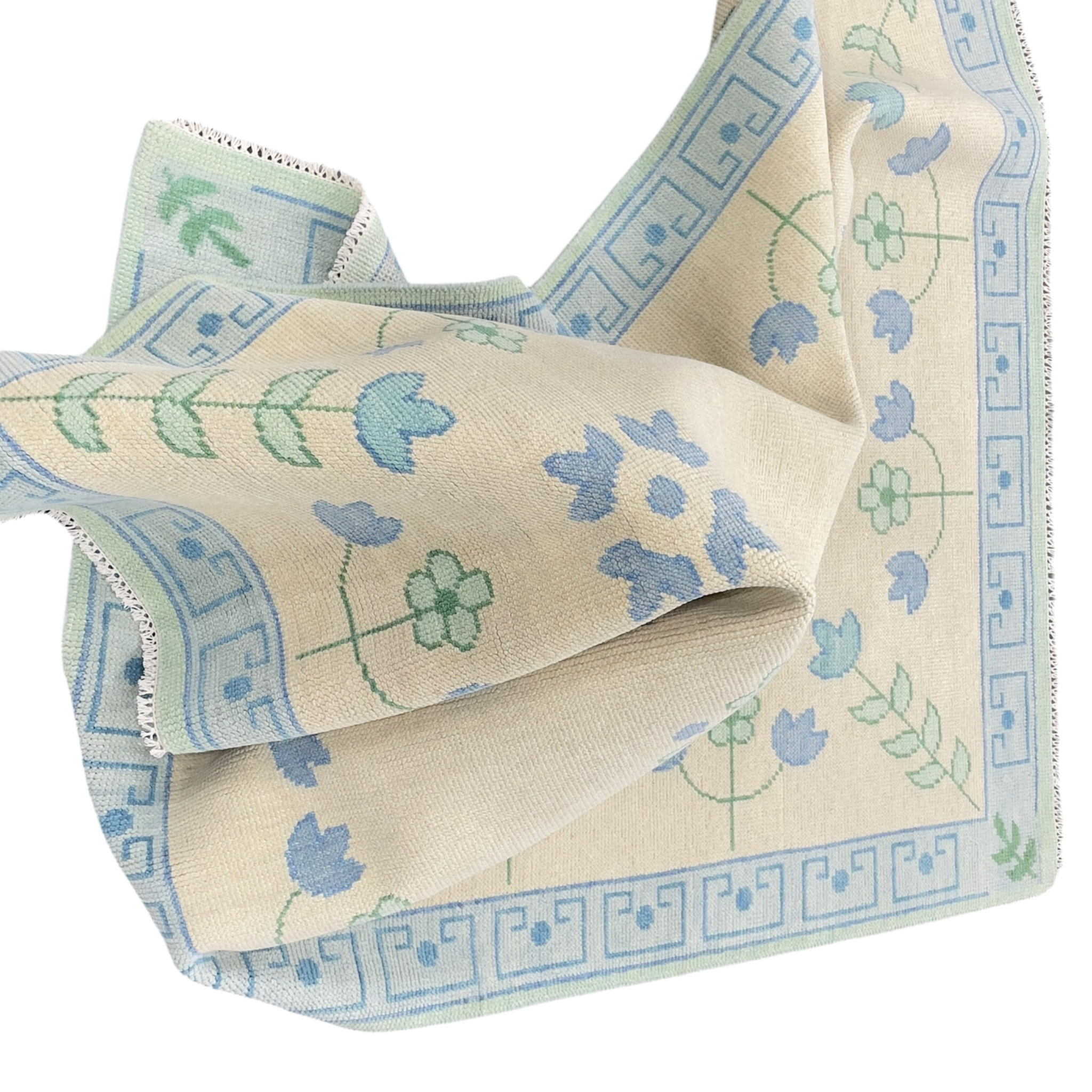 Introducing the Lauren Oushak Rug in Green & Blue, a luxurious addition to any space. Expertly handcrafted with a traditional Turkish knot weave, this one-of-a-kind rug by Melissa Hawks is a true masterpiece. Made to order for you, it boasts exceptional attention to detail and unparalleled durability. Elevate your decor with this exquisite  rug, perfect for any room in your home.