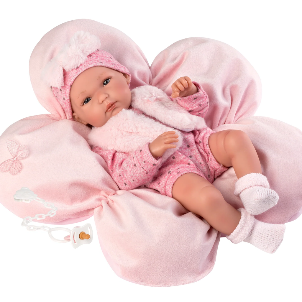 13.8" Newborn Tia with Flower Cushion