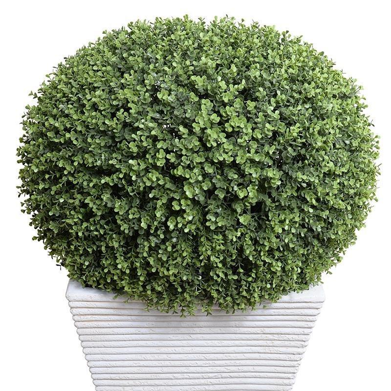 Outdoor UV-stable Enduraleaf 34" Pumpkin-Shaped Faux Boxwood Shrub in White Tapered Fiberglass