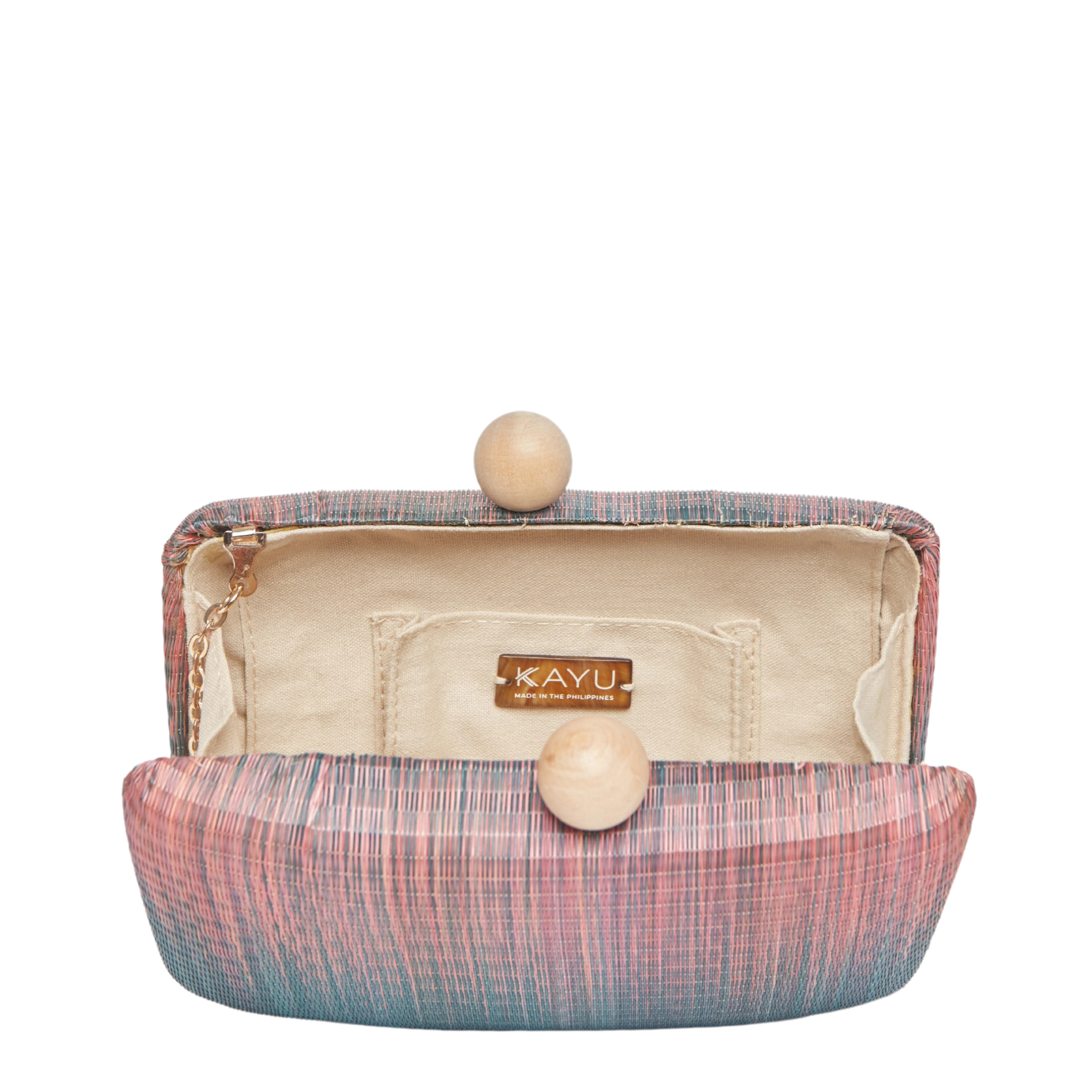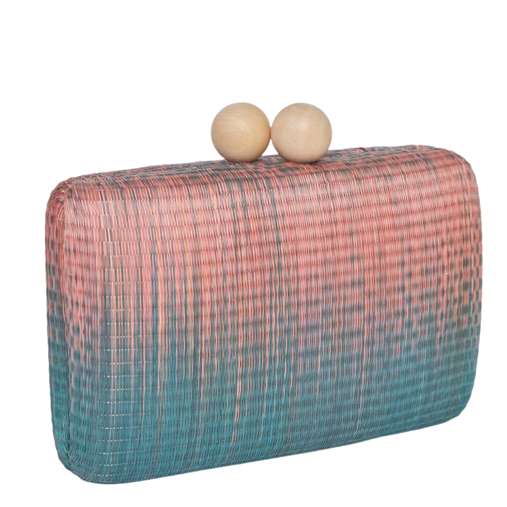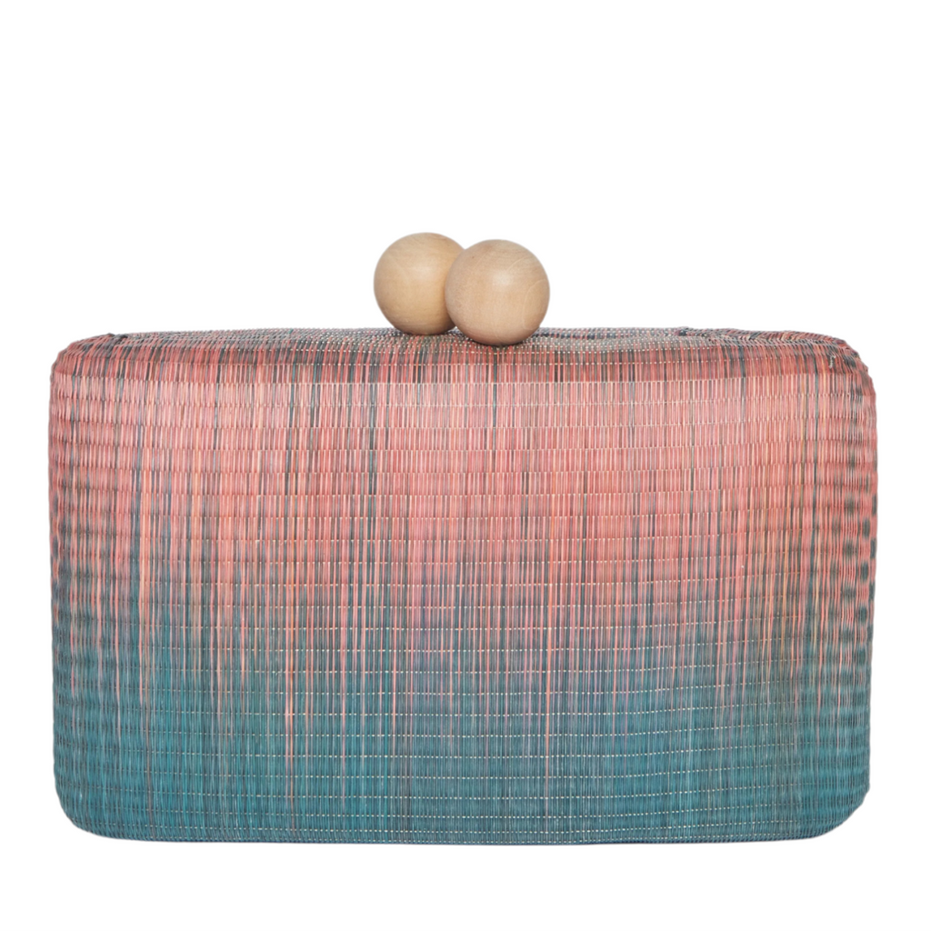Akna Woven Straw Clutch Bag in Pink Blue Ombre