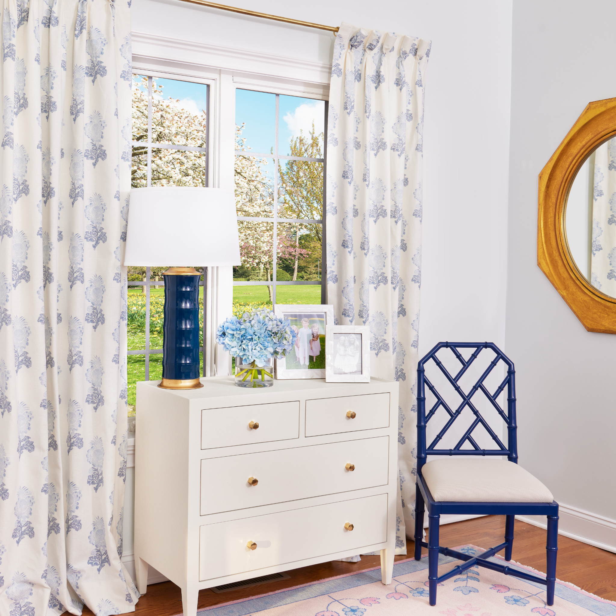 Introducing the Aldith Blue Single Drapery Panel. With a fresh and subtle English styling, this panel adds a touch of elegance to any room. Transform your home into a luxurious and exclusive space with this sophisticated piece. Experience the beauty and charm that comes with this panel.