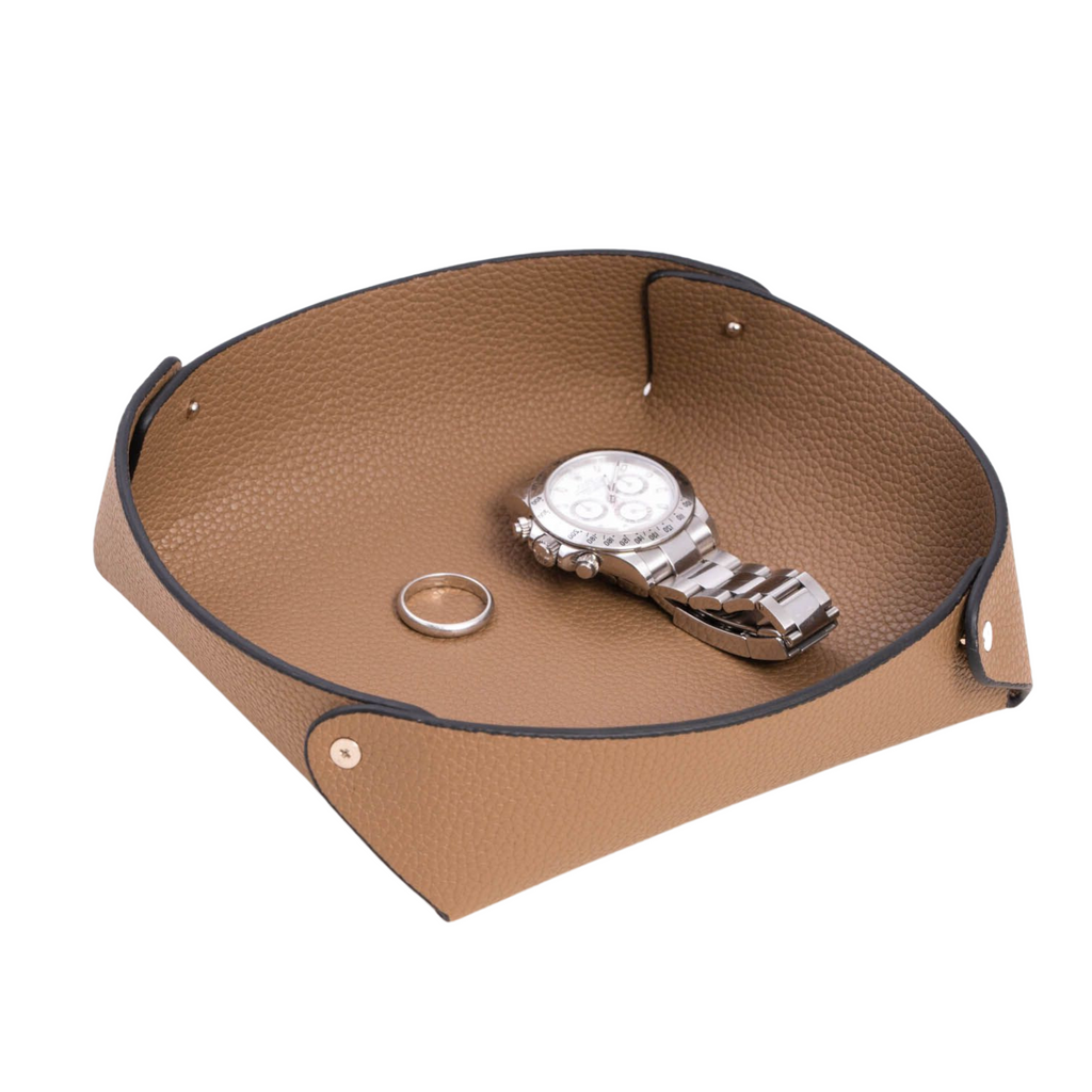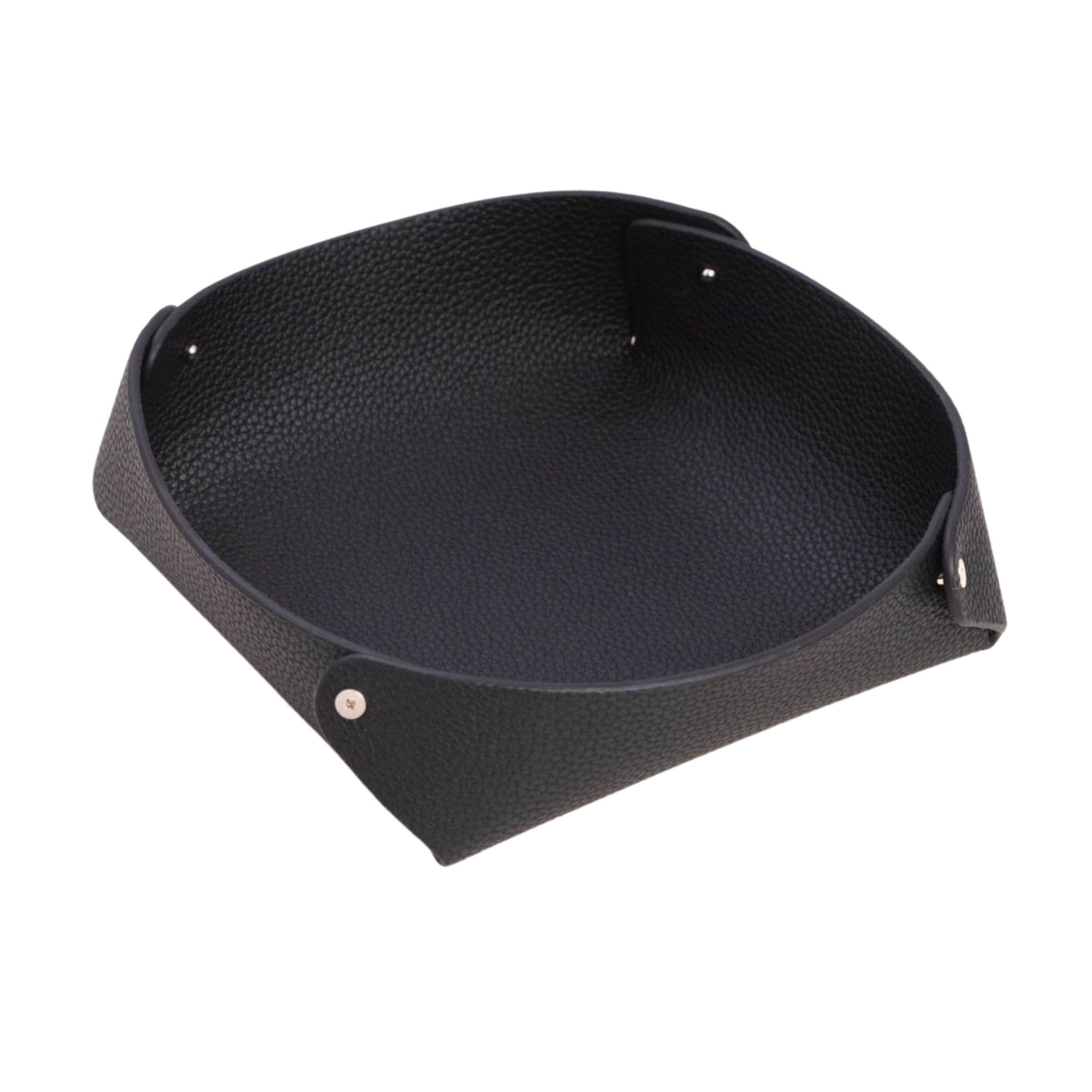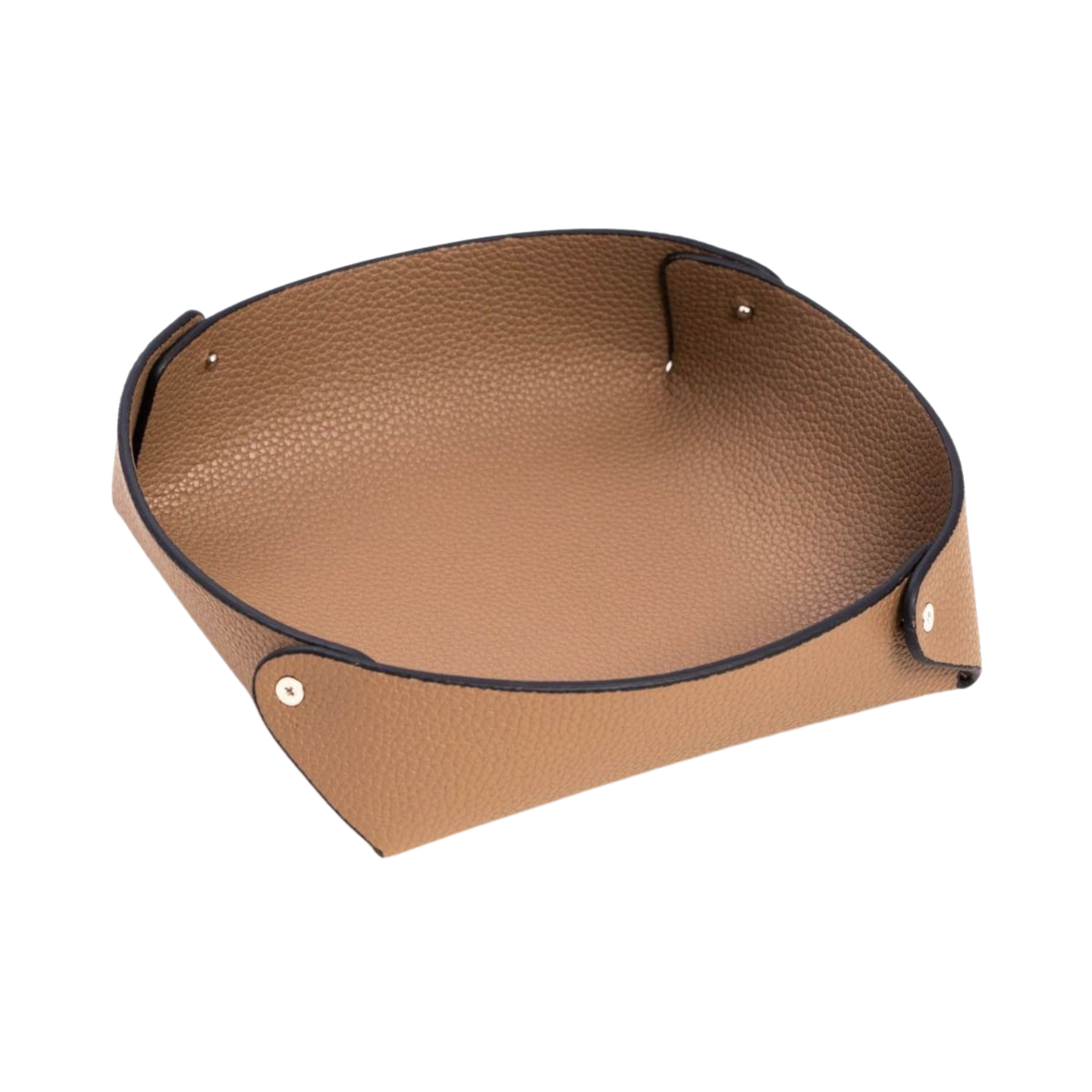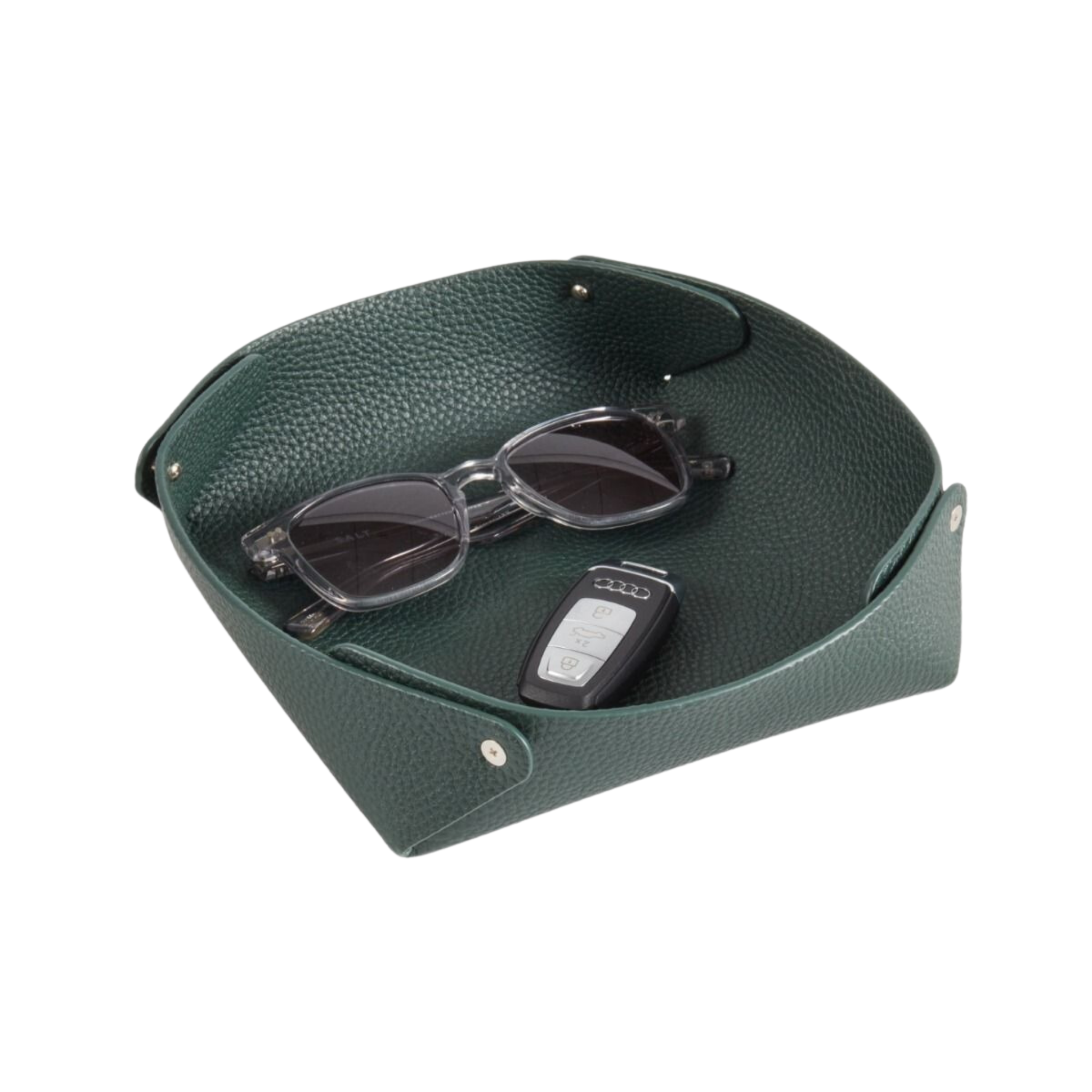 Keep your accessories readily accessible and neatly organized in our Alex leather valet tray. This leather tray sits handsomely on any nightstand, desk, dresser, or counter. The corner knuckle pins give our valet a sleek and easy way to lay flat and travel with. The perfect gift for the person who has it all! Click images for greater detail.