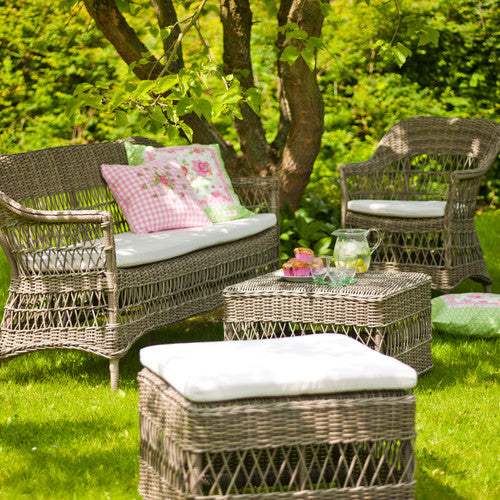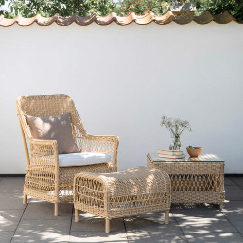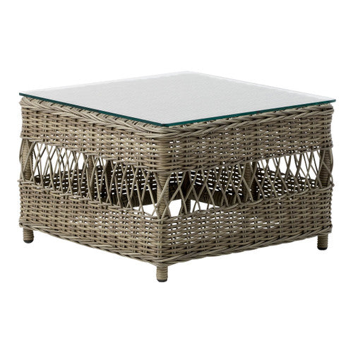 As a side table paired with one of the Georgia Garden collection's many sofa and chair options, the Anna Side Table creates a cozy, summerhouse atmosphere. The Anna can also be used without the glass top as a footrest. The Anna side table is made from strong, maintenance-free fibers woven on an aluminum frame for lasting durability.