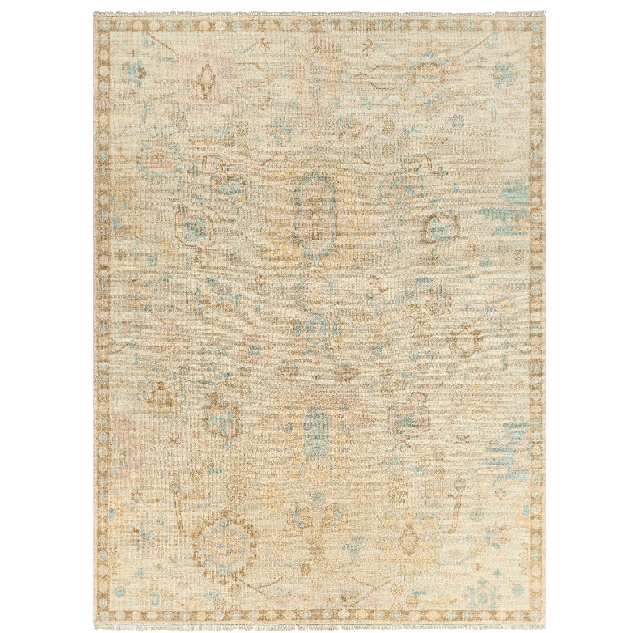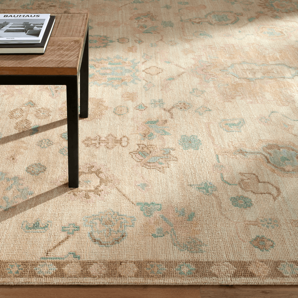 Creamy Beige, Brown & Blue Floral Wool Area Rug