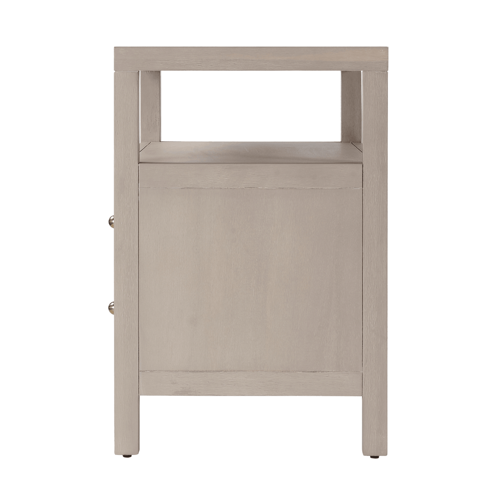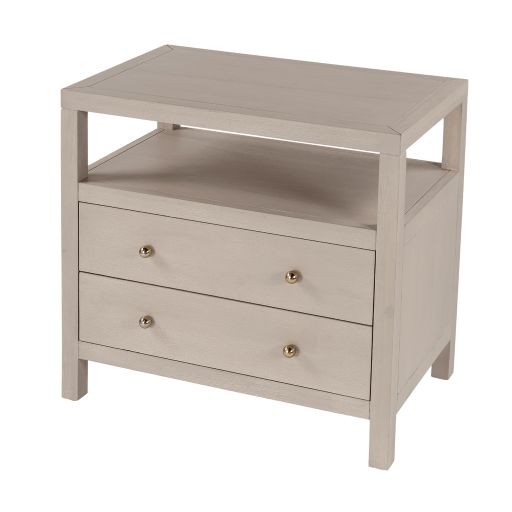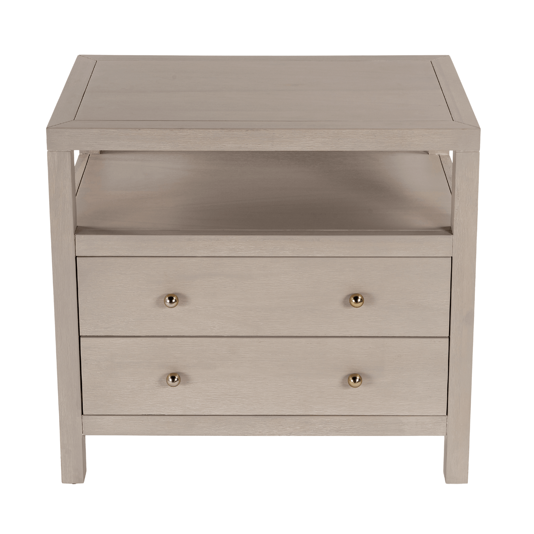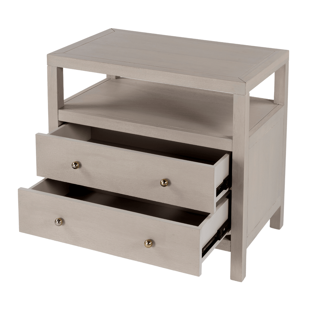 This two drawer nightstand features veneer wood and engineered wood substrates. The wood veneer is used for a smooth and consistent color tone, while the engineered wood beneath it provides strength and durability. Tongue and groove joinery and drawers on ball-bearing glides add to the quality of this nightstand. Perfect in your bedroom or guest room or for extra storage as an end table. This nightstand arrives fully assembled. Click images for greater detail.