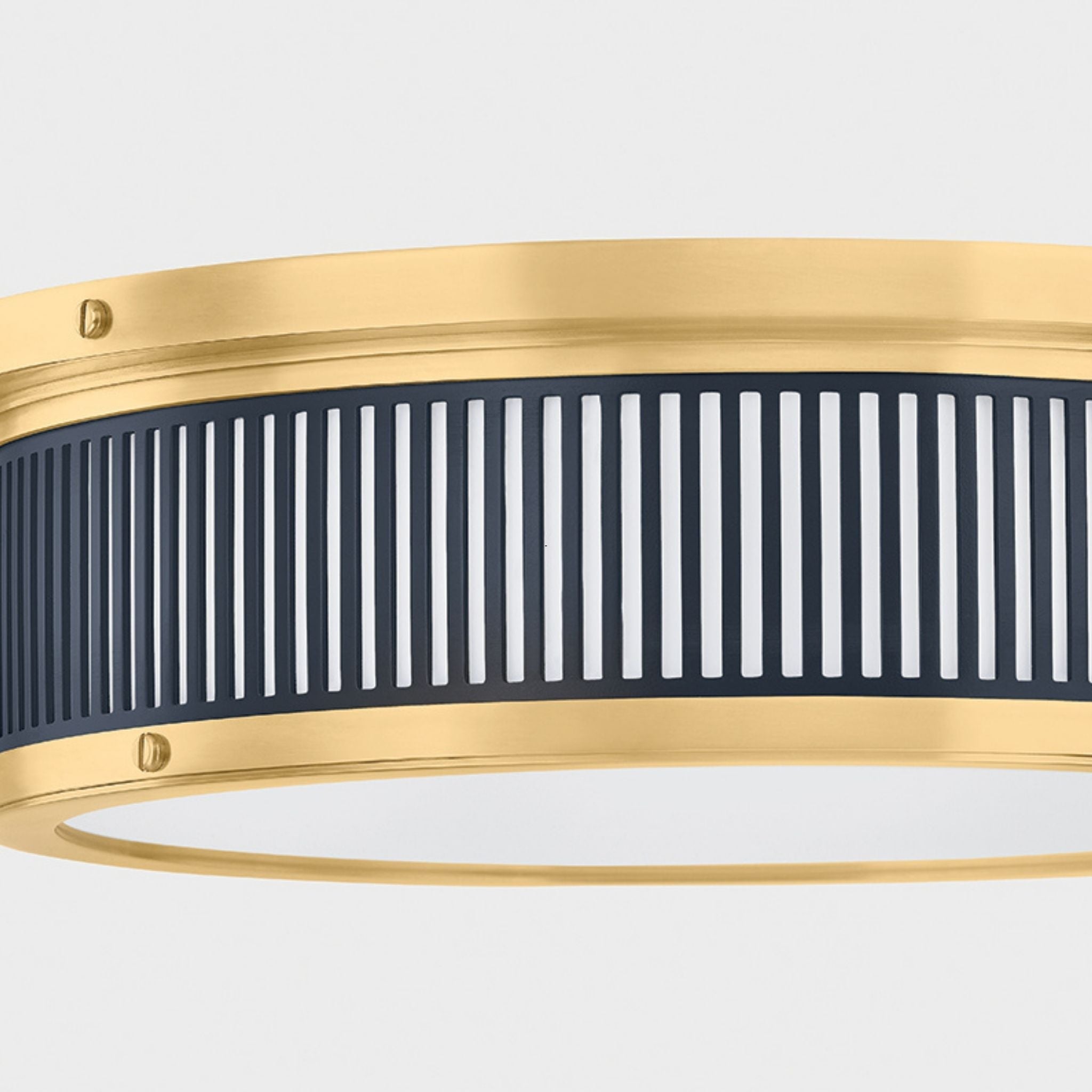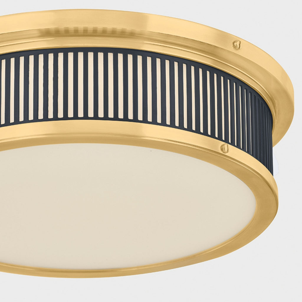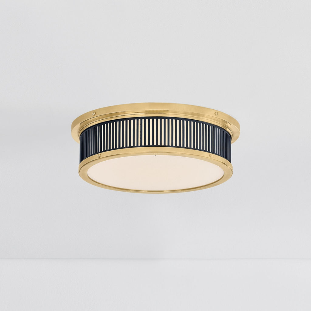 By blending classic and contemporary elements, the Ashdown family offers a new take on sophisticated ceiling lighting. These flush mounts feature Mark D. Sikes' signature brass screw accents and a white glass shade. The distinctive geometric perforations on the frame provide another decorative detail.
