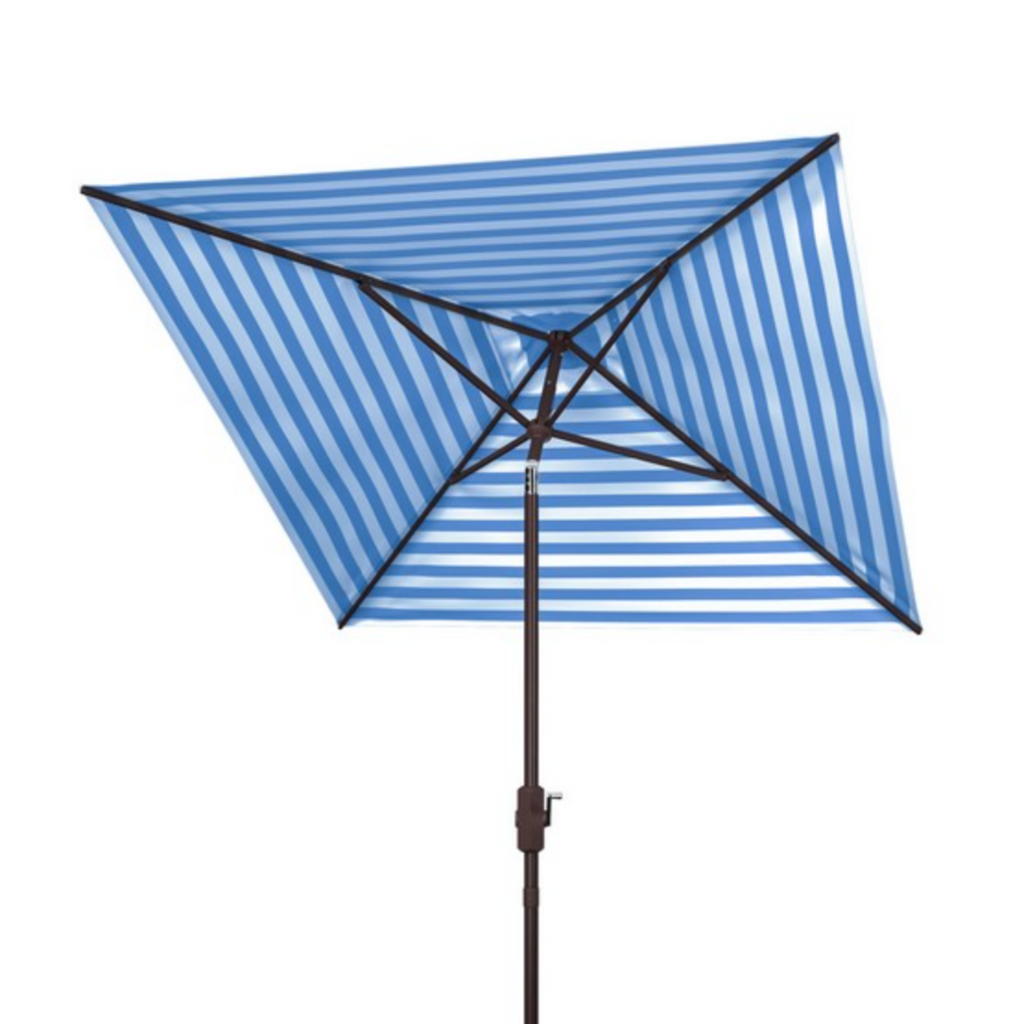 Inspired by the sun-drenched terrace of Monaco’s premier hotel overlooking the Mediterranean, this striking square crank umbrella embodies timeless French elegance. The blue canopy is complemented by a subtle white and blue striped pattern beneath, creating the perfect touch for a stylish outdoor retreat. Click on images for greater detail.