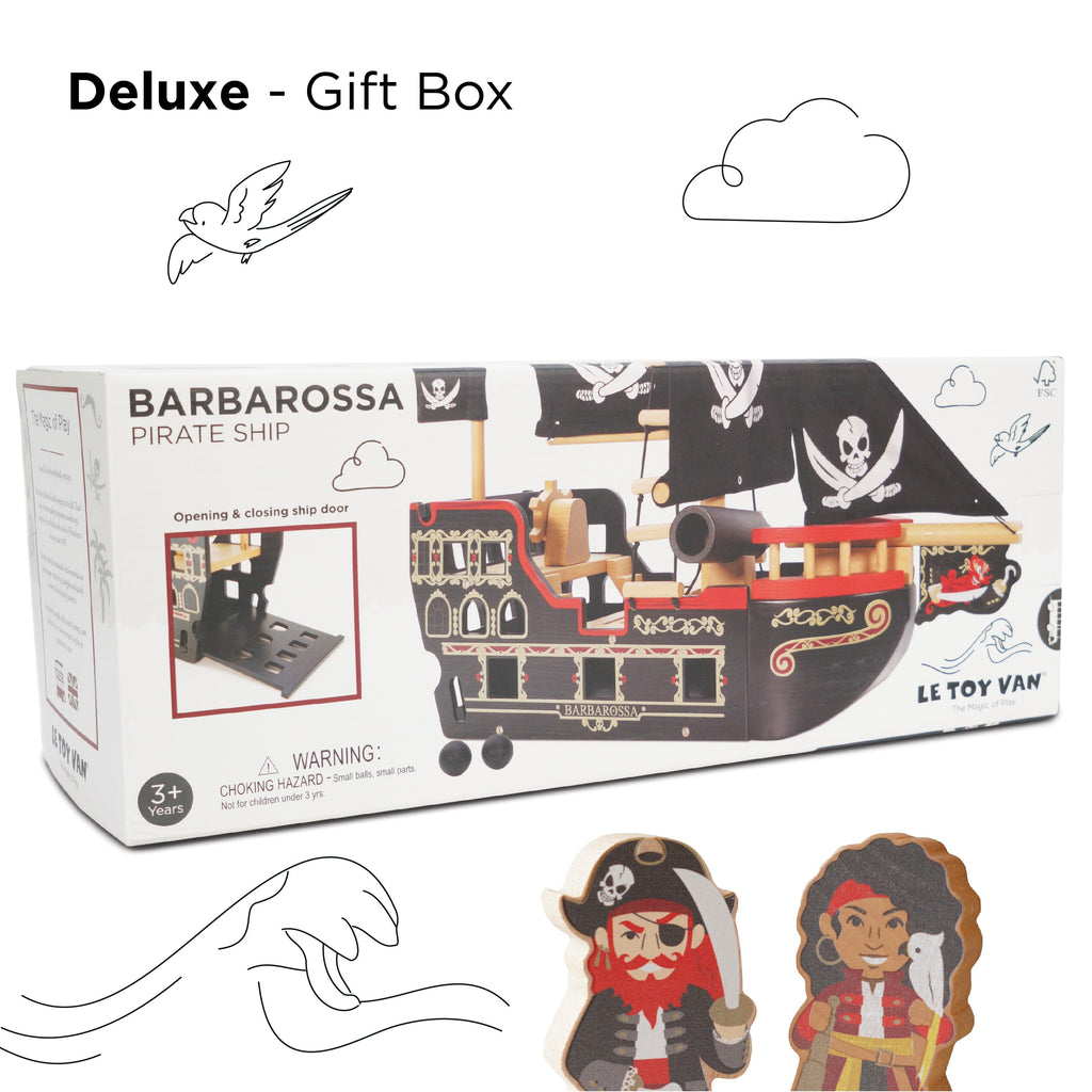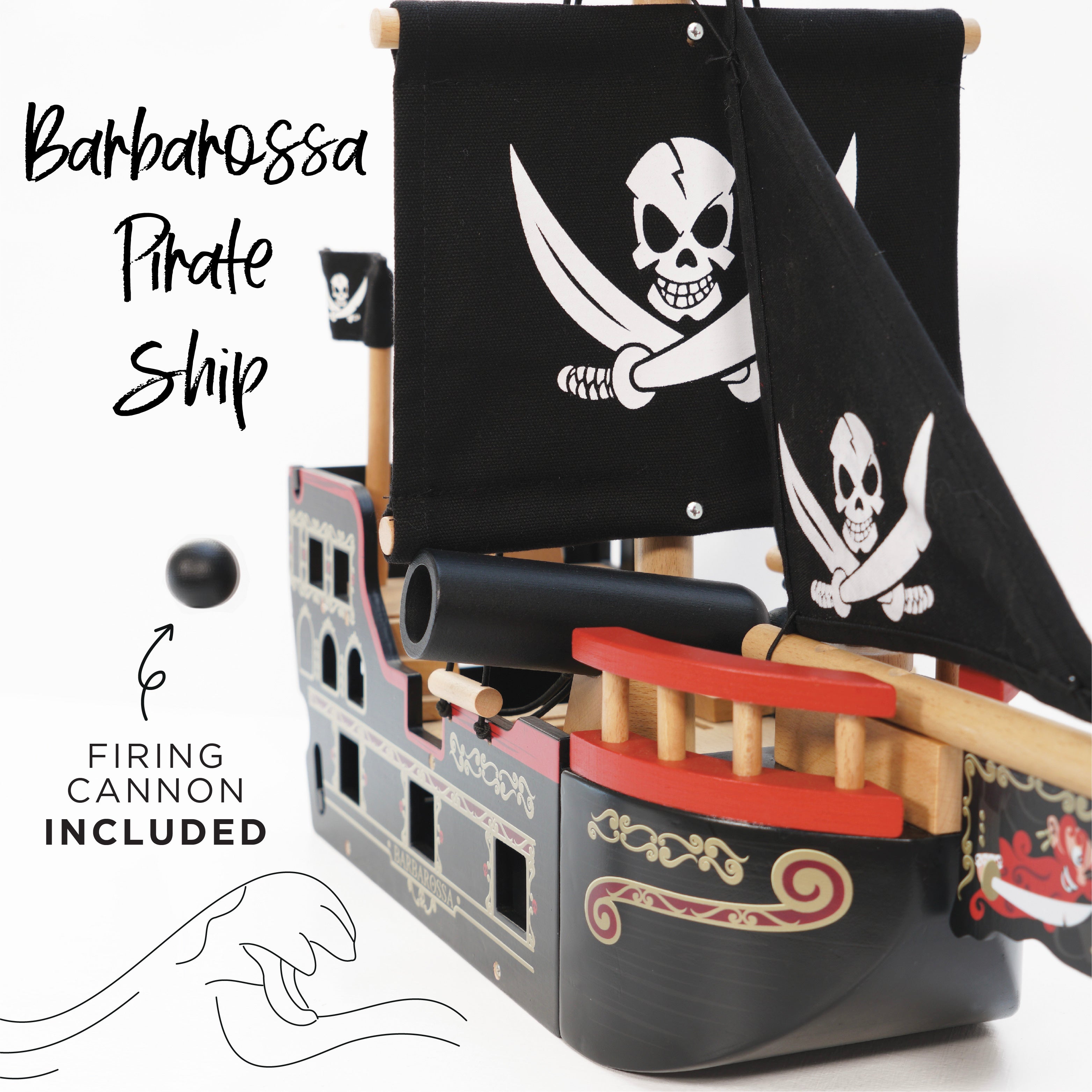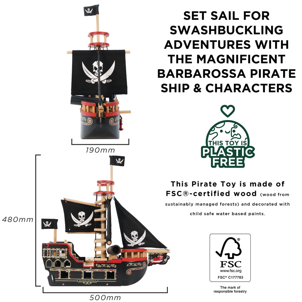 Set sail for swashbuckling adventures with the magnificent Barbarossa pirate ship with characters.