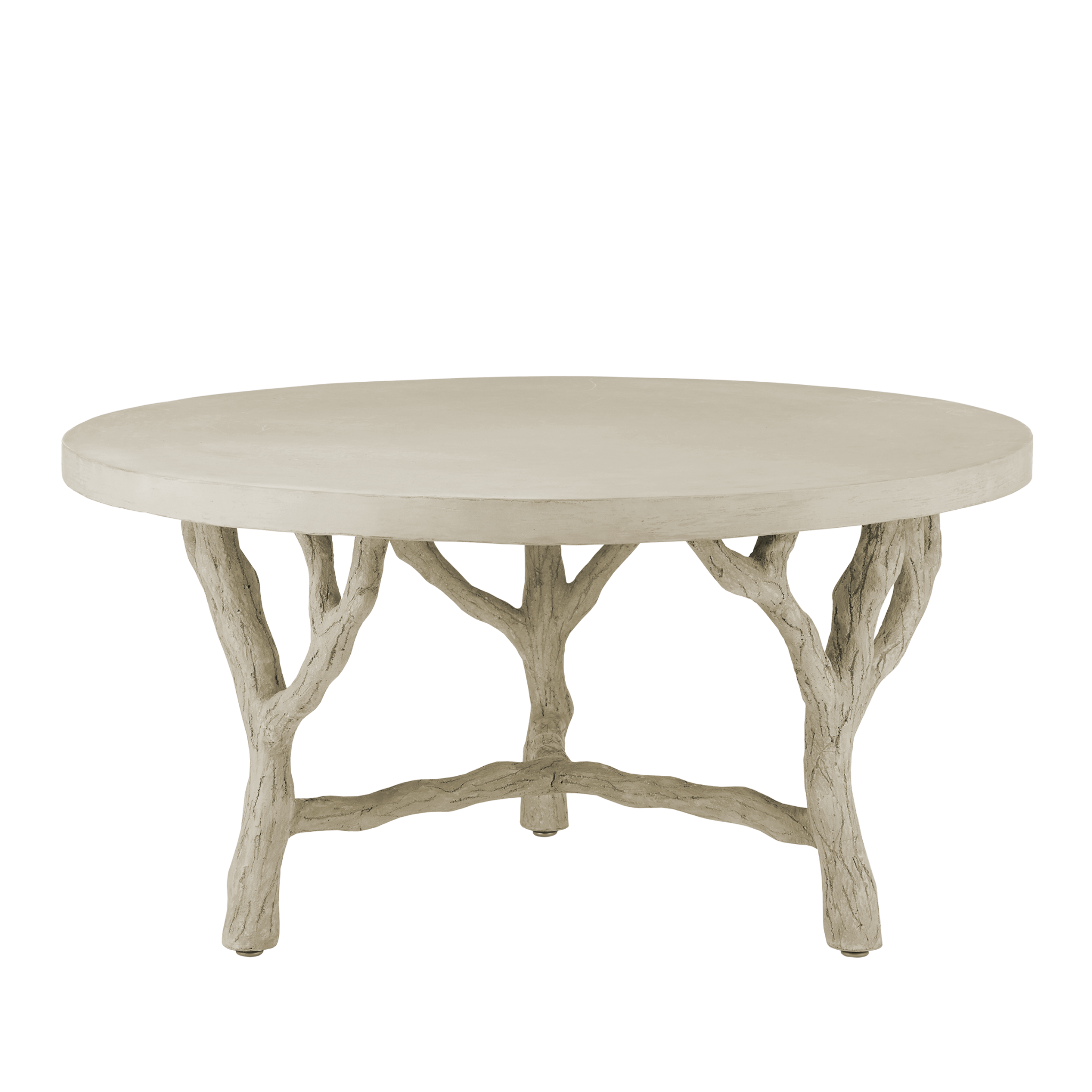 In the time-honored artistry of French faux bois, the legs of the Beaujon Cocktail Table are fashioned to resemble slender saplings that gracefully angle up to its top to convince the eye that nature created them. Durability makes this faux bois table, made of concrete in a faux bois natural finish, perfect for the outdoors, but it will look lovely indoors, too.