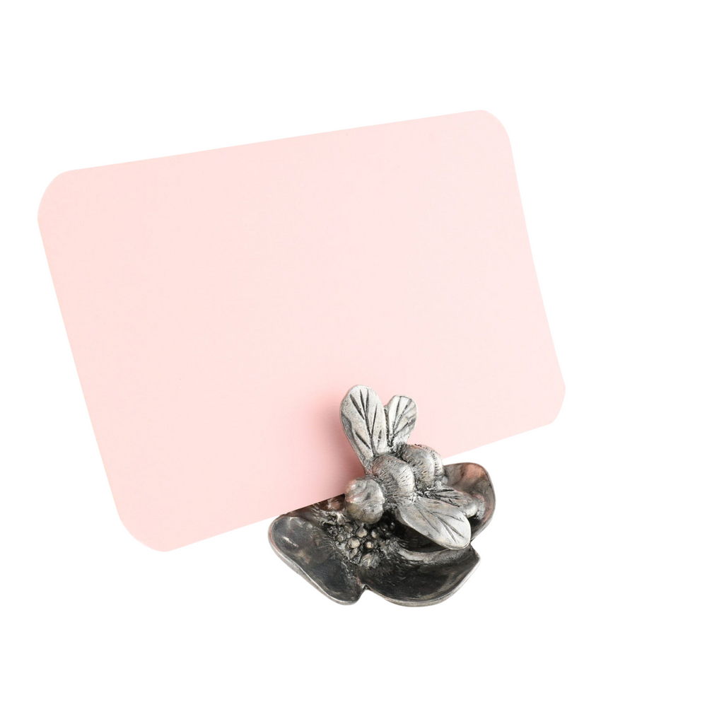 Make your guests buzz with excitement when they see their name in one of Vagabond House's Bee Place Card Holders. Cards slide right under the wing of a pure-pewter honeybee as it rests on top of a flower. Each insect shows remarkable definition in its wings and rippled body.