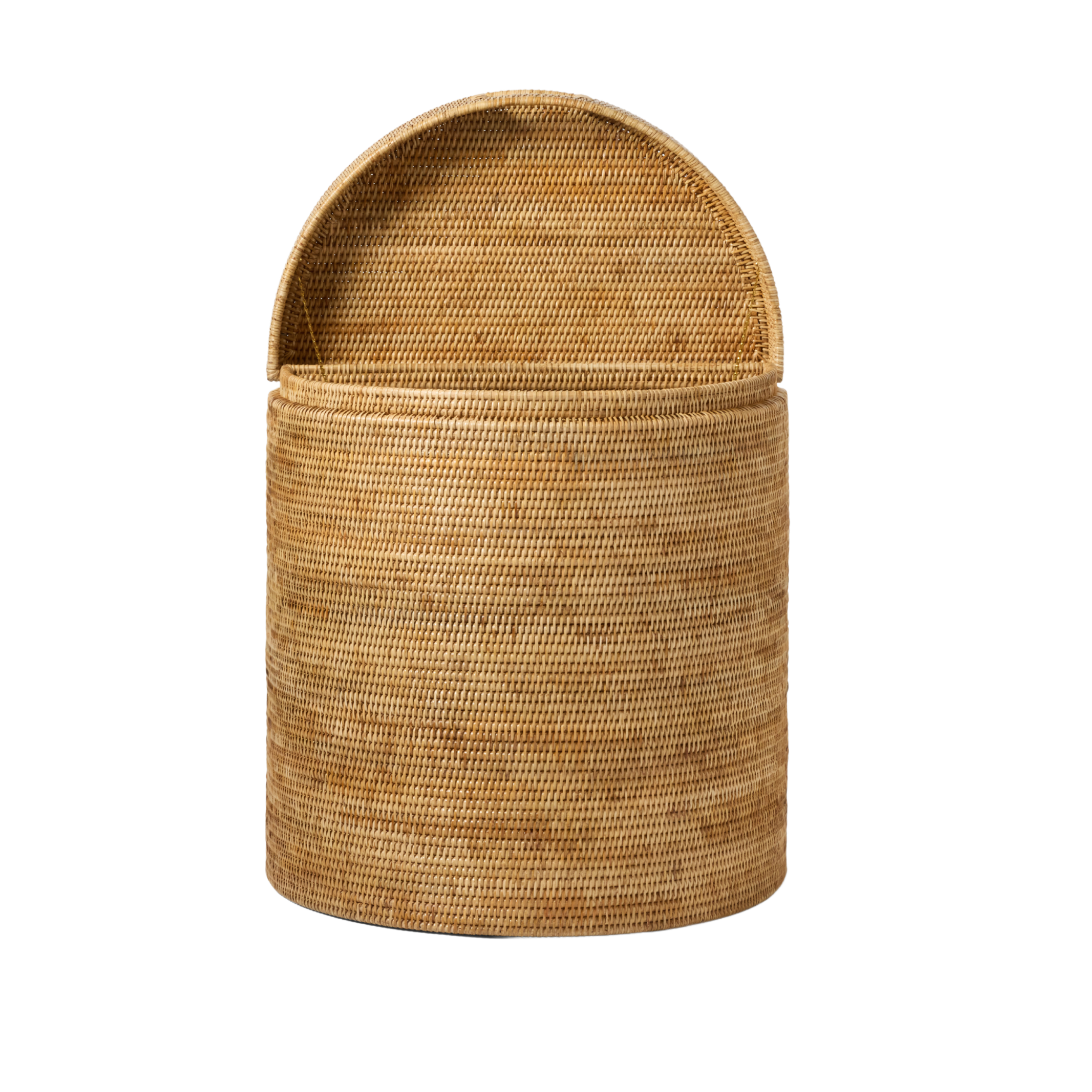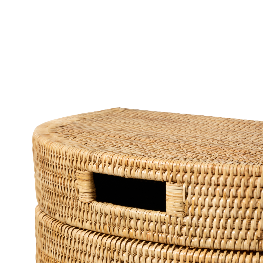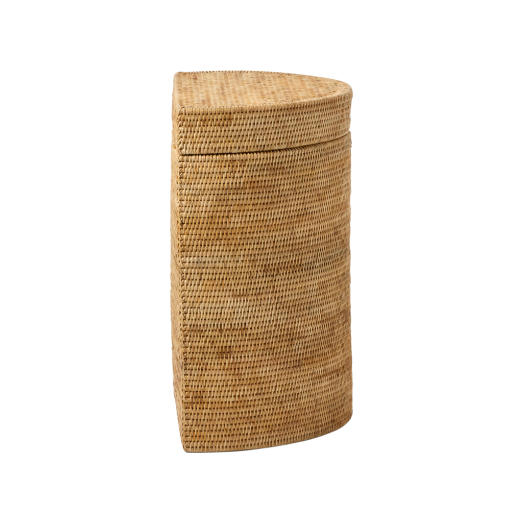 Discover the Belek Hamper, where artisanal craftsmanship meets understated elegance. Handwoven from natural rattan in a sleek half-moon silhouette, this hamper offers a sculptural presence that elevates any space. Its compact design is perfect for smaller areas, combining functionality with a touch of organic beauty.