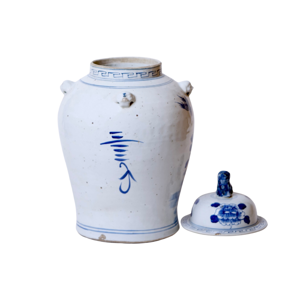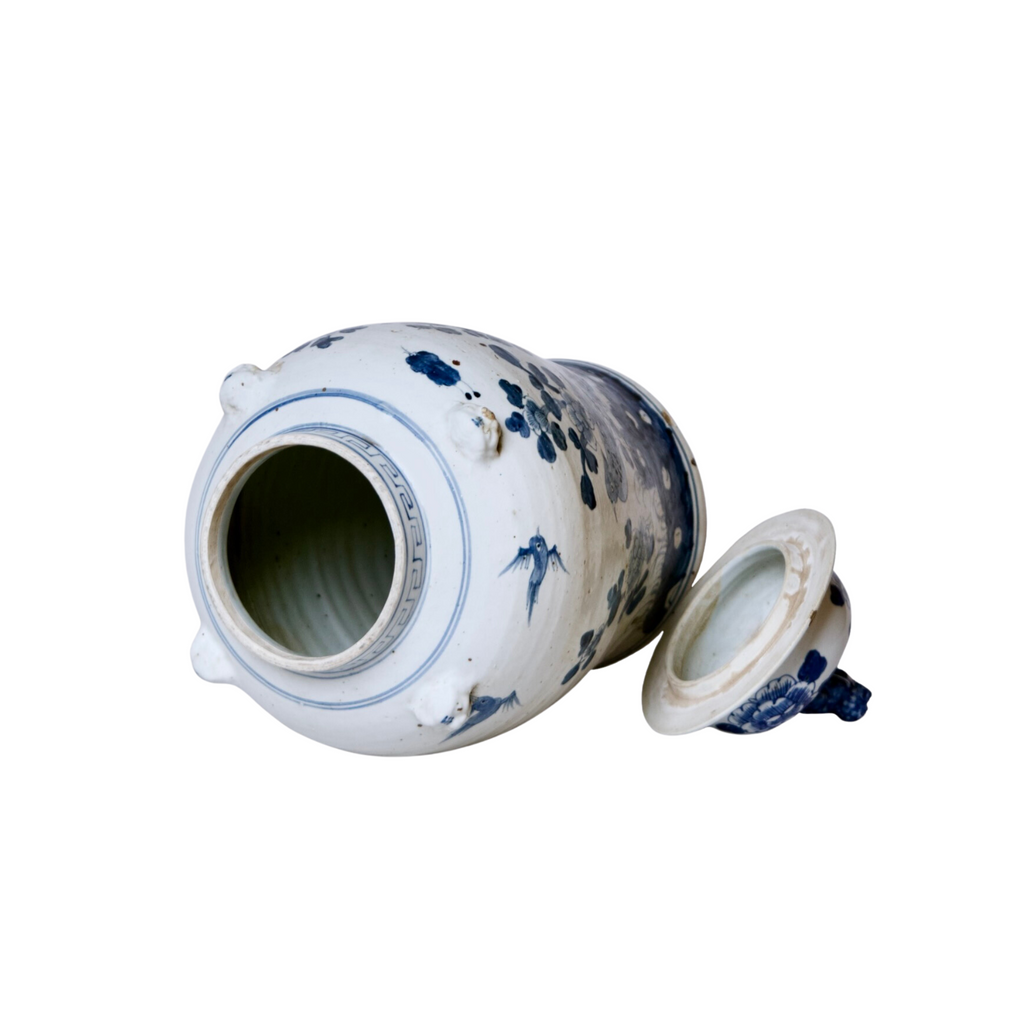 Bird and Flower Blue and White Porcelain Temple Jar