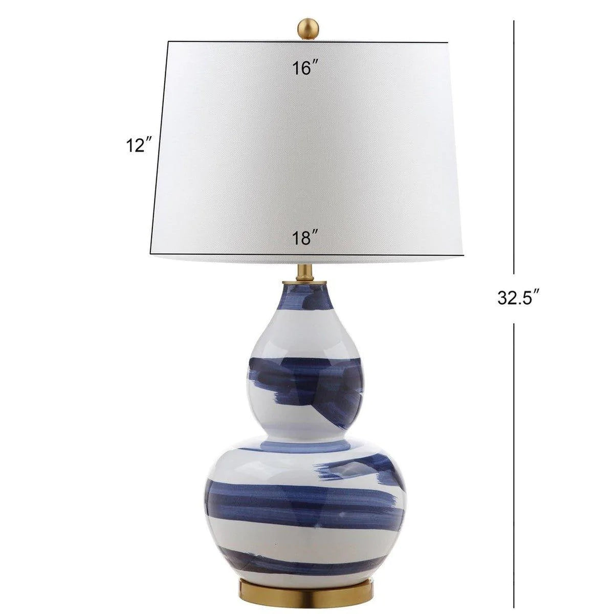 Inspired by contemporary artisans, this striking table lamp is a work of art. Finely crafted, its smooth, curved body features a bold blue and white pattern that blends into any living room. Used as a focal point or in pairs, its shade is complimentary.