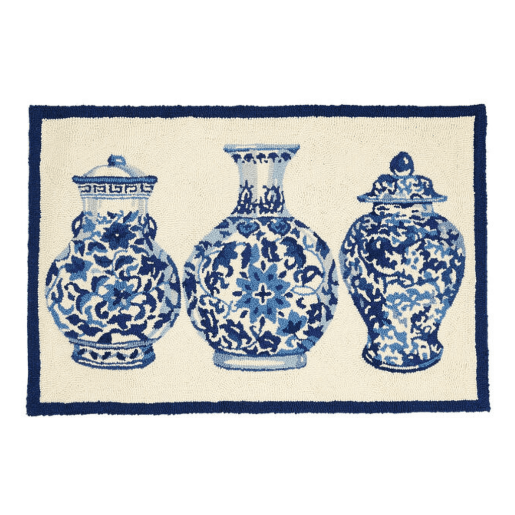 Blue & White Chinoiserie Vases Latch Hook Rug