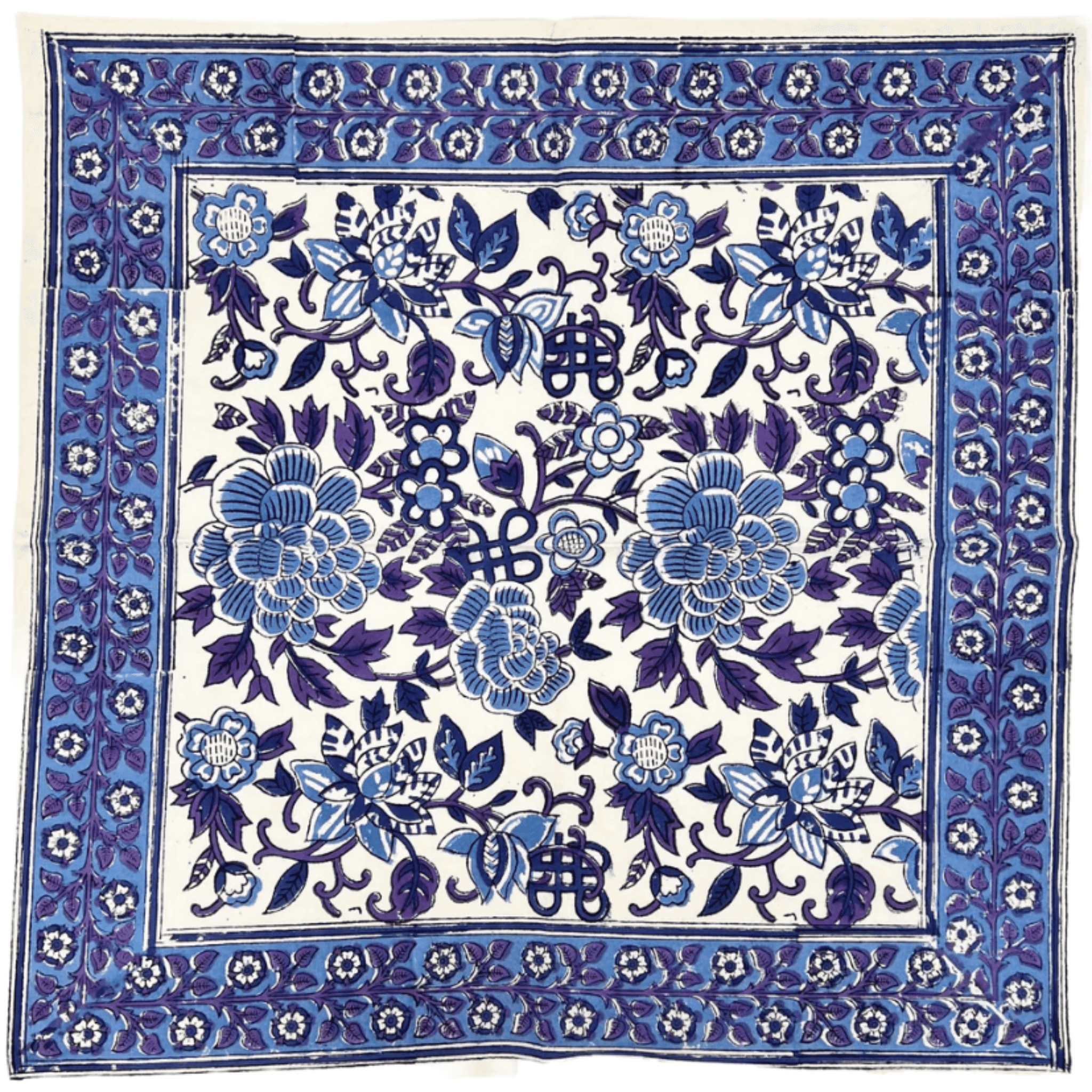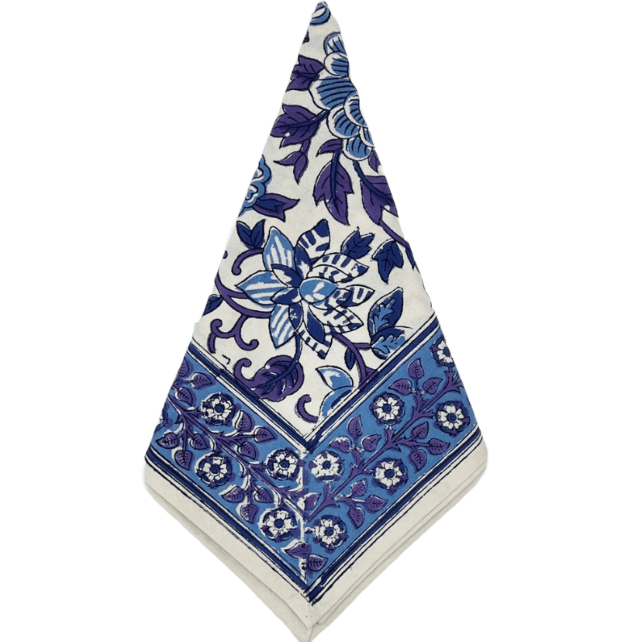 Blue & White Hand Block Printed Floral Dinner Napkin