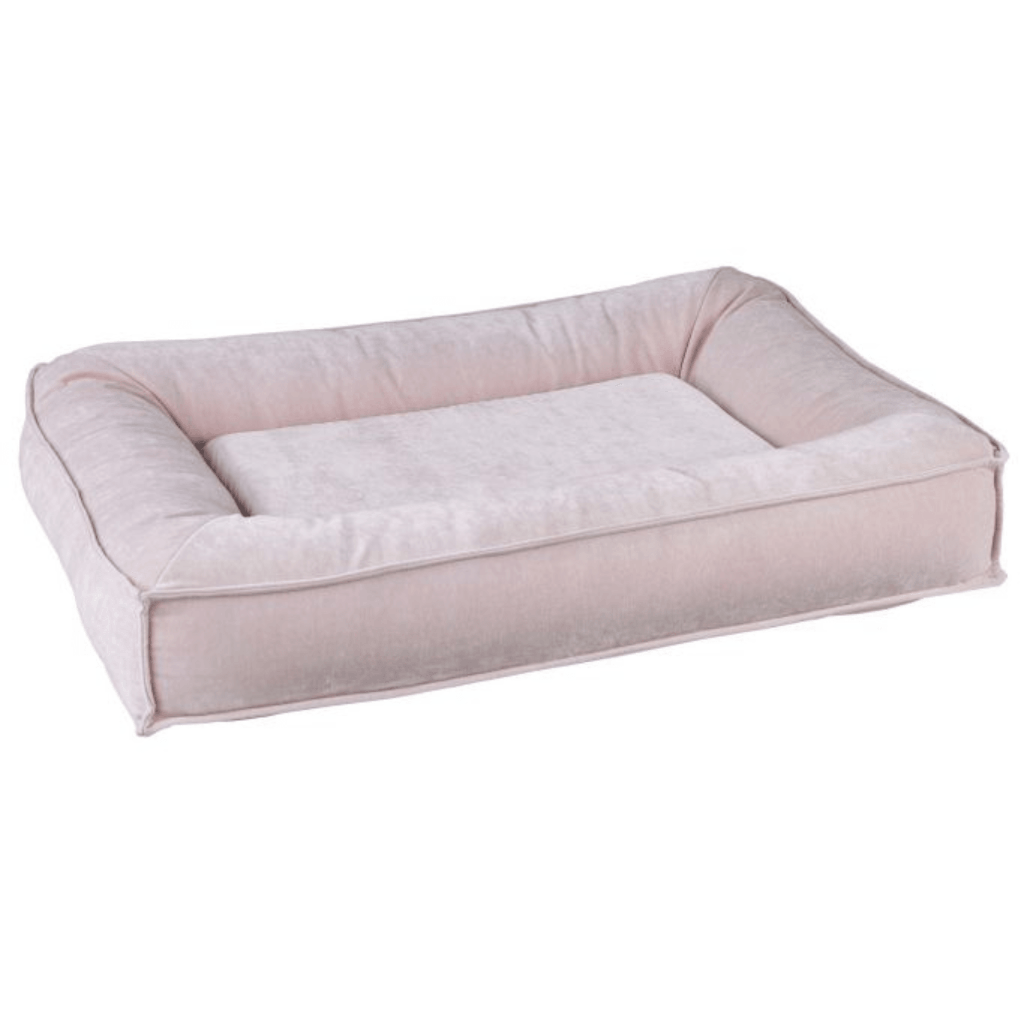 Contoured, overstuffed bolsters surround a cool gel memory foam centre. This creates a clean, minimalist design without sacrificing comfort. These two elements flow together to create a contemporary look with a distinctive, hollowed nesting area that dogs love. Click images for greater detail.