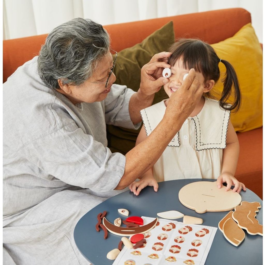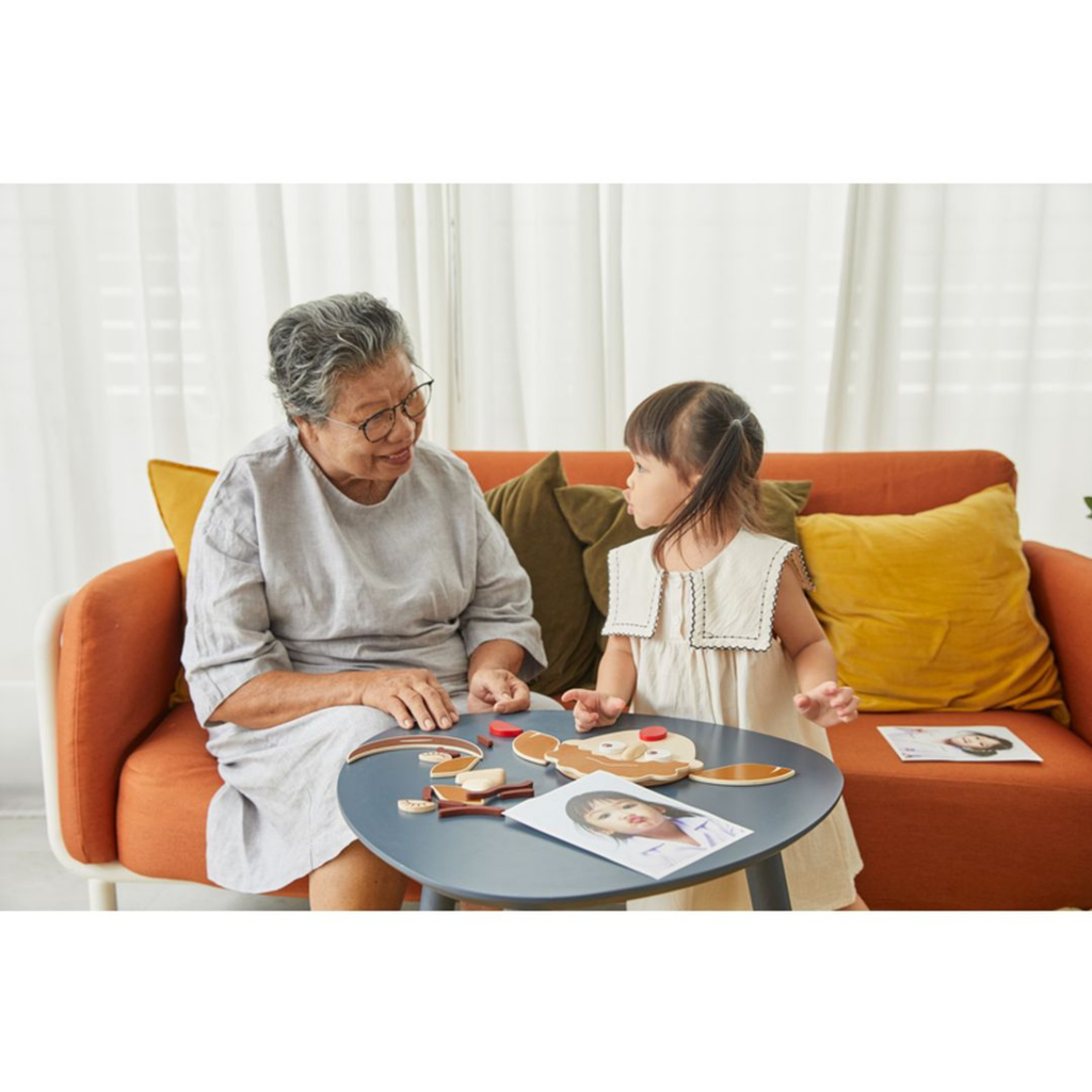 Recollect a familiar face or express your emotions with PlanToys Build A Face! Revisit memories and feelings of joy when the face is complete. This set contains a variety of facial features that can assemble a range of faces and emotions to either best suit your mood, or trigger memories and creative thinking. This is a soothing activity that can be played solo or with a group to spark conversation and bring a smile to your face! Build A Face includes 1 two-sided face, 21 facial components, and a cloth bag for storage.