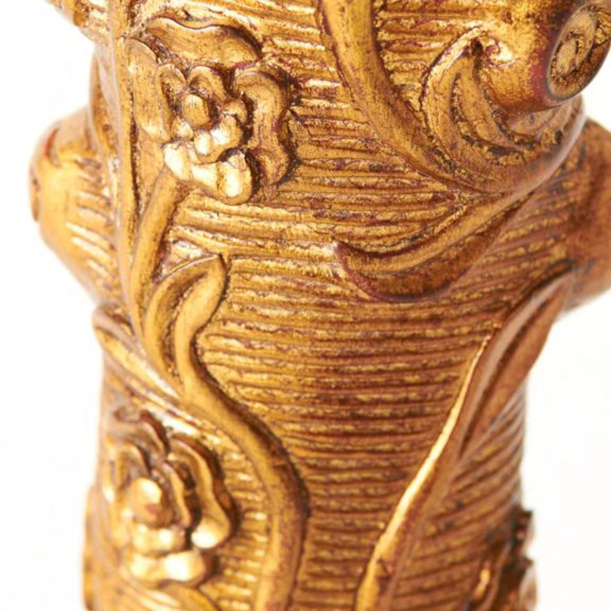 • Material: Hand-carved hardwood base with hand-applied gilt finish.