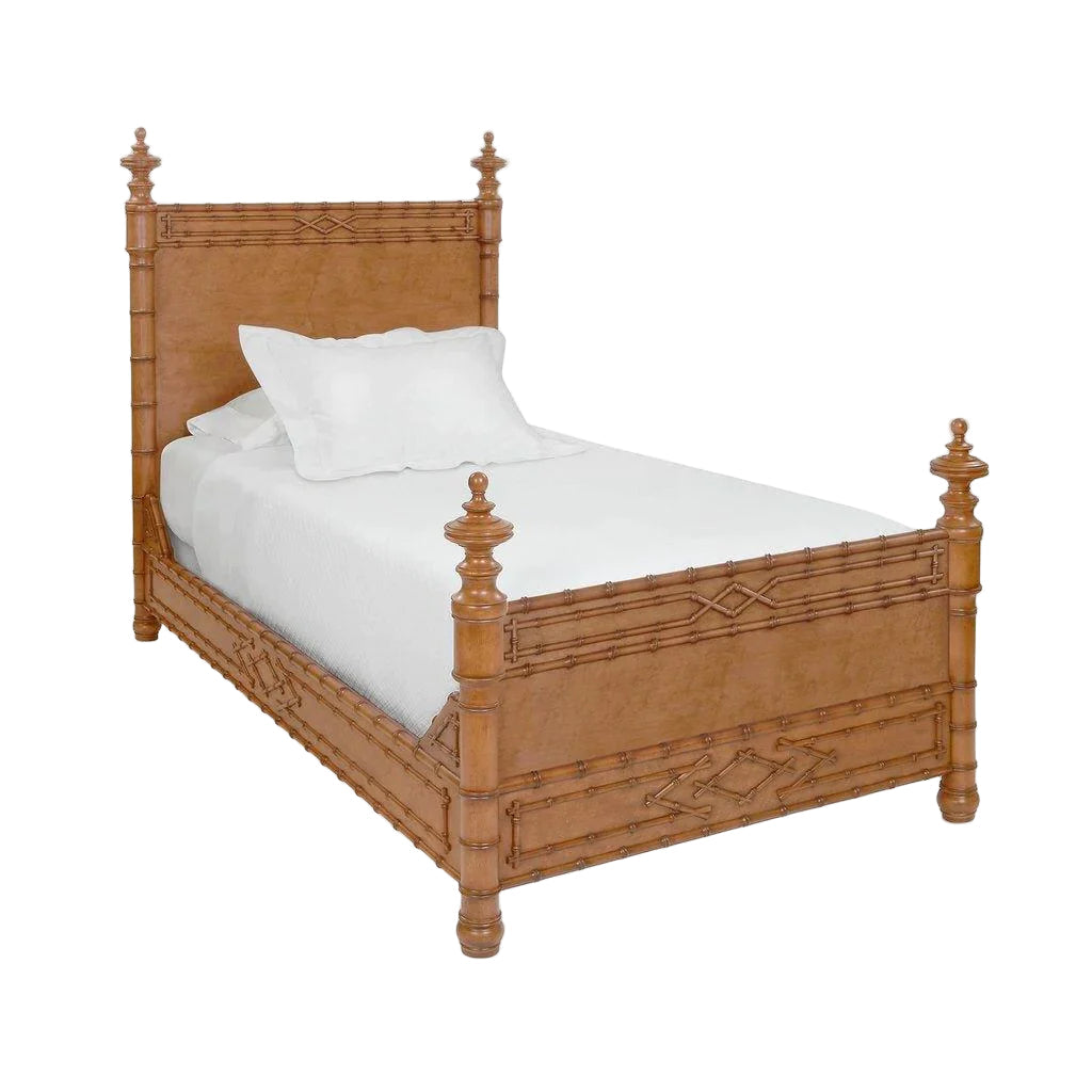 Faux bamboo has been a way to bring warmth and whimsy into the home since it gained popularity in the mid-1800s - the perfect counterpoint to heavy Victorian furniture. The Bunny Williams Home Bamboo Bed, made of poplar and bird’s eye maple veneer with a walnut finish, carries on the tradition, feeling both relaxed and sophisticated. Easy assembly. A low-profile boxspring is recommended.
