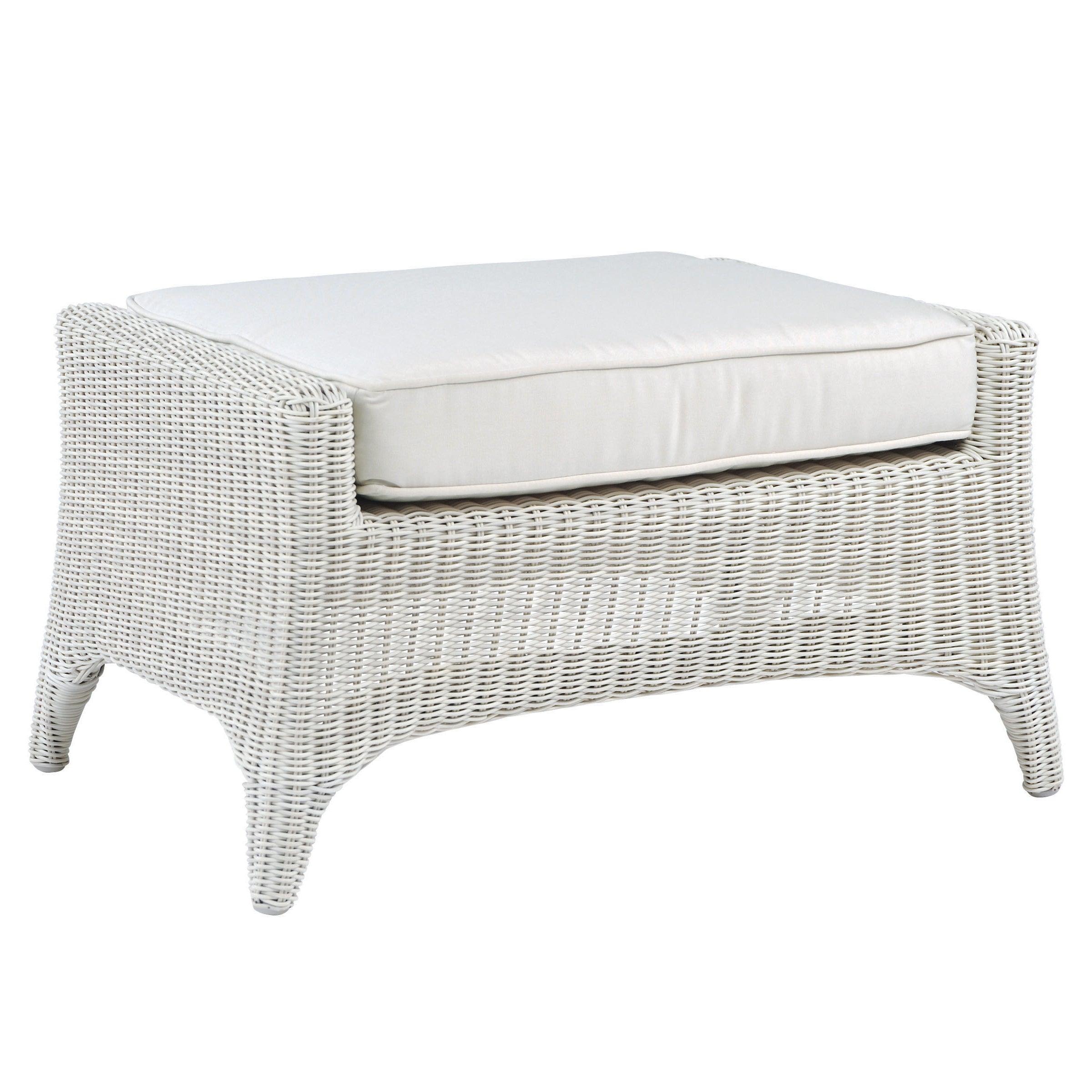 With its elegant sweeping lines and fully woven frame, our Cape Cod ottoman is an updated, more sophisticated version of classic wicker porch furniture.  The ottoman is constructed from all-weather wicker and a rustproof aluminum frame, allowing it to be used outdoors, completely exposed to the elements. Ships fully assembled.