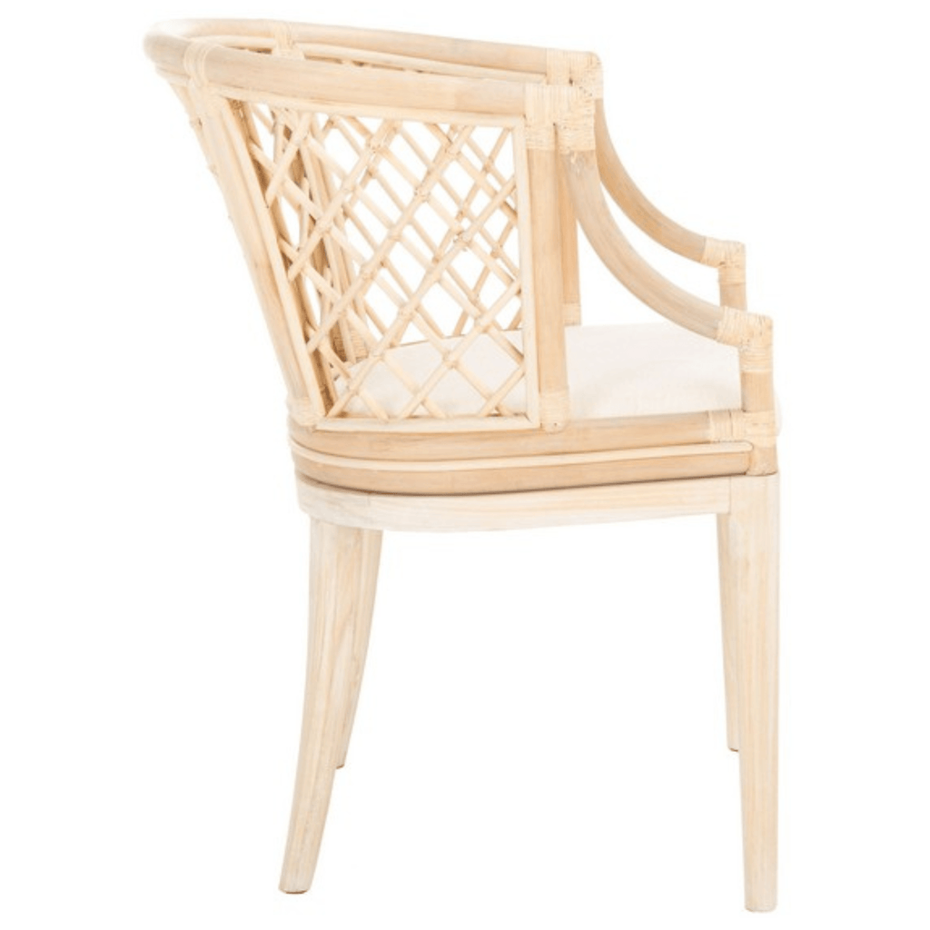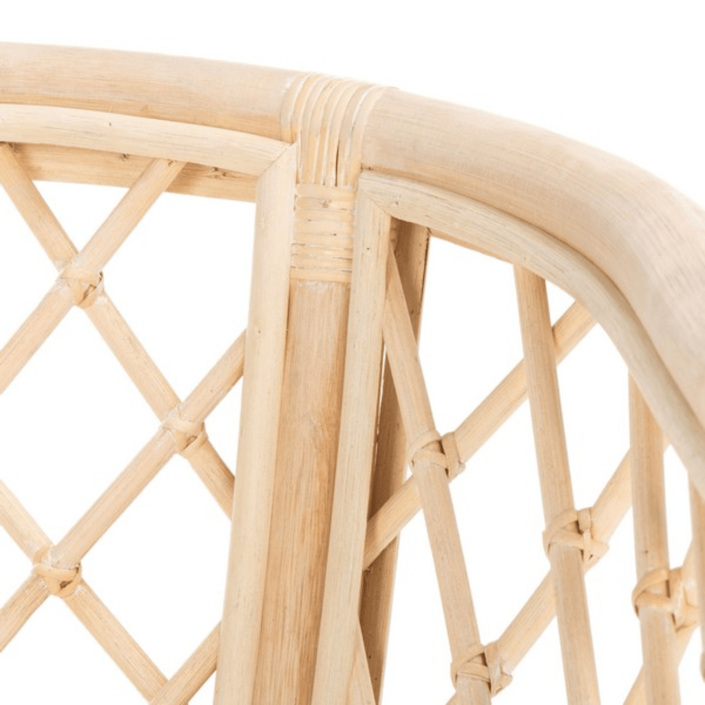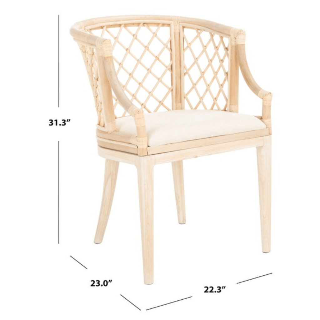 This Carlotta Armchair takes its inspirations from Monaco’s lush outdoor bistros, beautifully embodying a masterful mélange of coastal chic styles. Exquisite natural wash rattan is accented by rawhide lacing and dramatically contrasting black legs, finished with a soft cotton cushion fit for royalty. This chair measures: 22.3" X 23" X 31.3". Click images for greater detail.