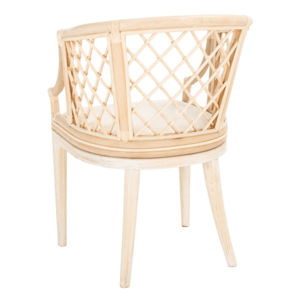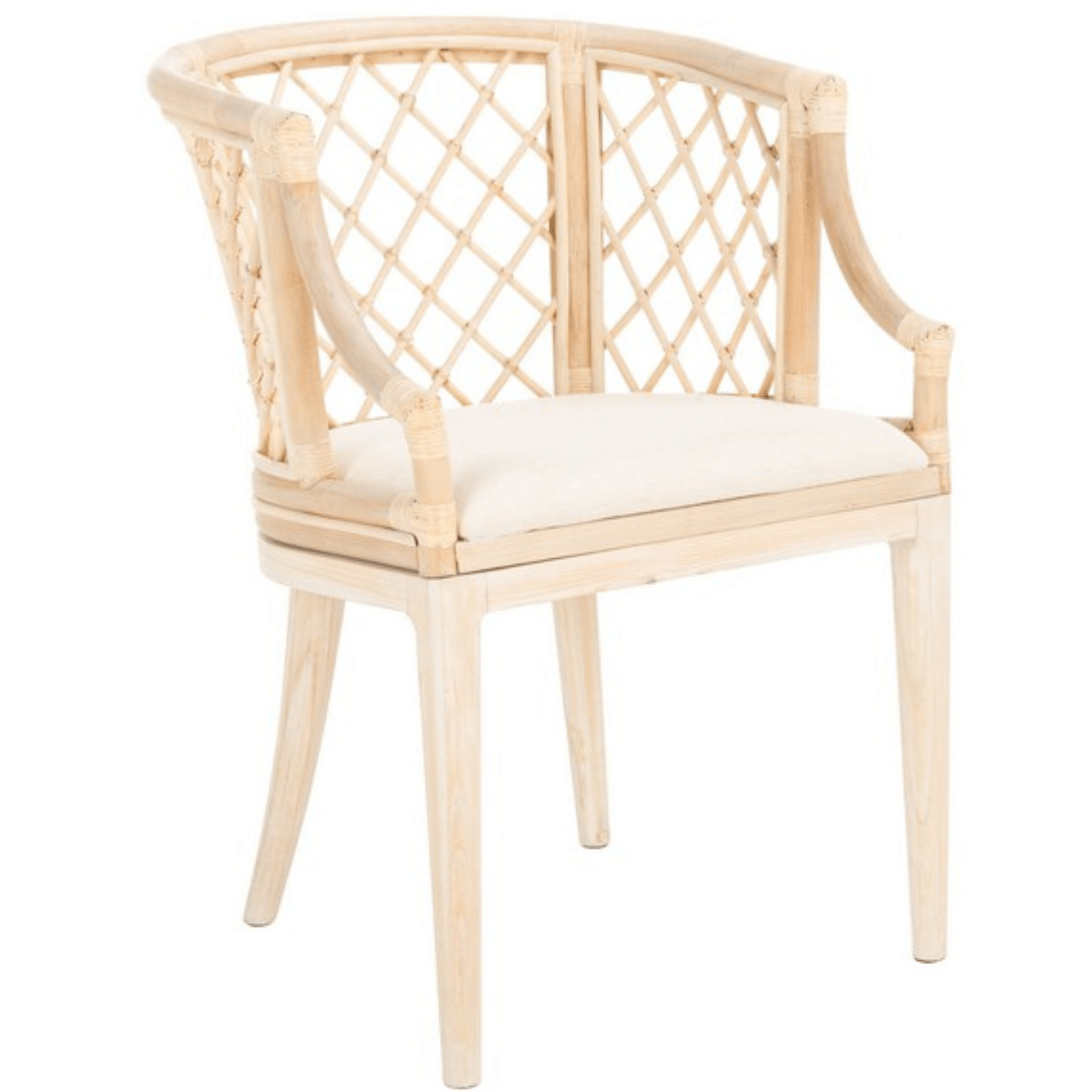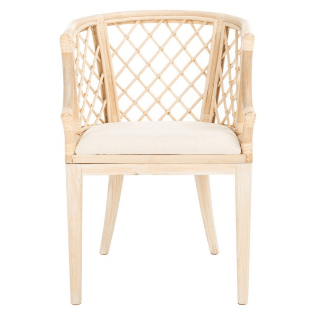 This Carlotta Armchair takes its inspirations from Monaco’s lush outdoor bistros, beautifully embodying a masterful mélange of coastal chic styles. Exquisite natural wash rattan is accented by rawhide lacing and dramatically contrasting black legs, finished with a soft cotton cushion fit for royalty. This chair measures: 22.3" X 23" X 31.3". Click images for greater detail.