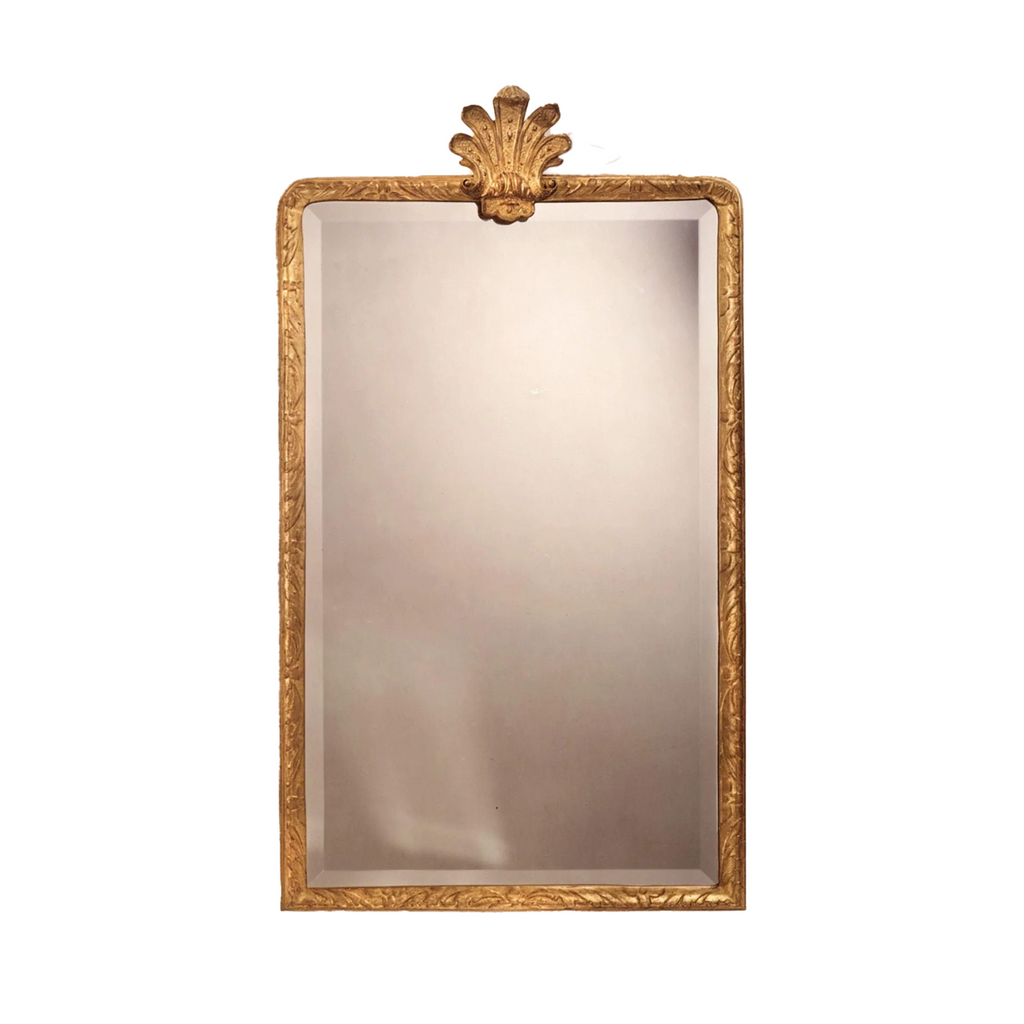 Very characteristic of late Baroque, English styling from around 1720-1740, Queen Anne with Plume's gessoed reports decoration serves as a testament to the carver's skill. The mirror features an antique gold leaf finish and comes with a plain mirror.