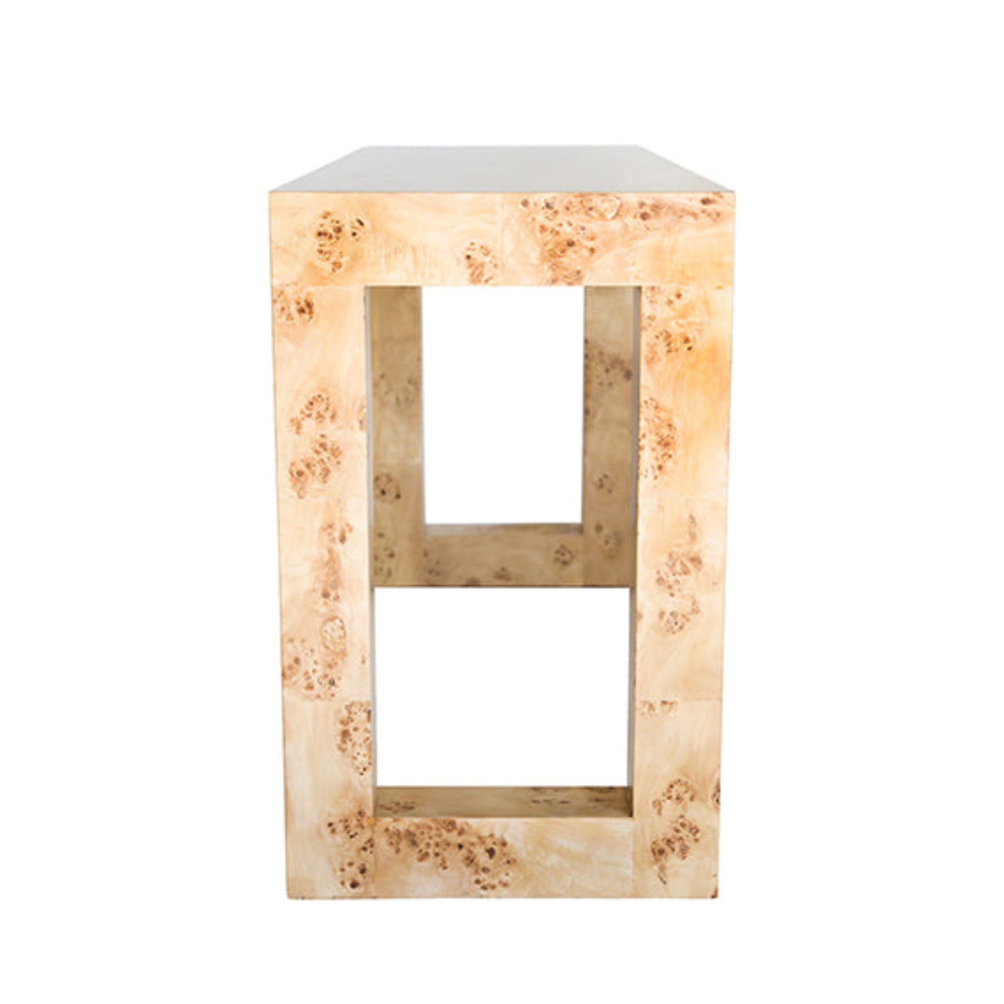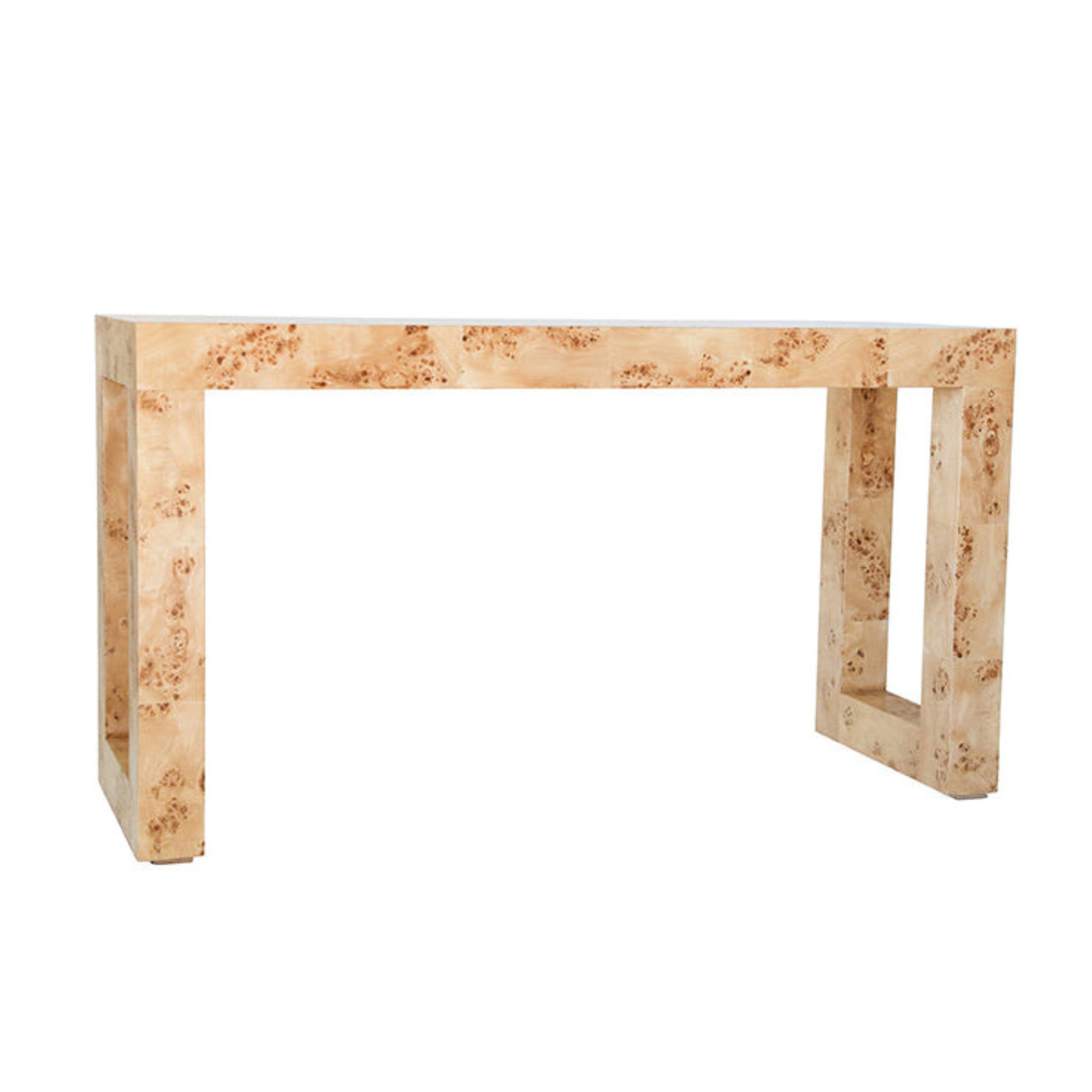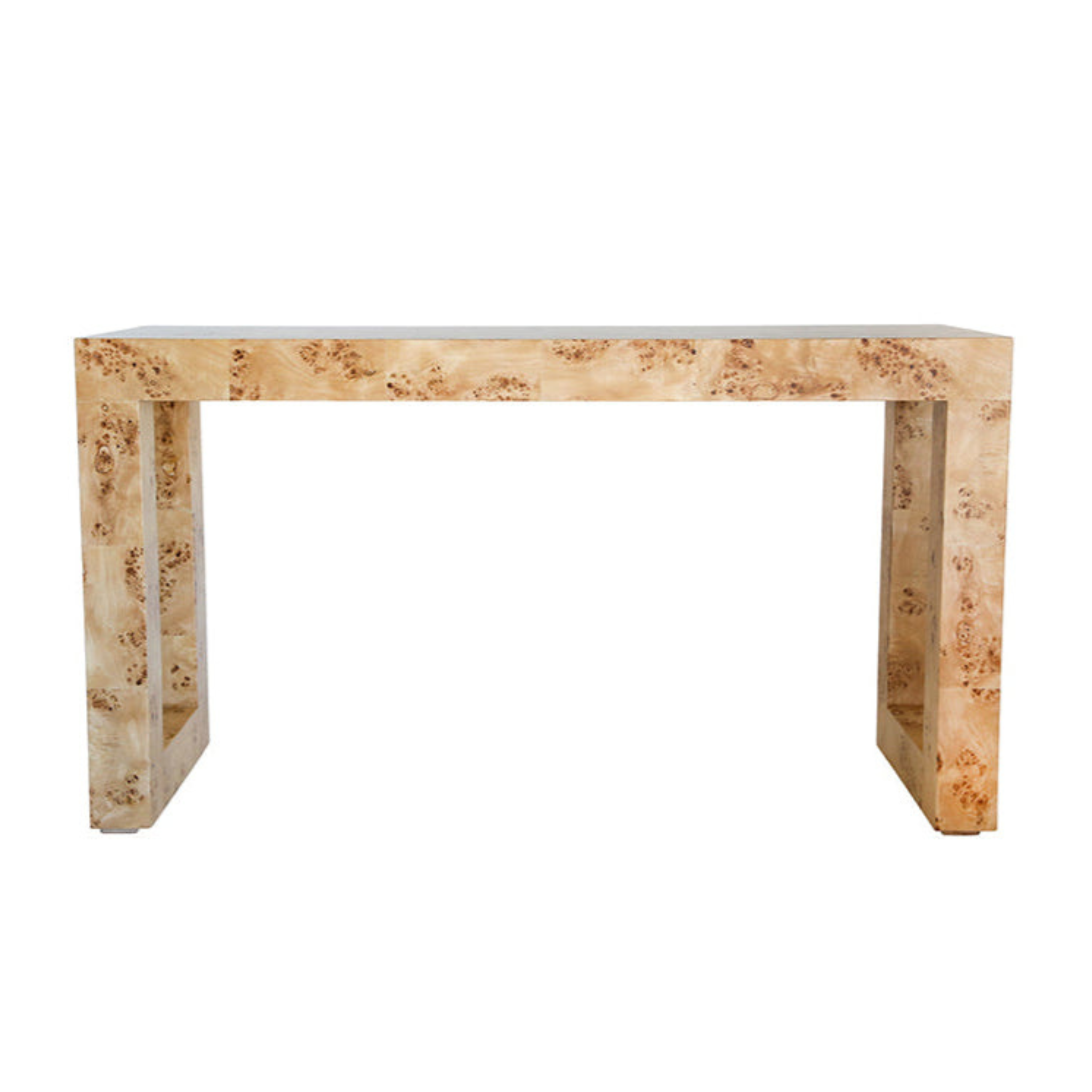 A signature piece from the Chloe Collection, the Chloe Burl Console blends clean, architectural lines with the warmth and character of natural mappa burl. Its Parsons-style silhouette creates a striking yet versatile foundation, while the organic patterning of the burl veneer brings softness and depth.